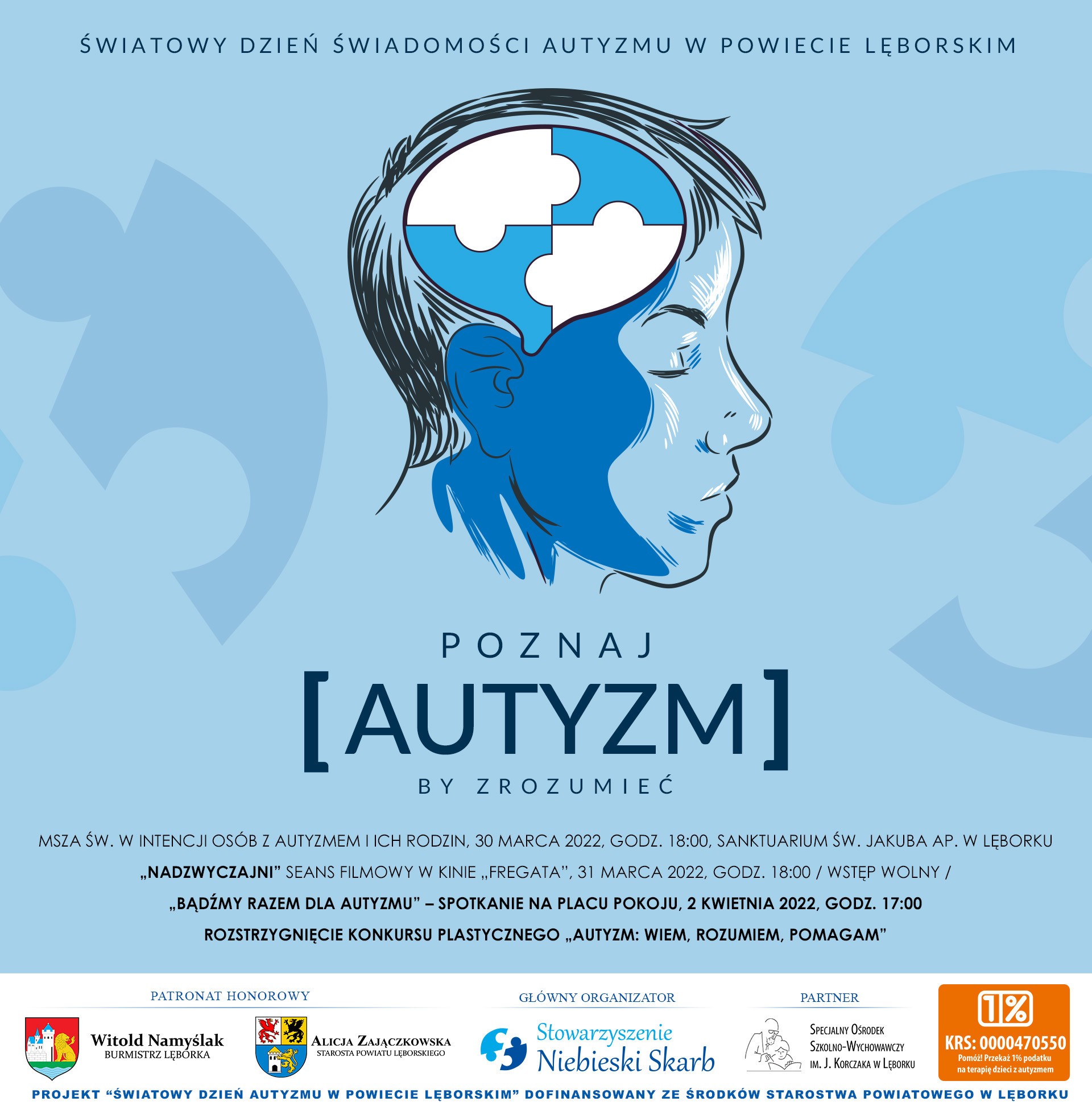 Stowarzyszenie Pomocy Osobom ze Spektrum Autyzmu "Niebieski Skarb" w Lęborku zaprasza do udziału w wydarzeniach Światowego Dnia Autyzmu w Powicie Lęborskim.