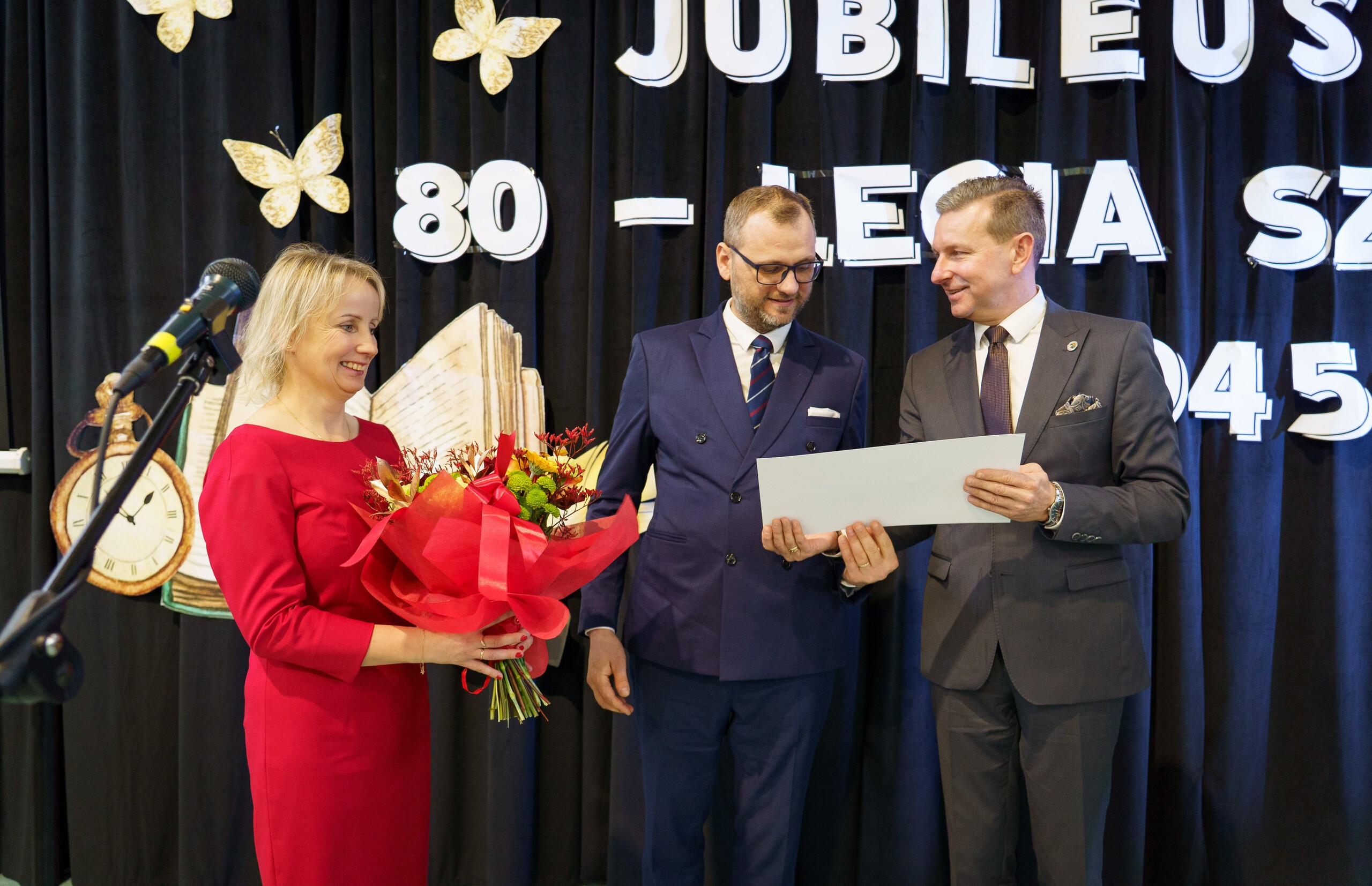 Szkoła Podstawowa w Redkowicach złożyła także podziękowania Fundacji Lokalnej oraz Radzie Rodziców za wsparcie organizacyjne uroczystości, a także wszystkim nauczycielom, pracownikom szkoły, uczniom i osobom zaangażowanym w przygotowanie jubileuszu. Szczególne słowa wdzięczności skierowano do prowadzących uroczystość – Agaty Makowskiej i **Dariusza Waszczuka.