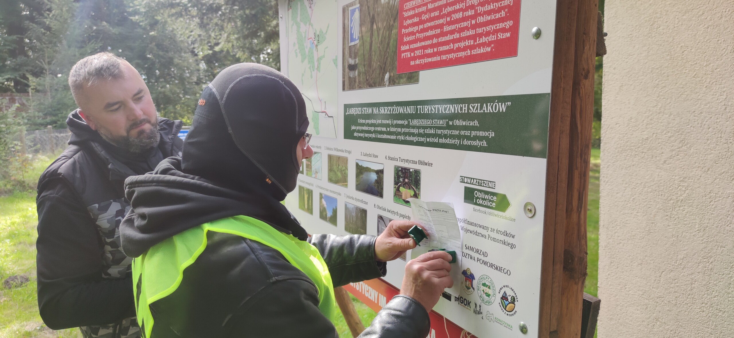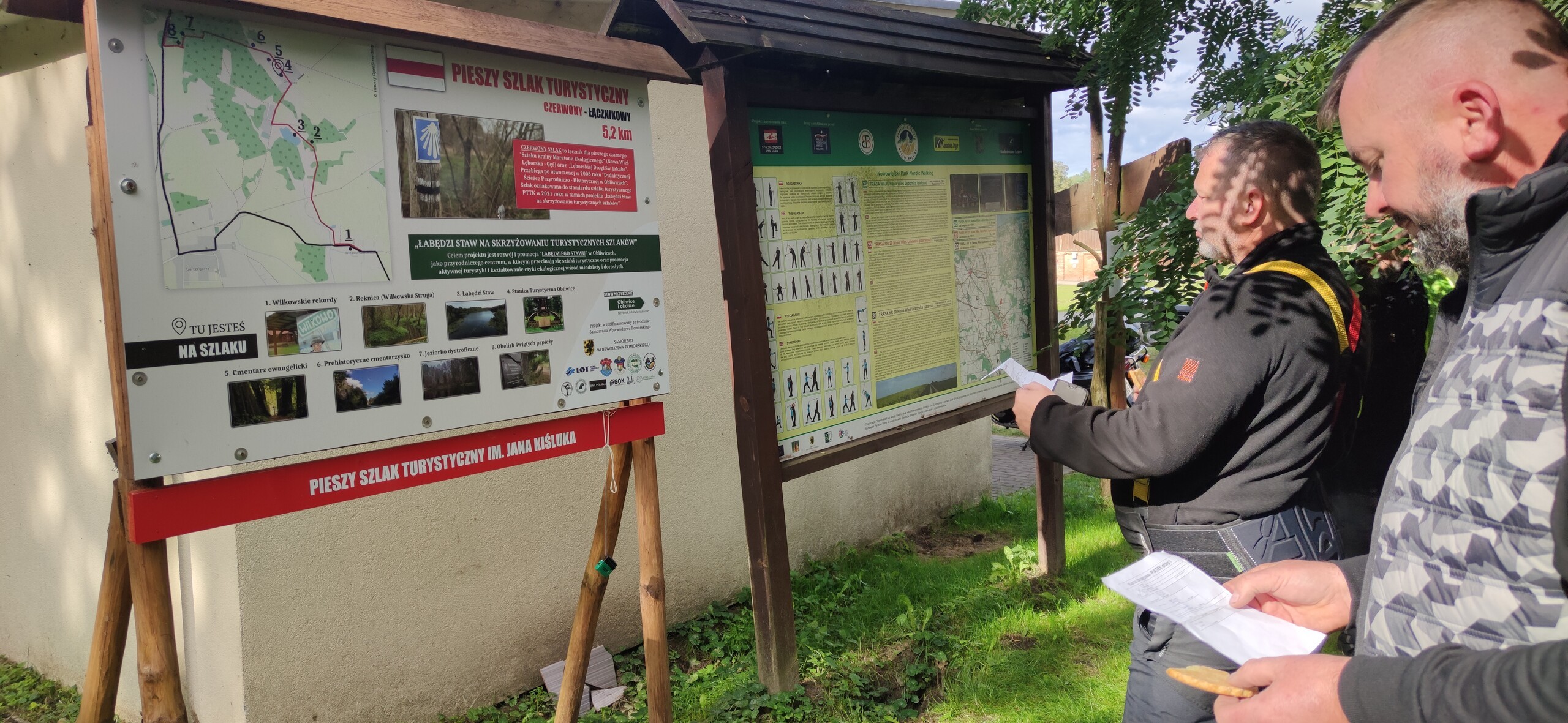 Czyjej pamięci jest czerwony pieszy szlak turystyczny, na którym znajdują się atrakcje Obliwic? Odpowiedź znajdowała się na tablicy informującej o szlaku im. Jana Kiśluka - zmarłego w tym roku znanego lęborskiego przewodnika i animatora kultury.