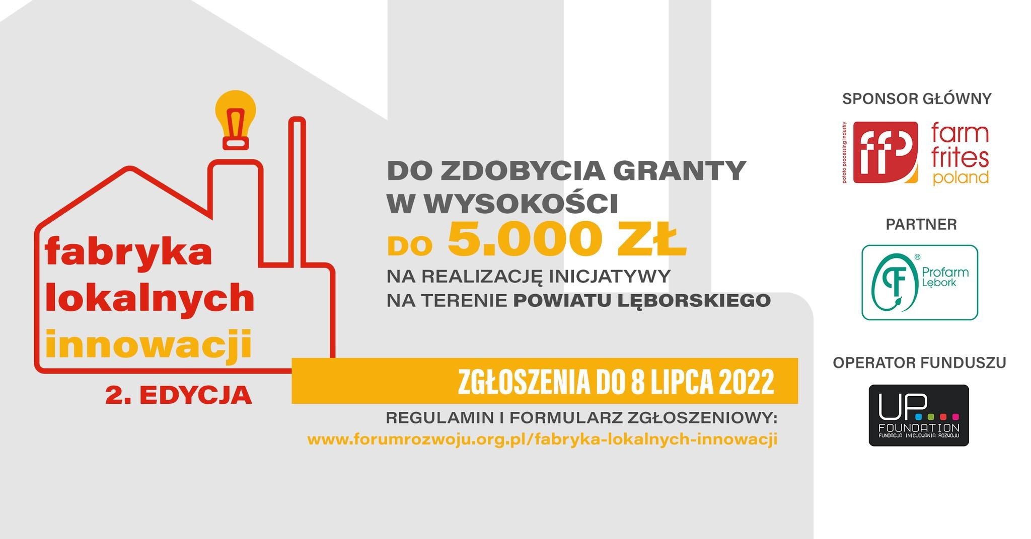 Startuje druga edycja Konkursu Grantowego — Fabryka Lokalnych Innowacji, którego Sponsorem Głównym jest firma Farm Frites Poland S.A., Partnerem — Profarm Sp. z o.o. a Operatorem UP Foundation Fundacja Inicjowania Rozwoju.
