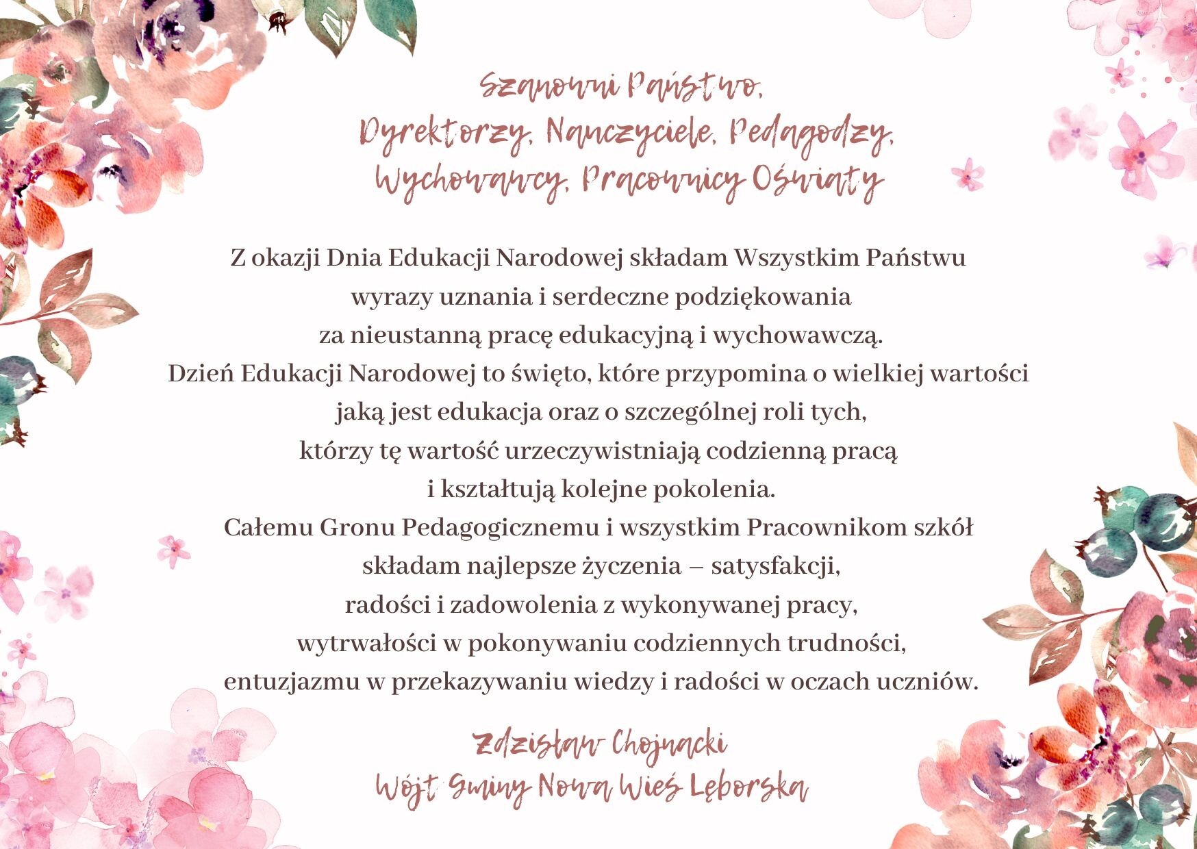 Z okazji Dnia Edukacji Narodowej składam Wszystkim Państwu
