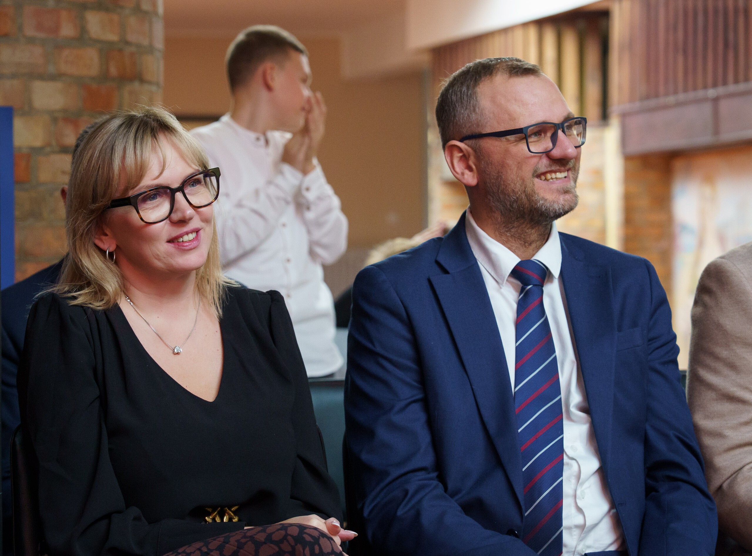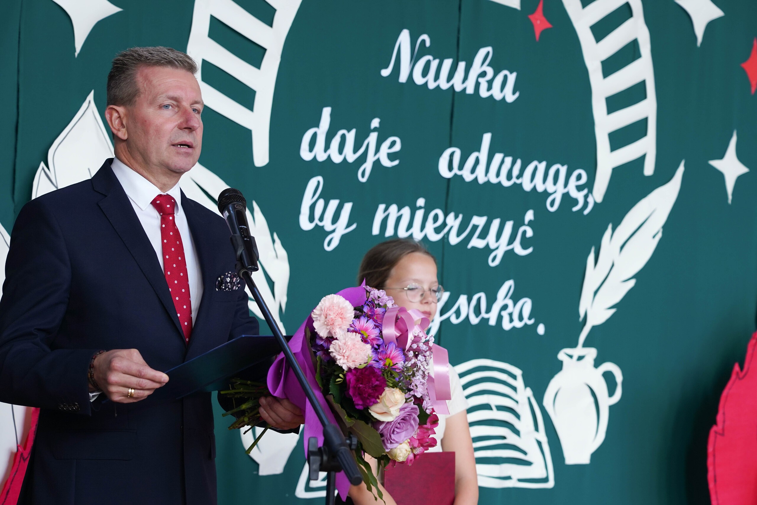 W uroczystościach uczestniczyli także przedstawiciele władz samorządowych: Wójt Gminy Nowa Wieś Lęborska Szymon Medalion, jego zastępca Marian Kurzydło oraz sekretarz gminy Edyta Krefta. Wszystkim nauczycielom i pracownikom oświaty złożyli serdeczne życzenia oraz podziękowali za codzienny wkład w wychowanie i kształcenie dzieci i młodzieży. Podkreślali, że edukacja jest inwestycją w przyszłość gminy, buduje silną, świadomą społeczność oraz wzmacnia więzi międzyludzkie.
