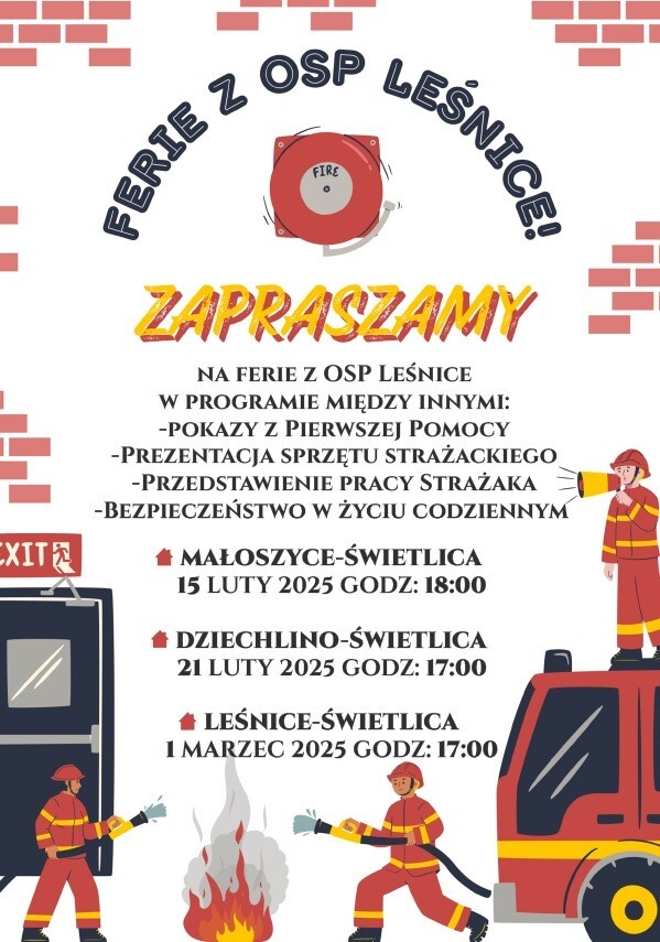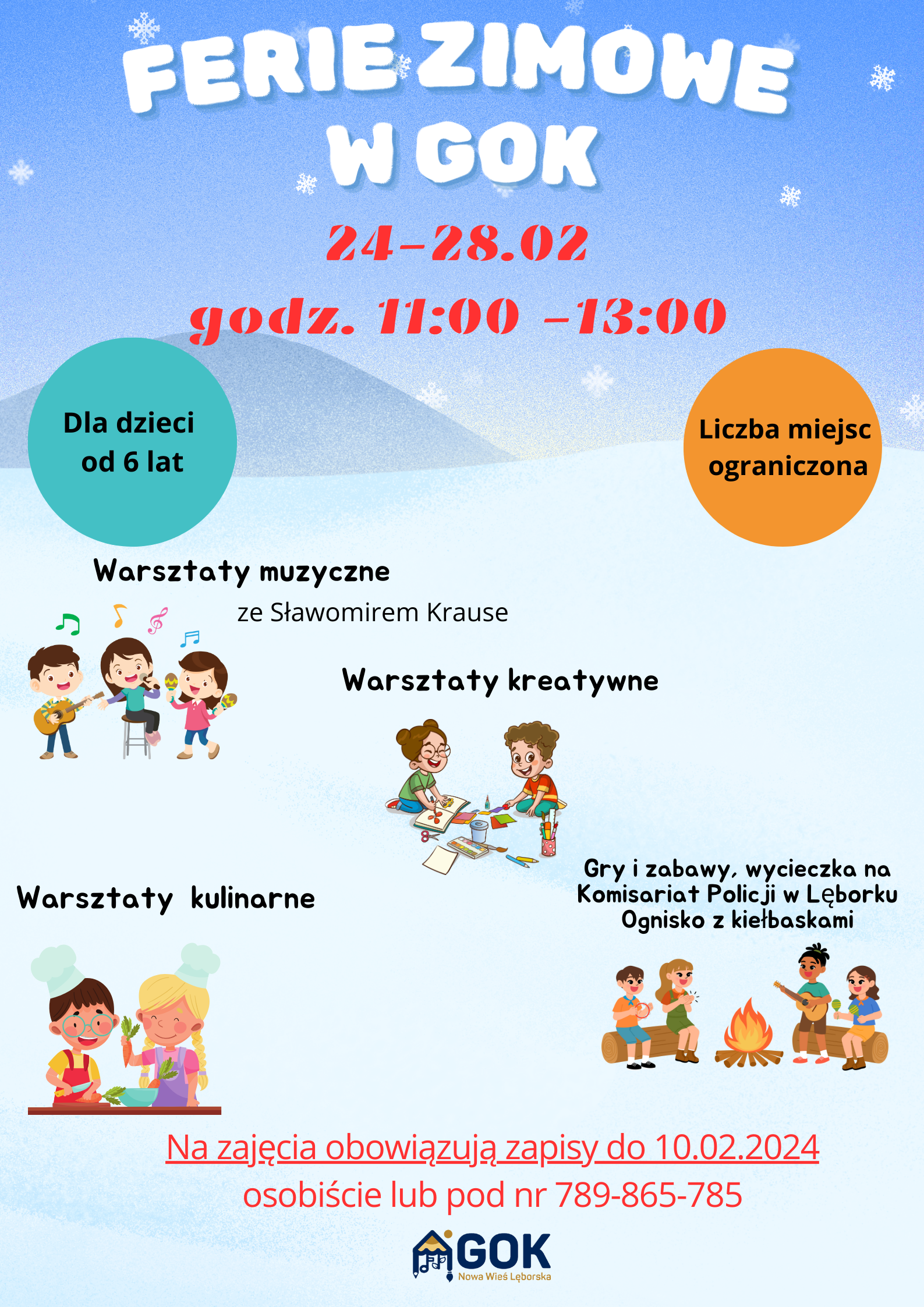 Ferie zimowe to czas radości, odpoczynku i świetnej zabawy! W naszej gminie zapowiadają się wyjątkowo atrakcyjnie – dla dzieci i młodzieży przygotowano mnóstwo interesujących zajęć, warsztatów, pokazów i wydarzeń kulturalnych. Swoje propozycje przygotowały szkoły podstawowe, sołectwa, OSP oraz instytucje takie jak Gminny Ośrodek Kultury w Nowej Wsi Lęborskiej i Biblioteka Publiczna Gminy Nowa Wieś Lęborska.