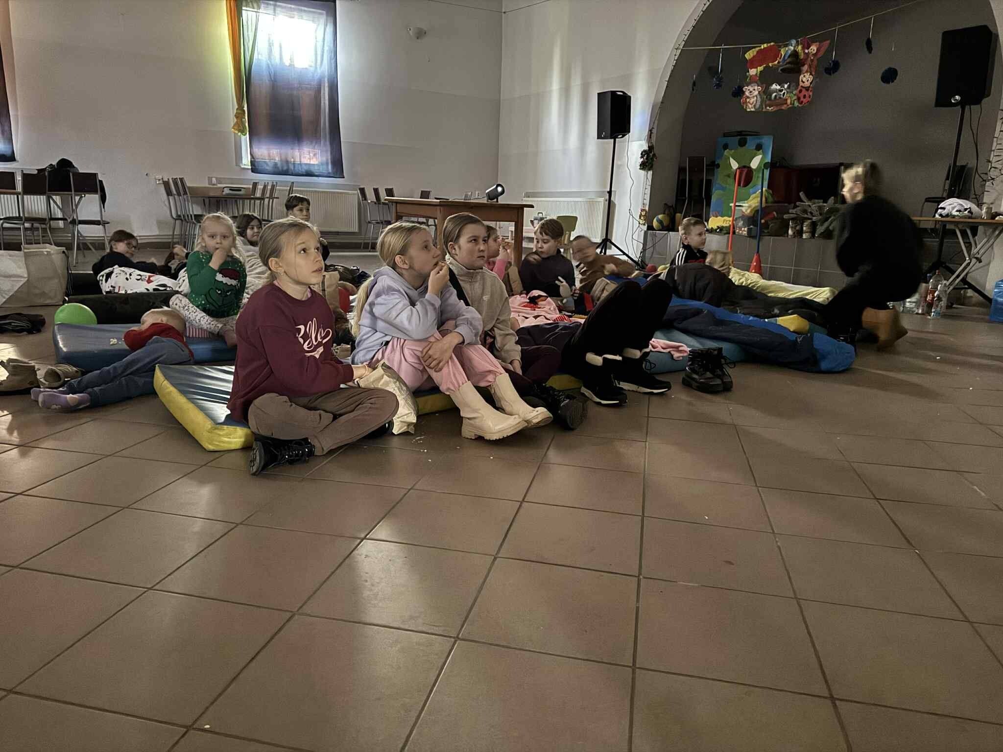 Obok zajęć aktywnych nie brakuje również spokojniejszych form spędzania czasu. W Sołectwie Garczegorze jednym z elementów ferii było wspólne oglądanie bajek, sprzyjające wyciszeniu i budowaniu relacji w grupie.