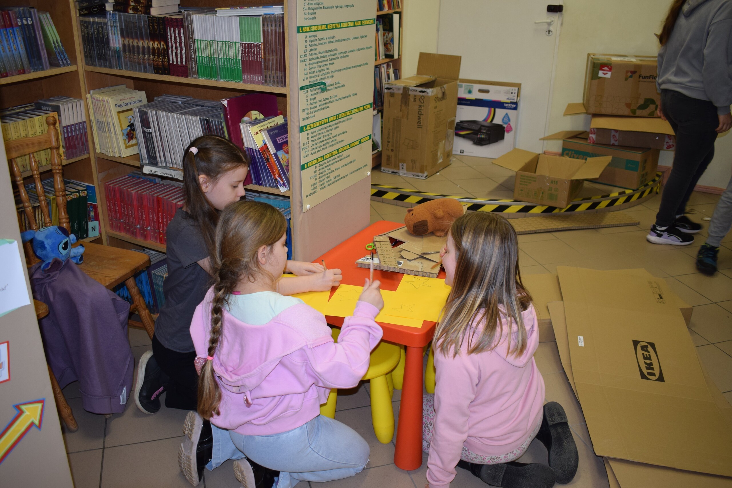 Tymczasem w Bibliotece w Łebieniu rozpoczęła się kosmiczna przygoda. Pierwszy dzień ferii upłynął na odkrywaniu tajemnic wszechświata – dzieci poznawały ciekawostki o kosmosie i planetach, a także rozpoczęły budowę własnych rakiet. Kolejne dni zapowiadają się równie ekscytująco, a biblioteka powoli zamienia się w małą stację kosmiczną.