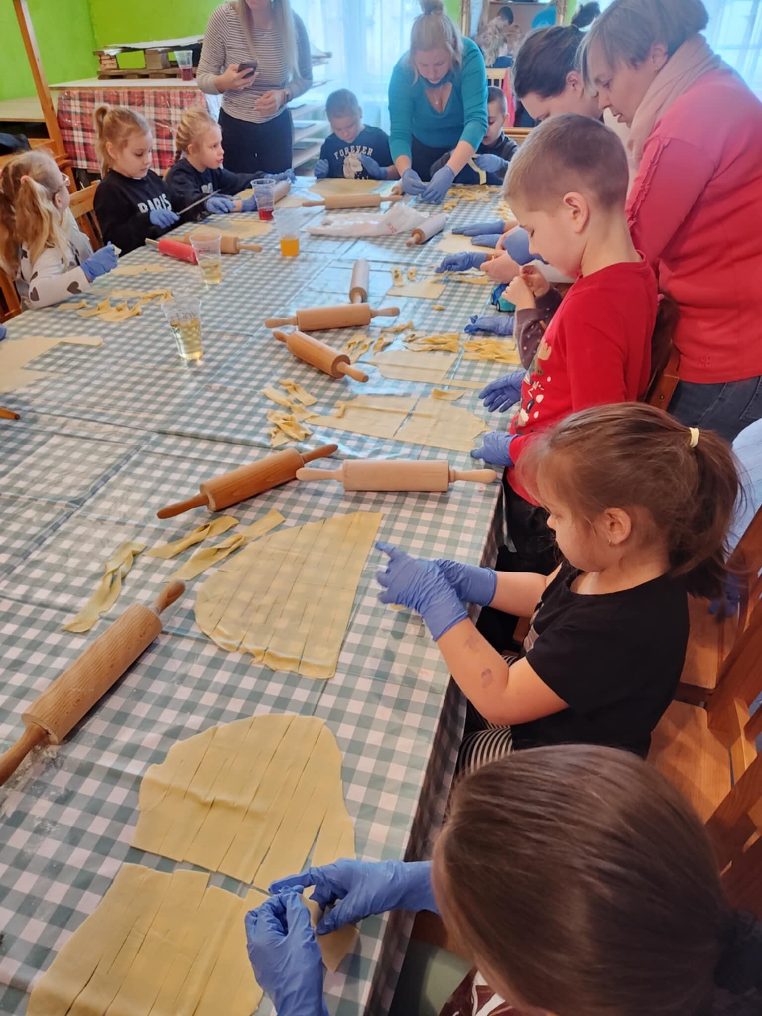 W Sołectwie Leśnice i Sołectwie Dziechlino uczestnicy warsztatów kulinarnych mieli także okazję samodzielnie przygotowywać pizzę, ucząc się pracy zespołowej w kuchni i poznając podstawy gotowania.