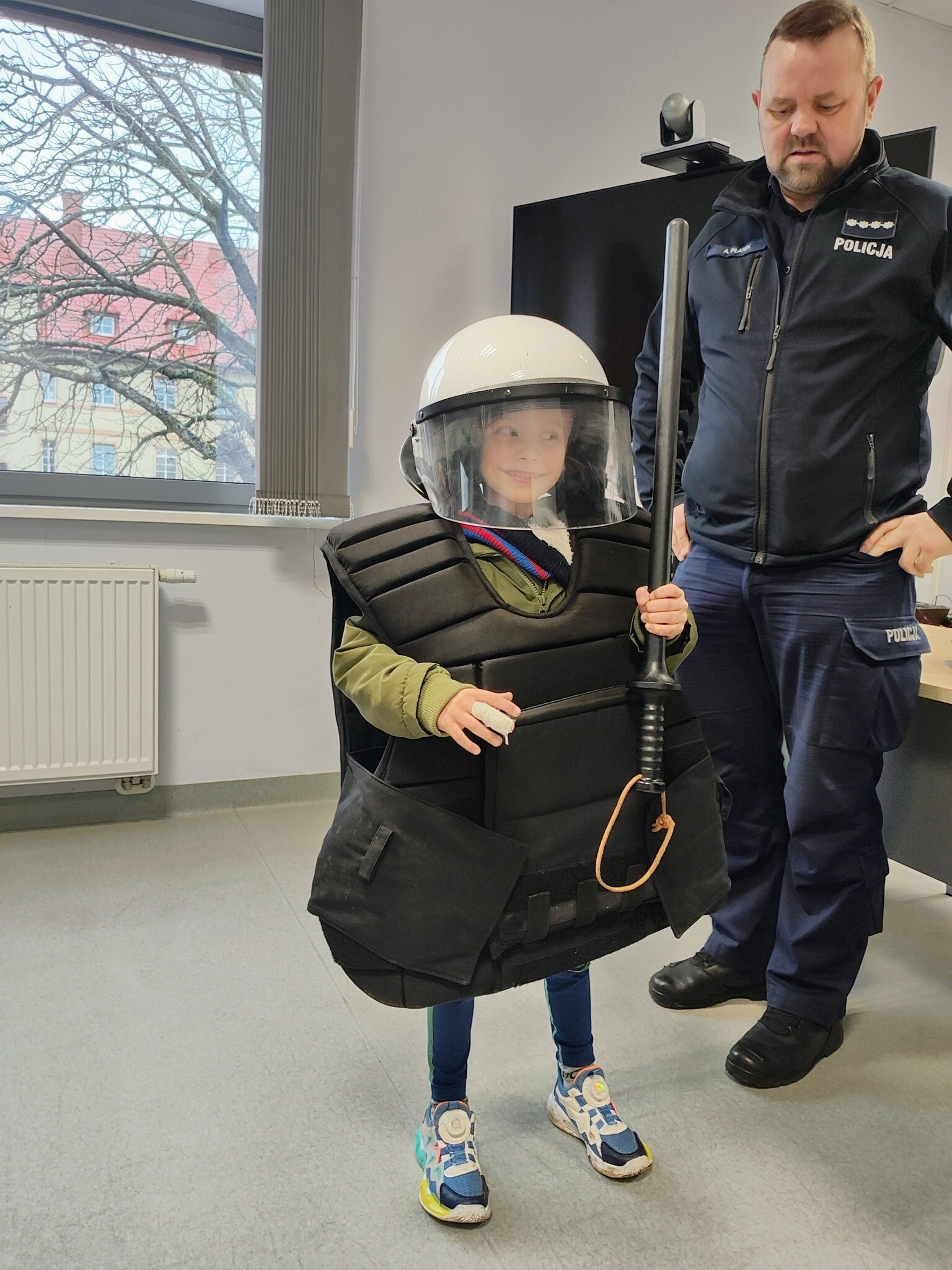 W ramach ferii zorganizowano także wizytę na Komendzie Powiatowej Policji w Lęborku. Dzieci mogły zobaczyć radiowóz, sprzęt ochronny oraz motocykl policyjny. Zwiedziły także celę więzienną i dowiedziały się, jak wygląda codzienna praca dyżurnego policjanta. Było to cenne doświadczenie, które pozwoliło uczestnikom lepiej poznać pracę funkcjonariuszy policji.