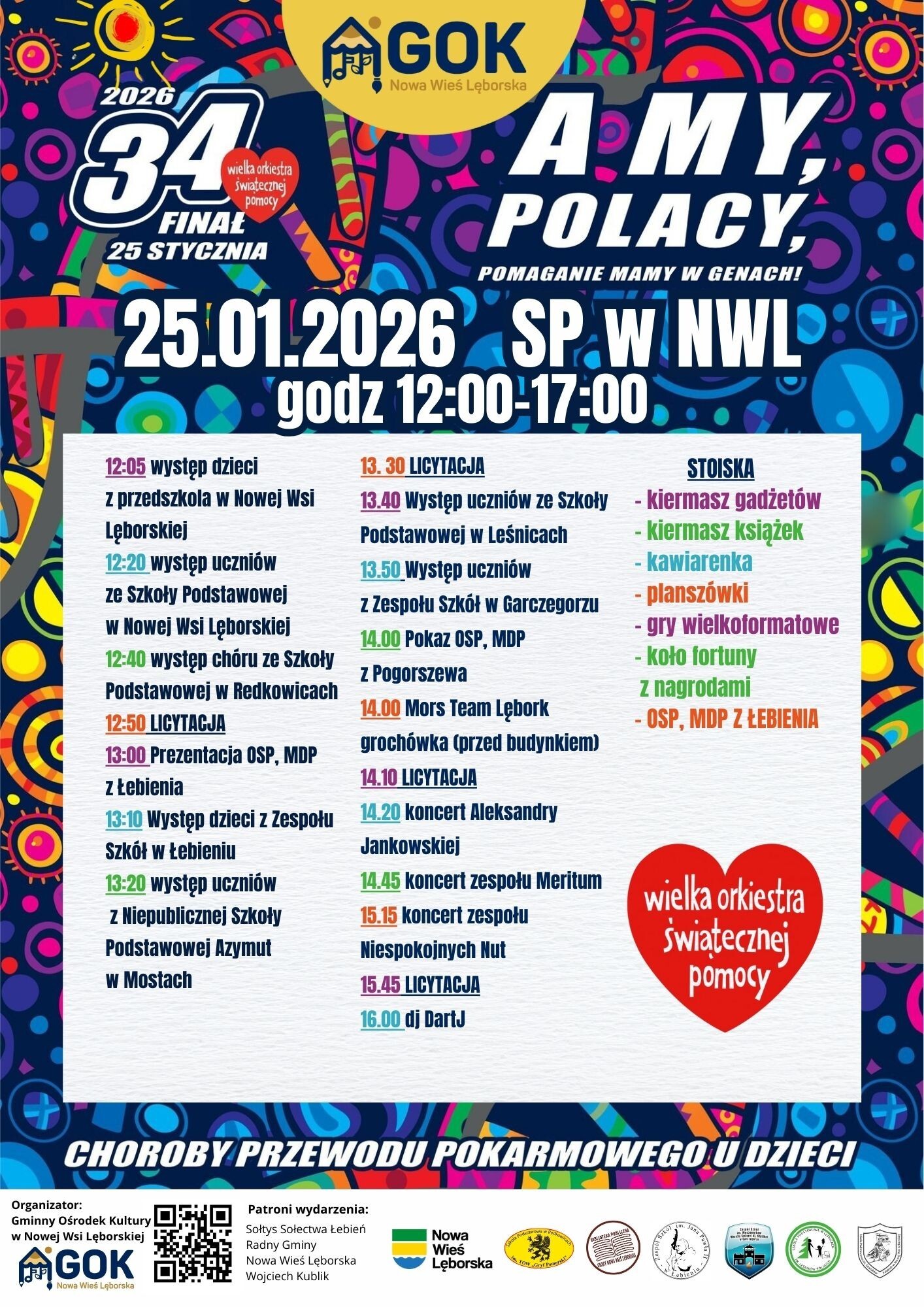 Już 25 stycznia 2026 r. zagramy wspólnie podczas 34. Finału Wielkiej Orkiestry Świątecznej Pomocy w Gminie Nowa Wieś Lęborska. Tegoroczny Finał odbywa się pod hasłem „Zdrowe brzuszki naszych dzieci”, a zebrane środki zostaną przeznaczone na diagnostykę i leczenie chorób przewodu pokarmowego u najmłodszych pacjentów.