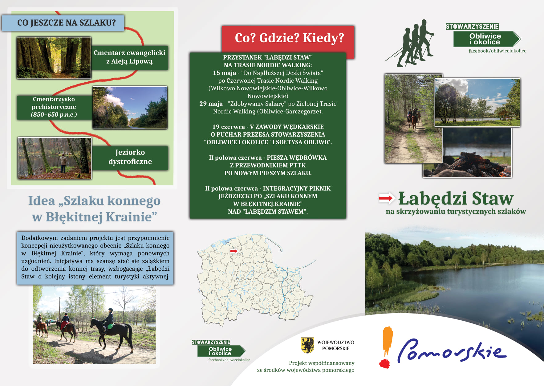 26 czerwca (sobota) Stowarzyszenie "Obliwice i okolice", LOT Ziemia Lęborska-Łeba, PTTK Lębork - Koło Przewodników oraz Koło Turystyki Kwalifikowanej Kahel Klub II zapraszają na oficjalną inaugurację nowego pieszego szlaku turystycznego w ramach projektu "Łabędzi Staw na skrzyżowaniu turystycznych szlaków".