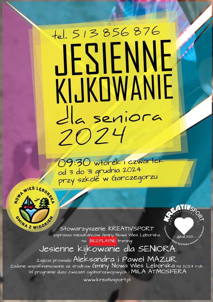 Stowarzyszenie KREATIVSPORT zaprasza na BEZPŁATNE treningi Nordic Walking we wtorki i czwartki w godzinach 9:30-10:30 przy świetlicy wiejskiej w Garczegorzu.