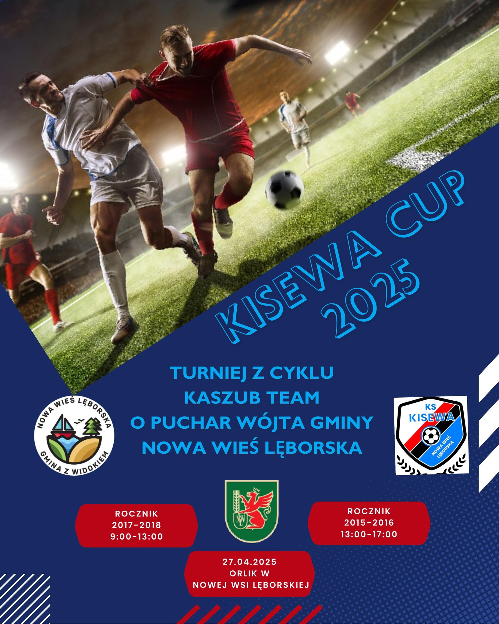 Serdecznie zapraszamy na wyjątkowe wydarzenie sportowe – KISEWA CUP 2025, które odbędzie się w niedzielę, 27 kwietnia 2025 roku na Orliku przy szkole w Nowej Wsi Lęborskiej. Turniej jest częścią cyklicznej serii KASZUB TEAM, której celem jest promocja piłki nożnej wśród najmłodszych oraz integracja społeczności lokalnych i regionalnych poprzez sport. Wydarzenie ma charakter regionalny – udział biorą drużyny z różnych miejscowości Pomorza.