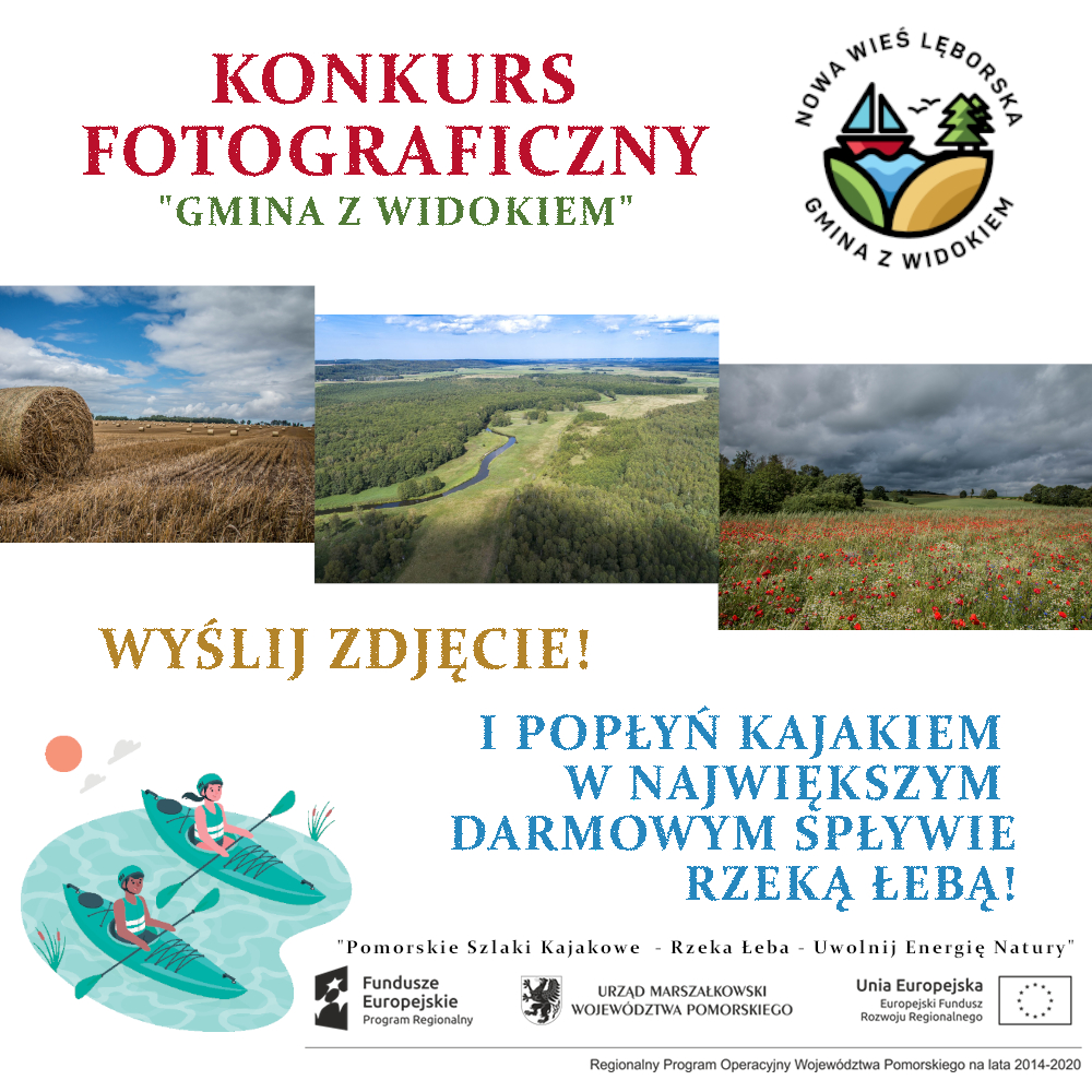W związku z organizacją spływu kajakowego w ramach promocji projektu „Pomorskie Szlaki Kajakowe - Rzeka Łeba - Uwolnij Energię Natury” ze środków Europejskiego Funduszu Rozwoju Regionalnego w ramach Regionalnego Programu Operacyjnego Województwa Pomorskiego na lata 2014-2020 i ogłoszonym w dniu 11 lipca 2022 r. konkursem fotograficznym, po przeanalizowaniu nadesłanych prac zmienia się regulamin konkursu. Ze względu na większą pulę miejsc w spływie kajakowym w stosunku do nadesłanych zdjęć postanawia się darmowym udziałem w spływie nagrodzić wszystkich uczestników konkursu. Na zasadach określonych w zmienionym regulaminie postanawia się wytypować najlepsze zdjęcie, a autora nagrodzić dodatkowo atrakcyjnym zestawem gadżetów promocyjnych Gminy Nowa Wieś Lęborska.