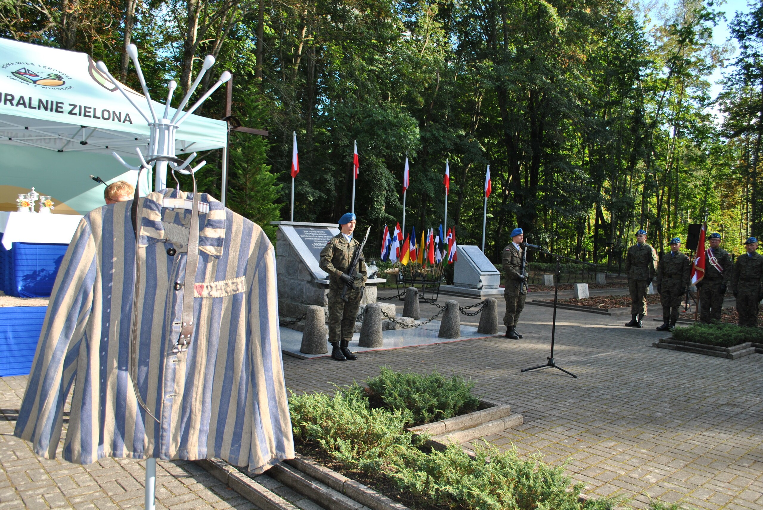 Uroczystości uświetniła obecność Kompanii Honorowej I Lęborskiego Batalionu Zmechanizowanego im. gen. Jerzego Jastrzębskiego i warta wystawiona przez żołnierzy tej jednostki. Po apelu poległych, odczytanego przez ppr. Dawida Gleszczyńskiego, i towarzyszącej apelowi salwie honorowej, uczestnicy uroczystości obejrzeli montaż słowno-muzyczny pt. "Miałam 13 lat..." w wykonaniu uczniów Zespołu Szkół im. Męczenników Marszu Śmierci KL Stutthof w Garczegorzu, przygotowanych przez nauczycielki Bożenę Lenart i Ewę Gębarowską. Wspomnienia więźniów prezentowane przez uczniów dopełnili Bogusława Tartakowska — opiekunka zbiorów oraz dr. Marcin Owsiński - Kierownik Działu Naukowego Muzeum Stutthof w Sztutowie, którzy przywieźli ze sobą wiedzę i muzealne eksponaty — więzienny pasiak, skórzany pasek z wydrapanymi przez więźniów informacjami oraz buty zrobione z gumowych opon i sznurka.