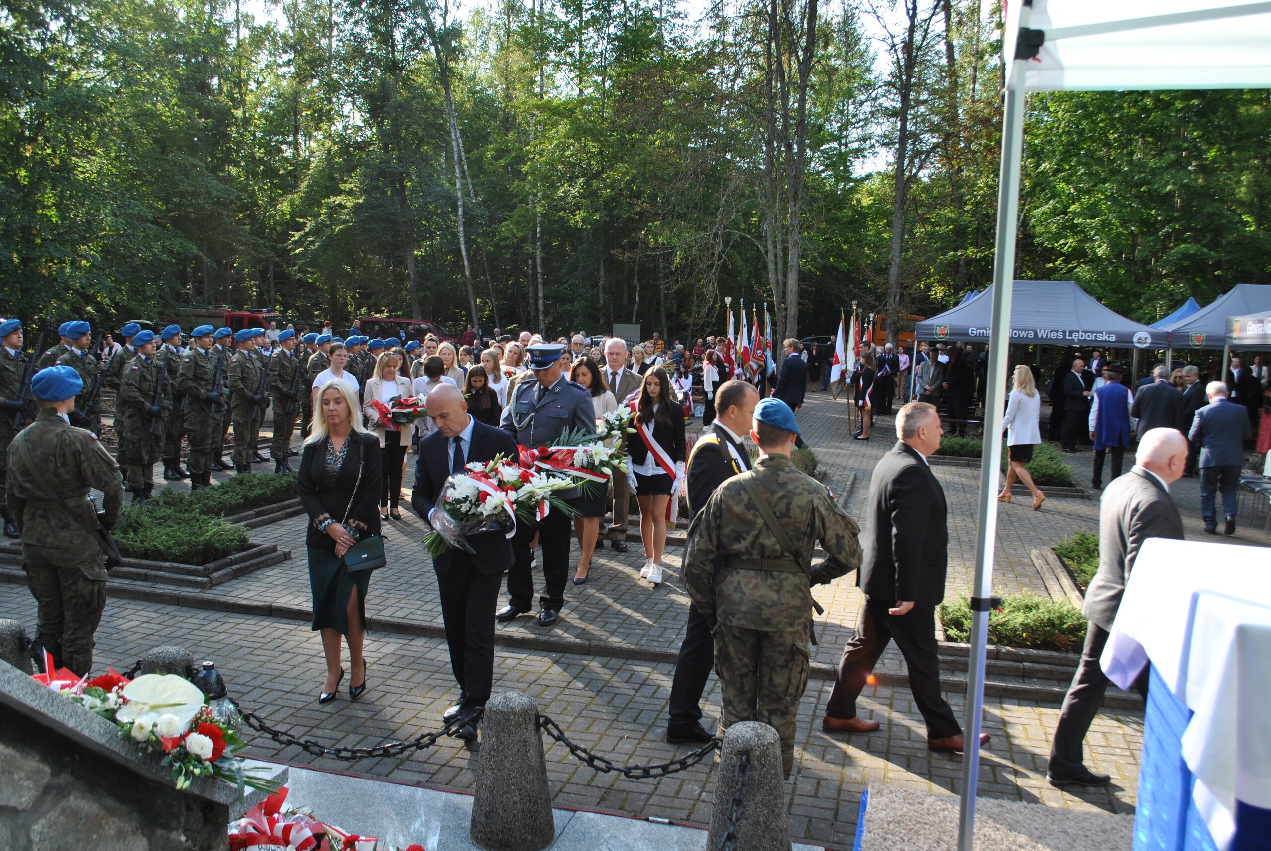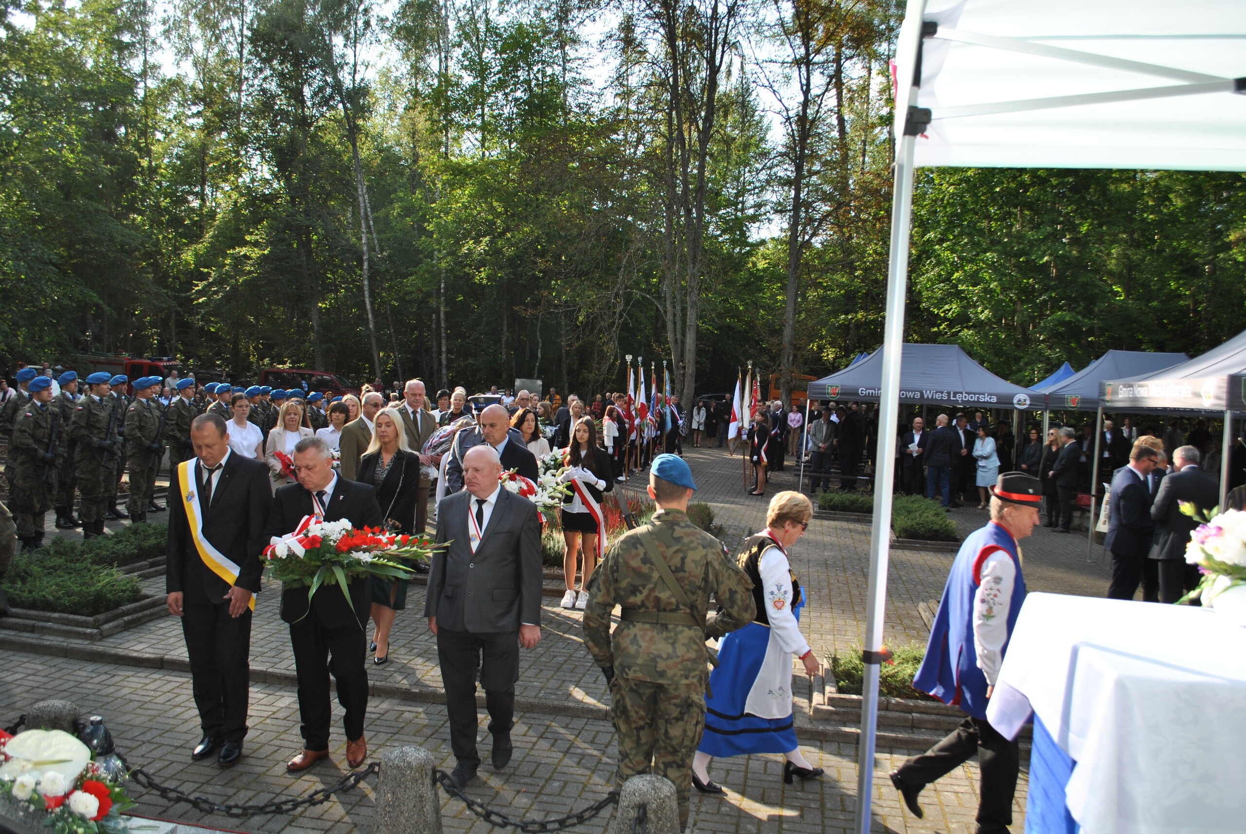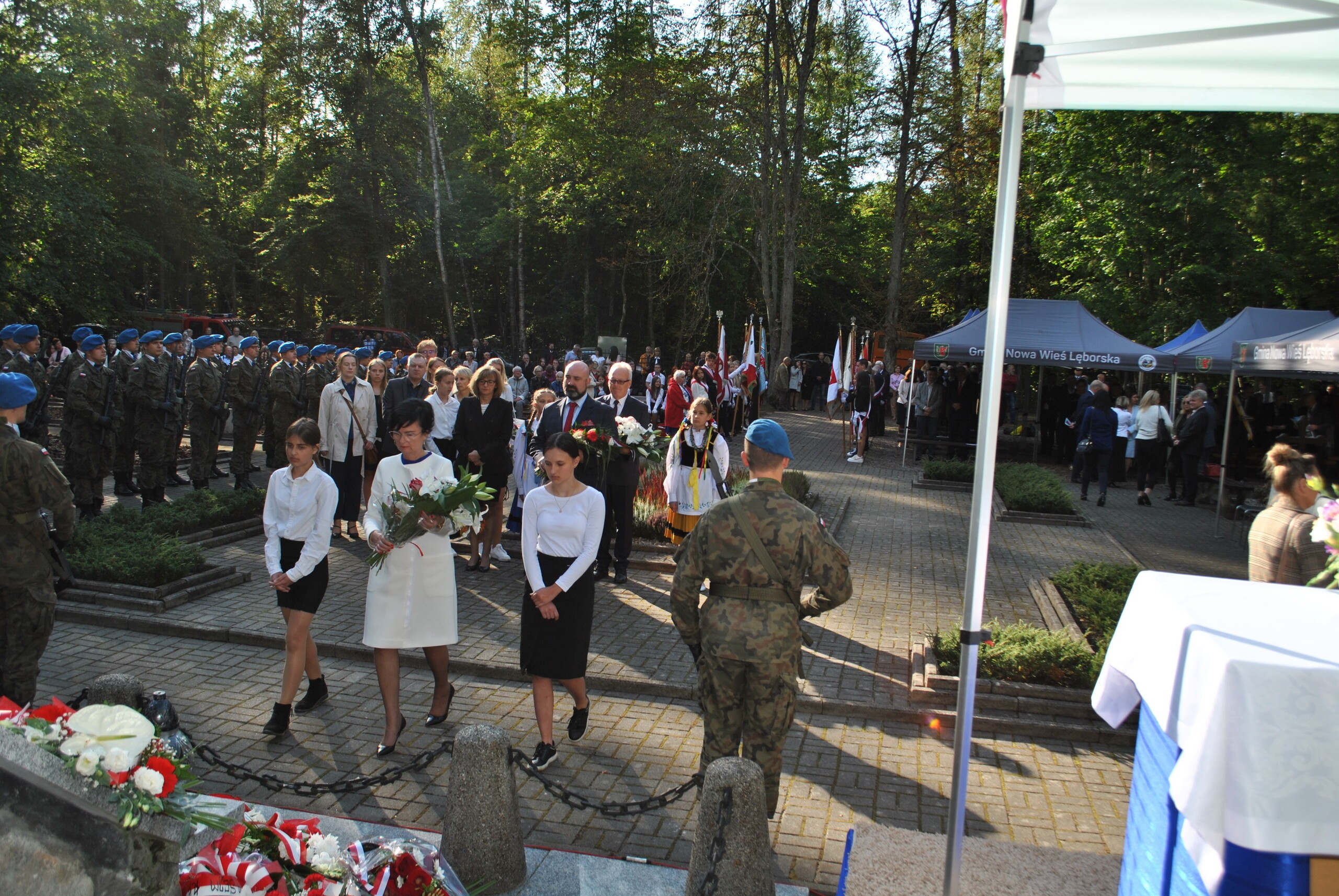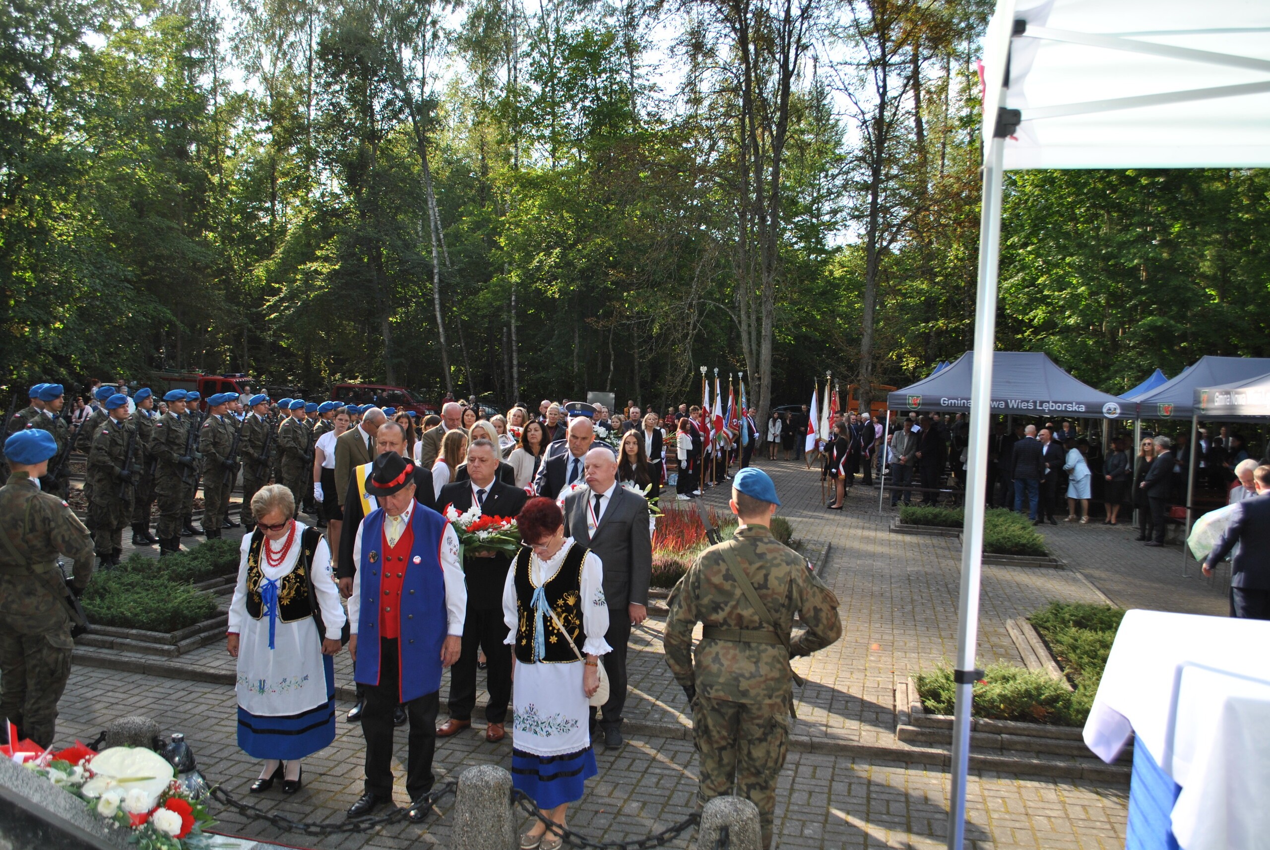 Delegacje złożyły wieńce i wiązanki przed pomnikiem pamięci. Na zakończenie uroczystości wszyscy zebrani odśpiewali Rotę - najbardziej znaną pieśń patriotyczną. Po uroczystości zainteresowani mogli zwiedzić Izbę Pamięci w Krępie Kaszubskiej, a na wszystkich zebranych czekała ciepła grochówka.