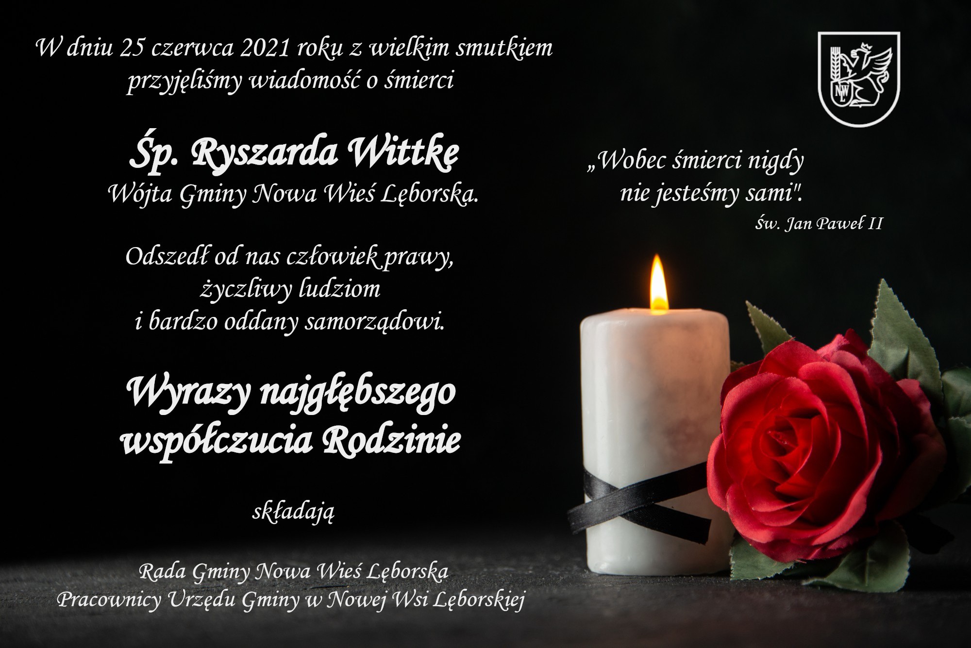 Z głębokim żalem zawiadamiamy, iż w dniu 25 czerwca 2021 roku odszedł od nas w wieku 68 lat Wójt Gminy Nowa Wieś Lęborska Ryszard Wittke. Do końca swoich dni pełnił obowiązki Wójta. Na zawsze pozostanie w naszej pamięci.