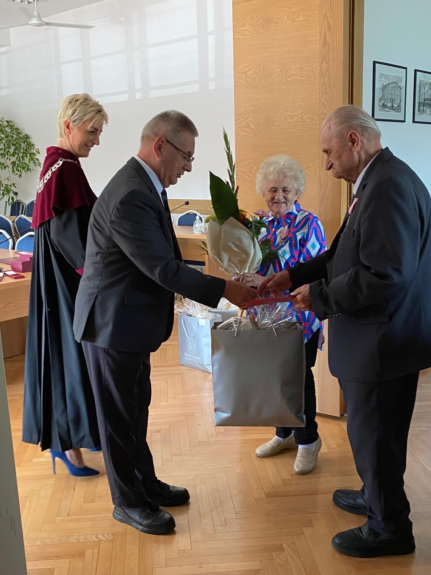 W imieniu Prezydenta RP Wójt Gminy Nowa Wieś Lęborska Zdzisław Chojnacki dostojnym Jubilatom „Medale Róży” za Długoletnie Pożycie Małżeńskie.