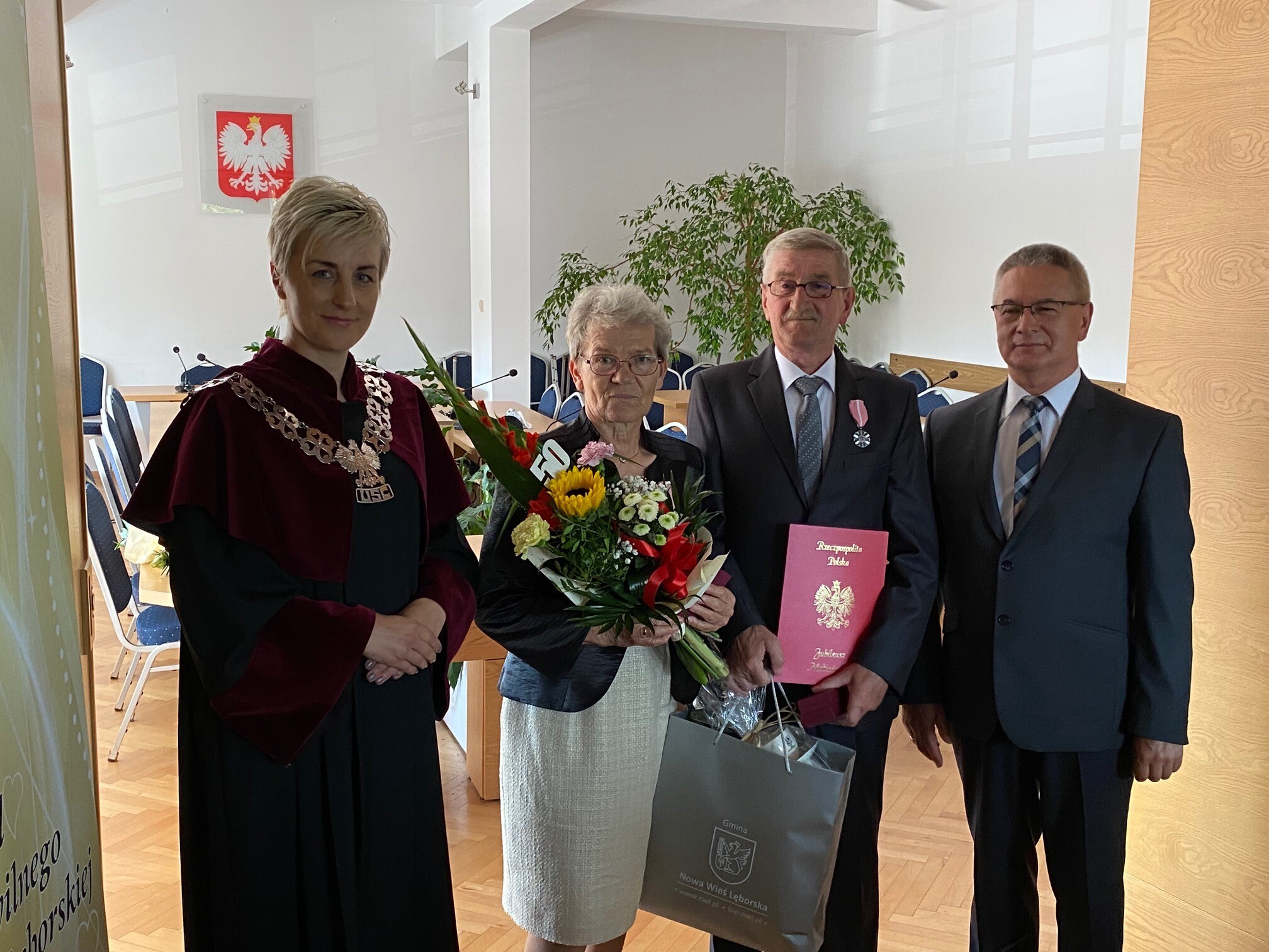 "Życzymy Szanownym Jubilatom długich i pogodnych lat życia, w jak najlepszym zdrowiu i zadowoleniu oraz niegasnącej miłości otoczenia najbliższych. Wszystkiego najlepszego" - życzył Zdzisław Chojnacki Wójt Gminy i Joanna Klein Kierownik Urzędu Stanu Cywilnego w Nowej Wsi Lęborskiej.
