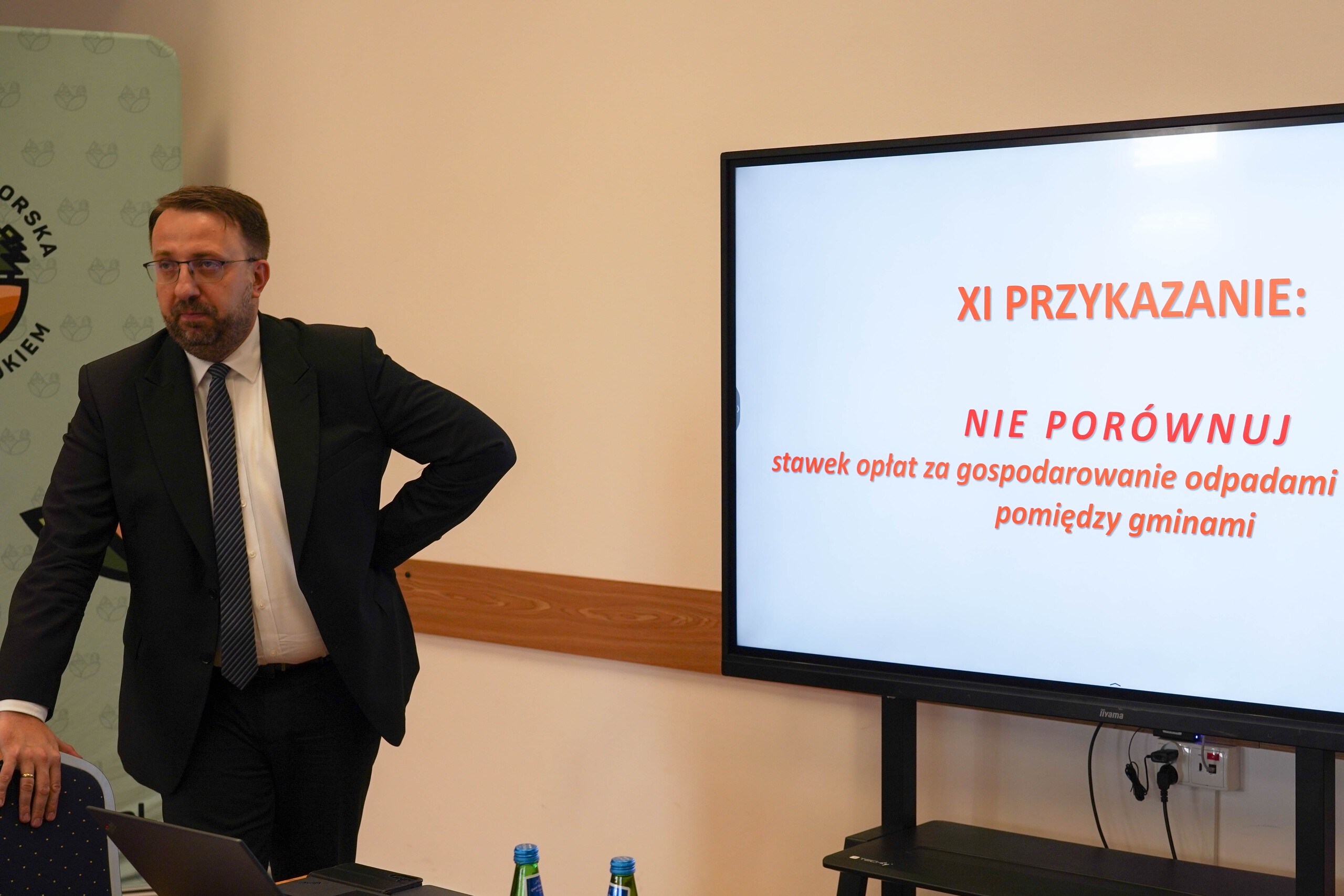 Podczas obrad mecenas Maciej Kiełbus przedstawił prezentację dotyczącą aktualnej sytuacji w zakresie gospodarki odpadami komunalnymi oraz omówił proponowane zmiany do nowelizacji ustawy o utrzymaniu czystości i porządku w gminach.