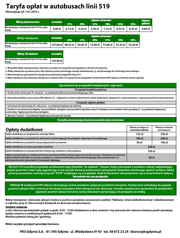 Rozkład jazdy linii 519 ważny od 1.01.2025 r.