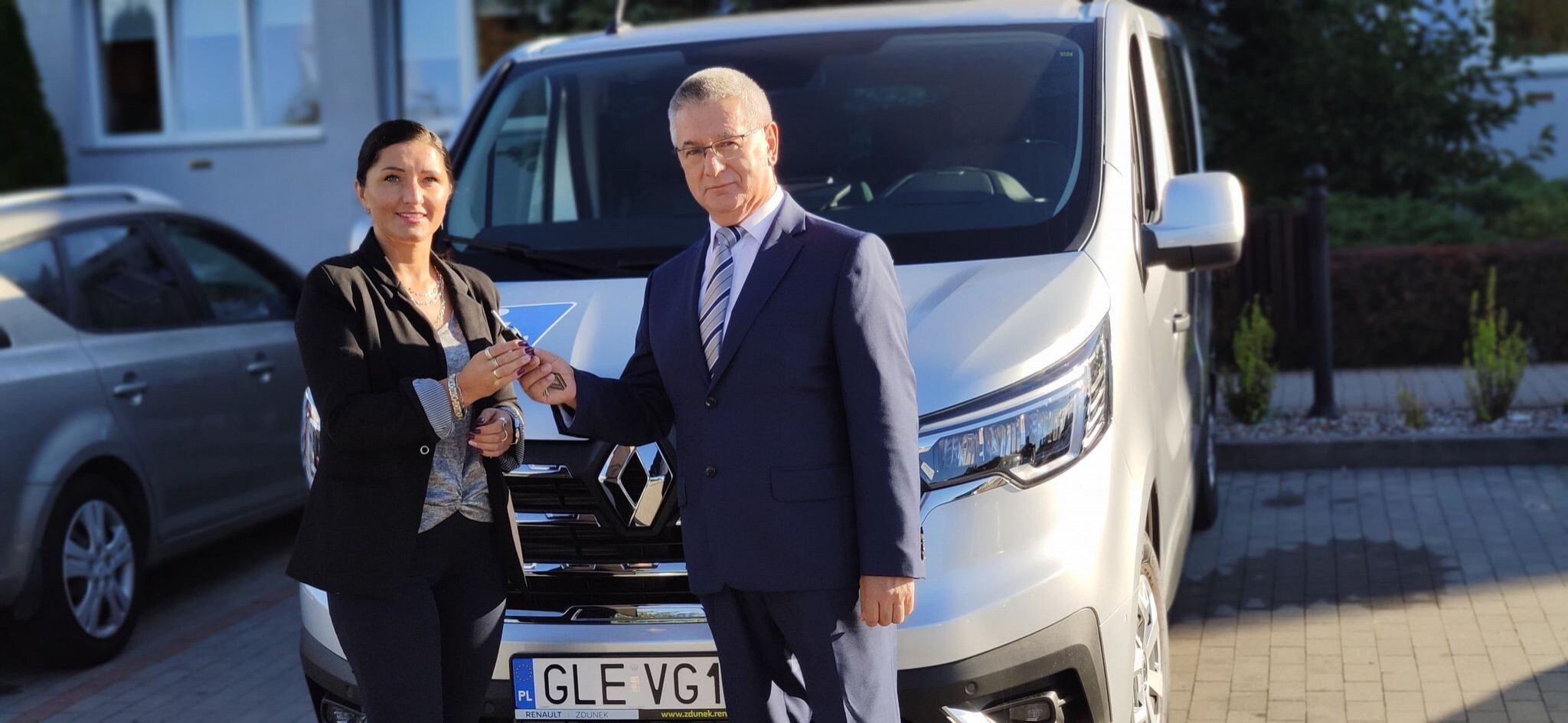 Gmina Nowa Wieś Lęborska zakupiła nowy samochód specjalistyczny dostosowany do potrzeb osób niepełnosprawnych. 9-osobowe Renault Trafic z możliwością m.in. transportu osoby poruszającej się na wózku inwalidzkim trafiło już do Gminnego Ośrodka Pomocy Społecznej. Kluczyki do pojazdu z rąk Wójta Gminy odebrała Pani Ilona Kwidzińska – nowa dyrektor Gminnego Ośrodka Pomocy Społecznej w Nowej Wsi Lęborskiej.