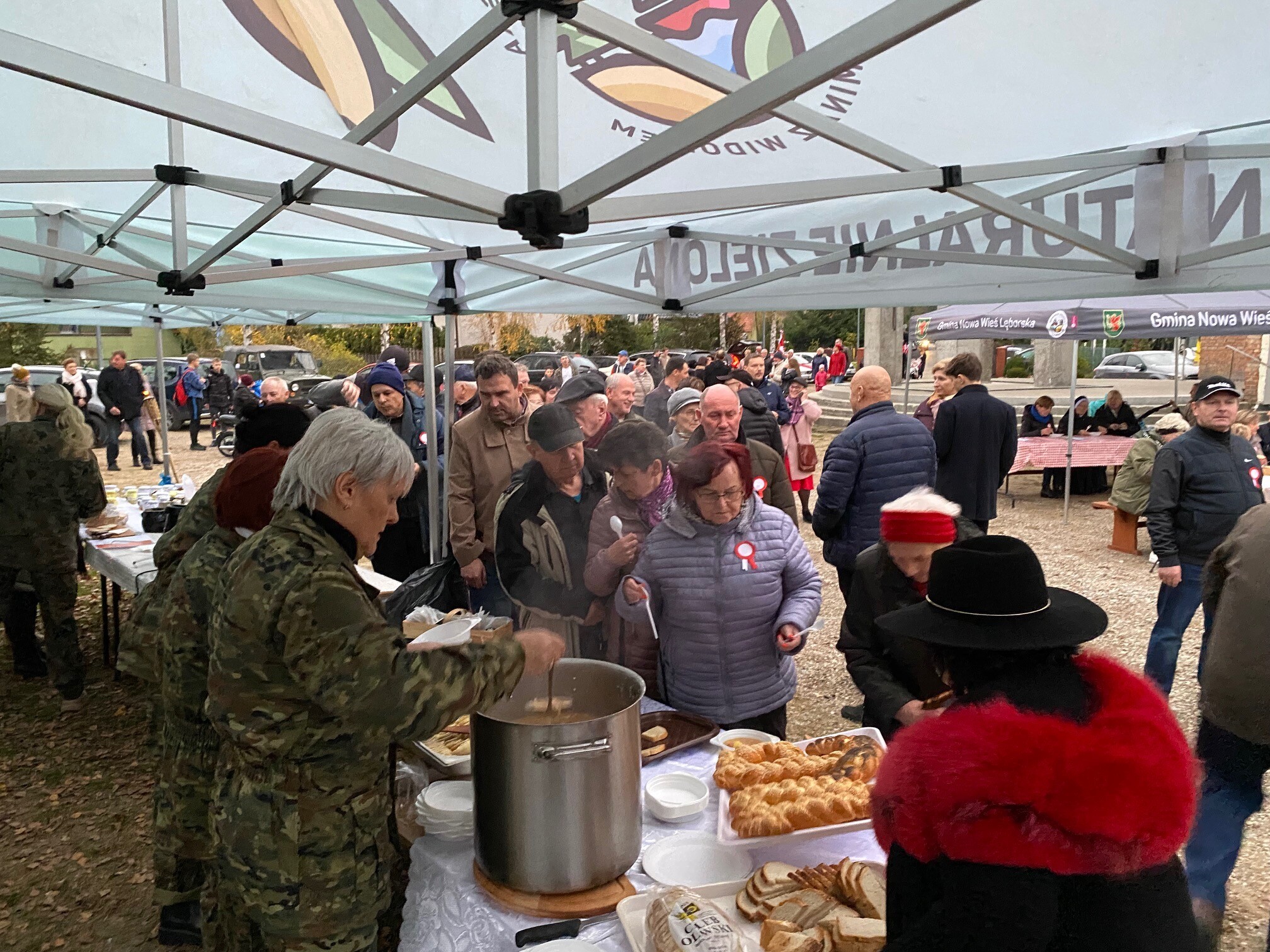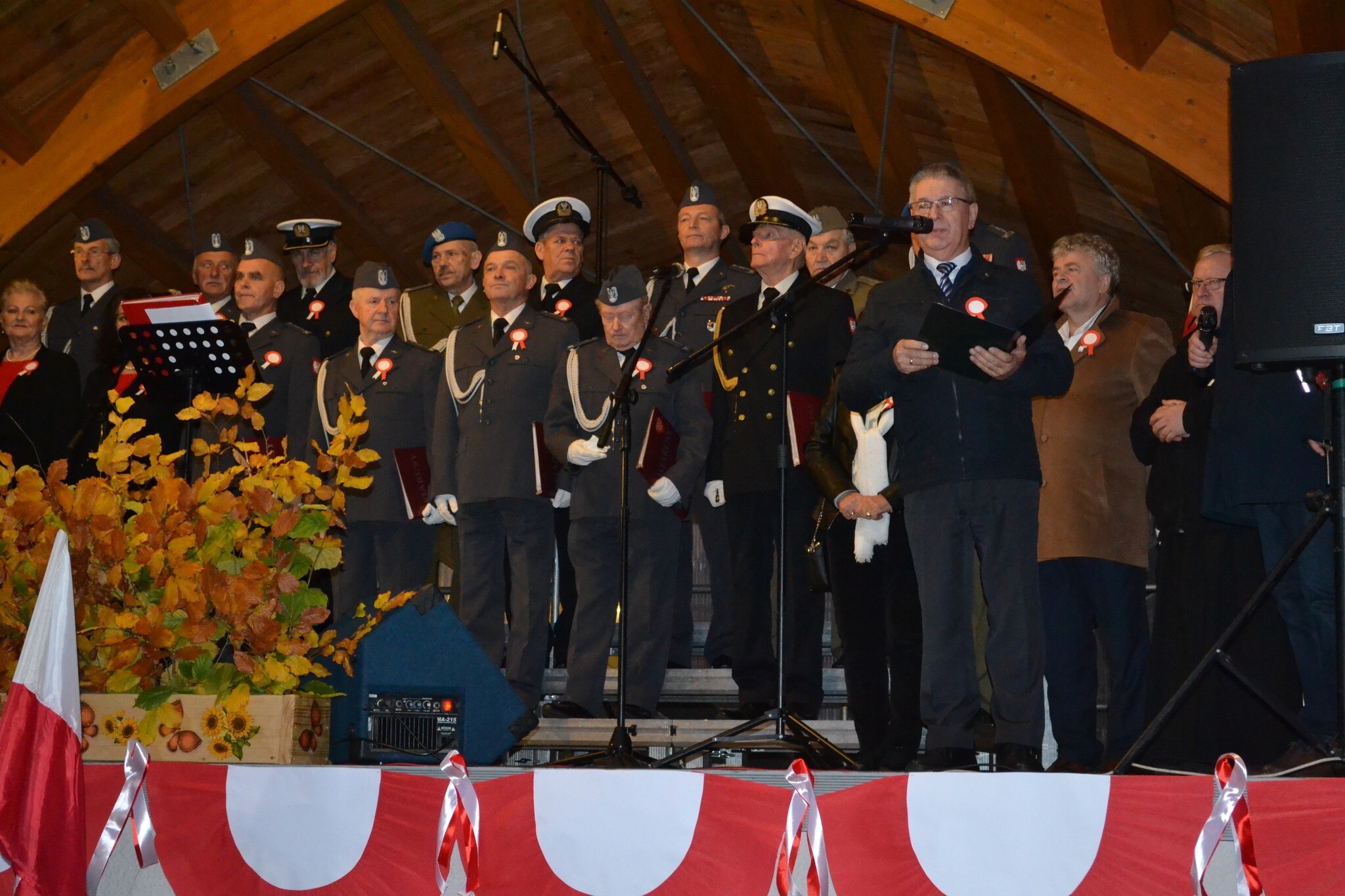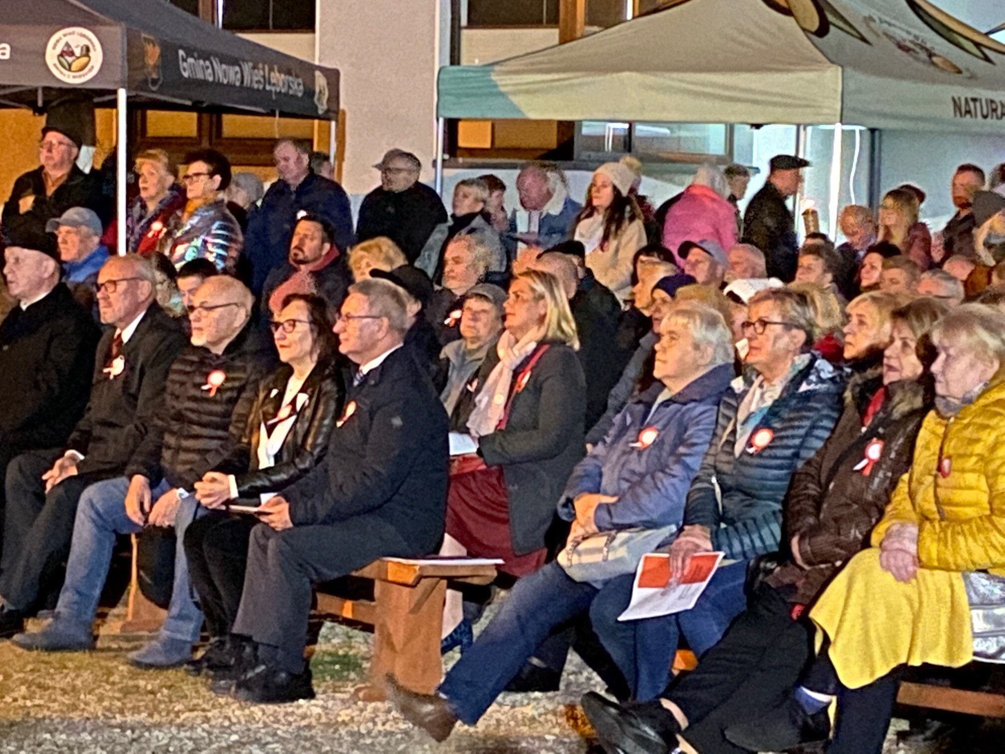 W Mostach, 13 listopada przy Centrum Kultury Chrześcijańskiej odbyły się uroczystości gminne z okazji Narodowego Dnia Niepodległości. Przybyłych gości przywitał i wygłosił okolicznościowe przemówienie Zdzisław Chojnacki Wójt Gminy. Uroczystość poprowadził Dyrektor Gminnego Ośrodka Kultury w Nowej Wsi Lęborskiej Krzysztof Pruszak. Świętowanie mieszkańcy rozpoczęli wspólnym śpiewaniem pieśni patriotycznych z Wojskowym Zespołem Wokalnym "Wiarusy" ze Słupska. Wyjątkową atmosferę niepodległościowego święta zapewnili muzycy i chórzyści z Gminnego Chóru Cewice pod batutą Huberta Szczypiorskiego. Gościliśmy również poczet sztandarowy Związku Żołnierzy Wojska Polskiego - Koło Nr 6 Lębork. O poczęstunek, głównie z nowowiejskiej gęsiny, zadbały panie z Koła Gospodyń Wiejskich w Mostach.