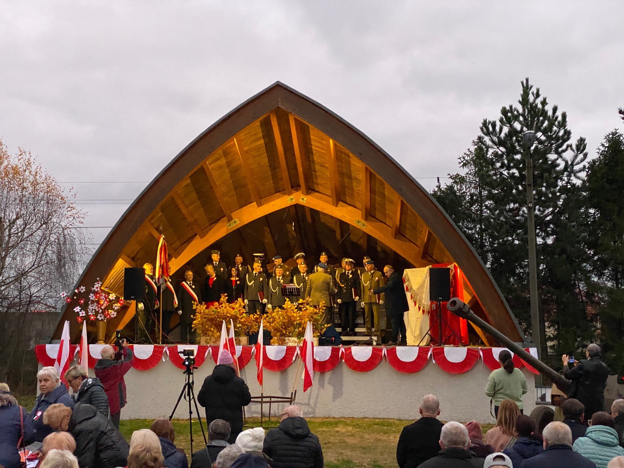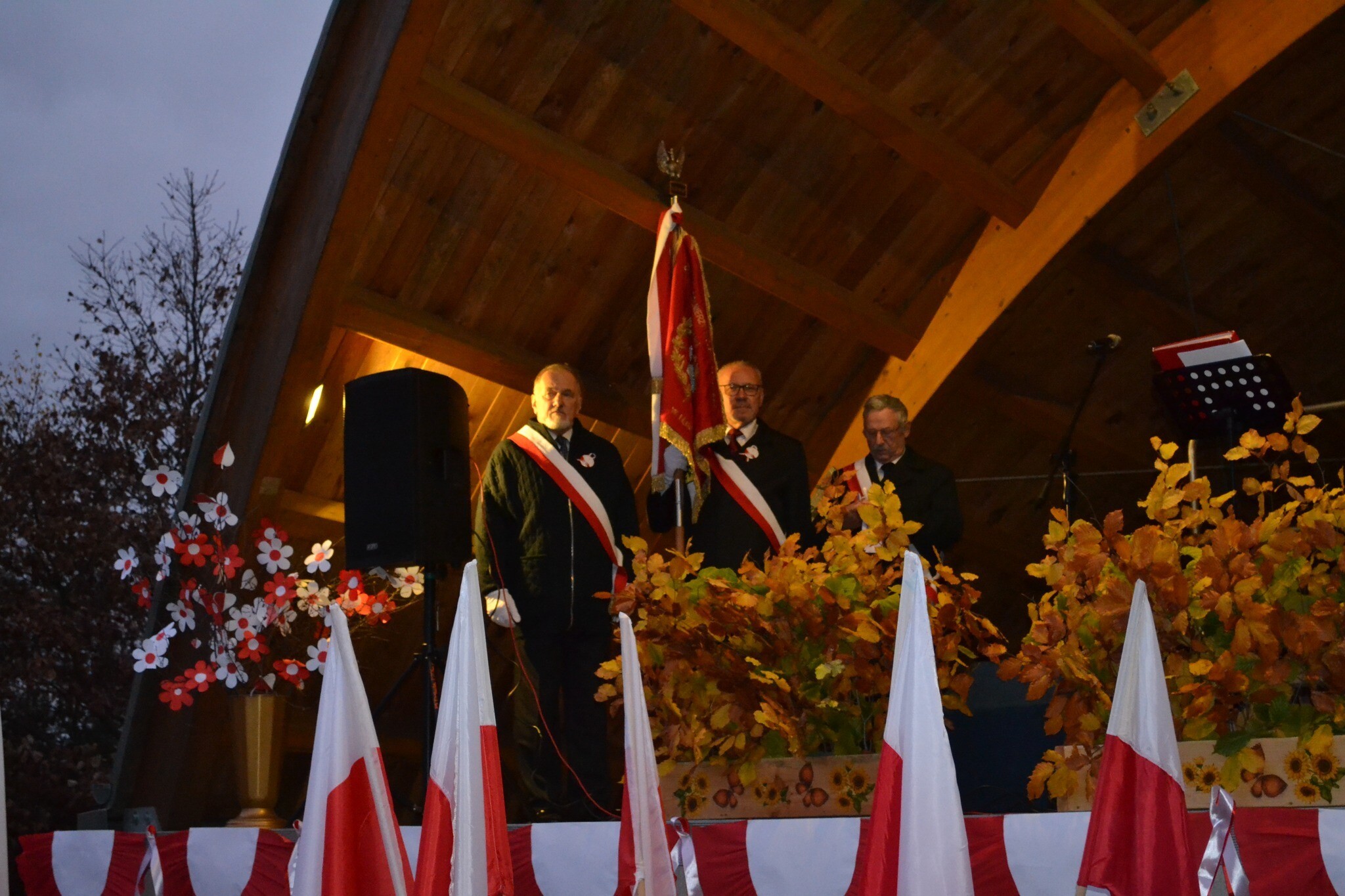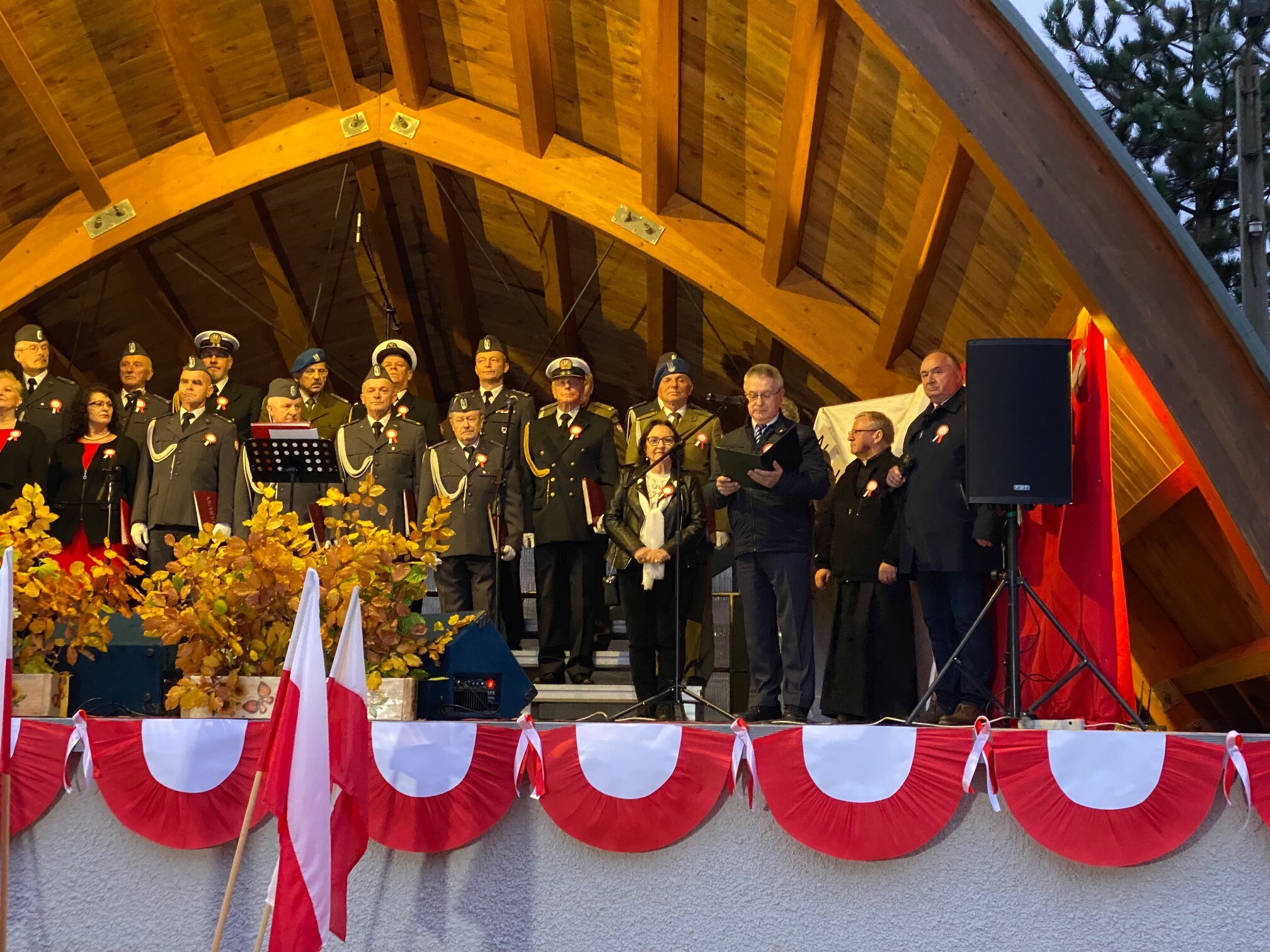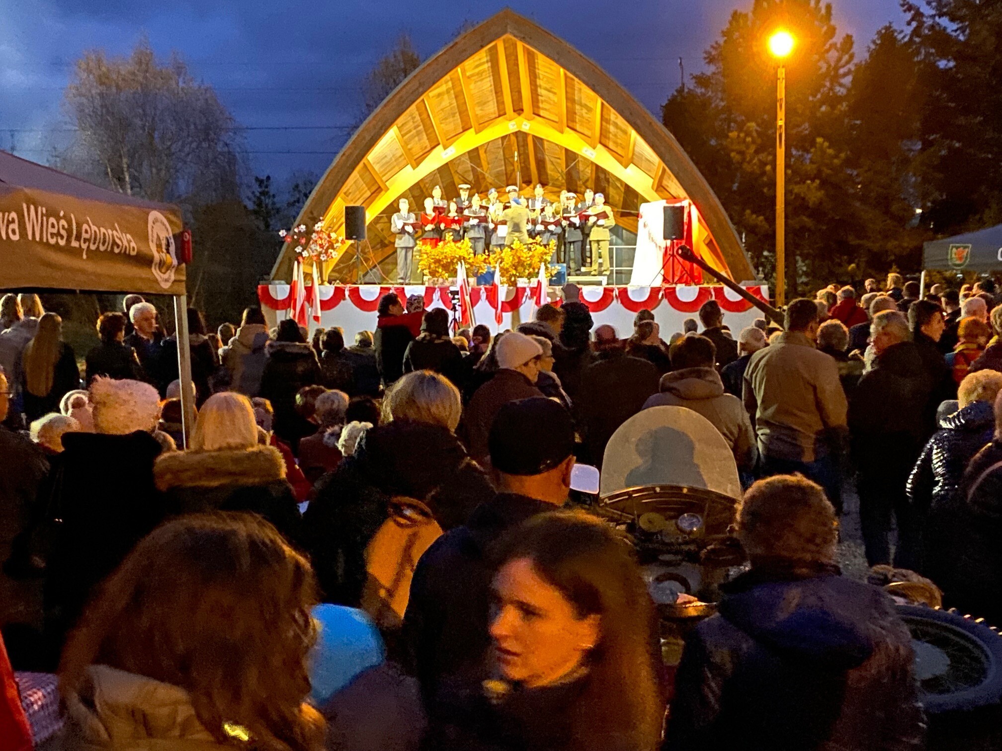 W Mostach, 13 listopada przy Centrum Kultury Chrześcijańskiej odbyły się uroczystości gminne z okazji Narodowego Dnia Niepodległości. Przybyłych gości przywitał i wygłosił okolicznościowe przemówienie Zdzisław Chojnacki Wójt Gminy. Uroczystość poprowadził Dyrektor Gminnego Ośrodka Kultury w Nowej Wsi Lęborskiej Krzysztof Pruszak. Świętowanie mieszkańcy rozpoczęli wspólnym śpiewaniem pieśni patriotycznych z Wojskowym Zespołem Wokalnym "Wiarusy" ze Słupska. Wyjątkową atmosferę niepodległościowego święta zapewnili muzycy i chórzyści z Gminnego Chóru Cewice pod batutą Huberta Szczypiorskiego. Gościliśmy również poczet sztandarowy Związku Żołnierzy Wojska Polskiego - Koło Nr 6 Lębork. O poczęstunek, głównie z nowowiejskiej gęsiny, zadbały panie z Koła Gospodyń Wiejskich w Mostach.