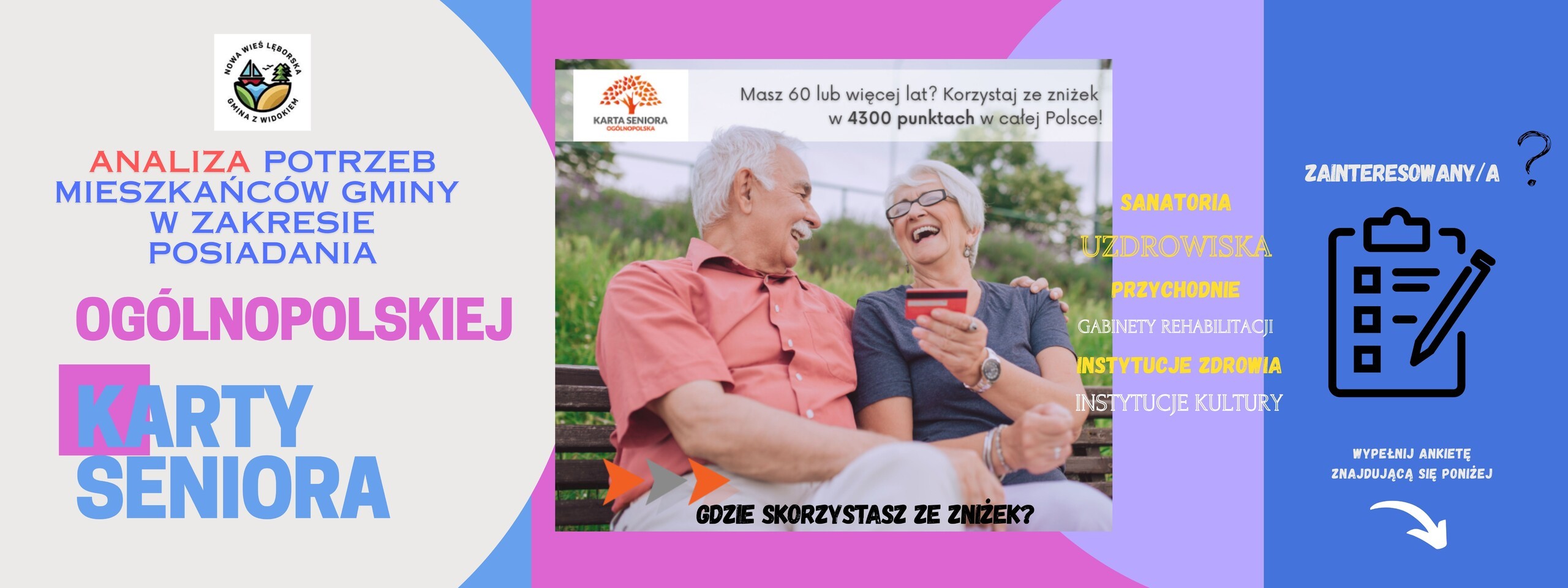 Gmina Nowa Wieś Lęborska prowadzi rozeznanie wśród mieszkańców w sprawie zainteresowania Ogólnopolską Kartą Seniora. Do 31 maja 2025 r. seniorzy mogą wypełnić ankietę online, która pomoże określić, ile osób chciałoby korzystać z programu i umożliwi gminie podjęcie dalszych działań w celu jego wdrożenia.