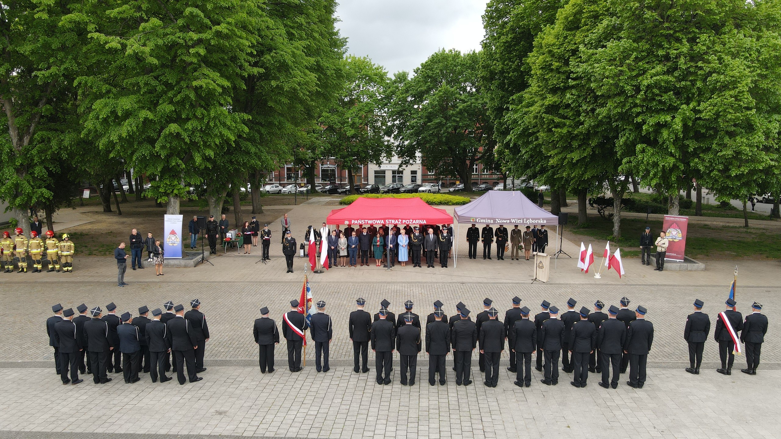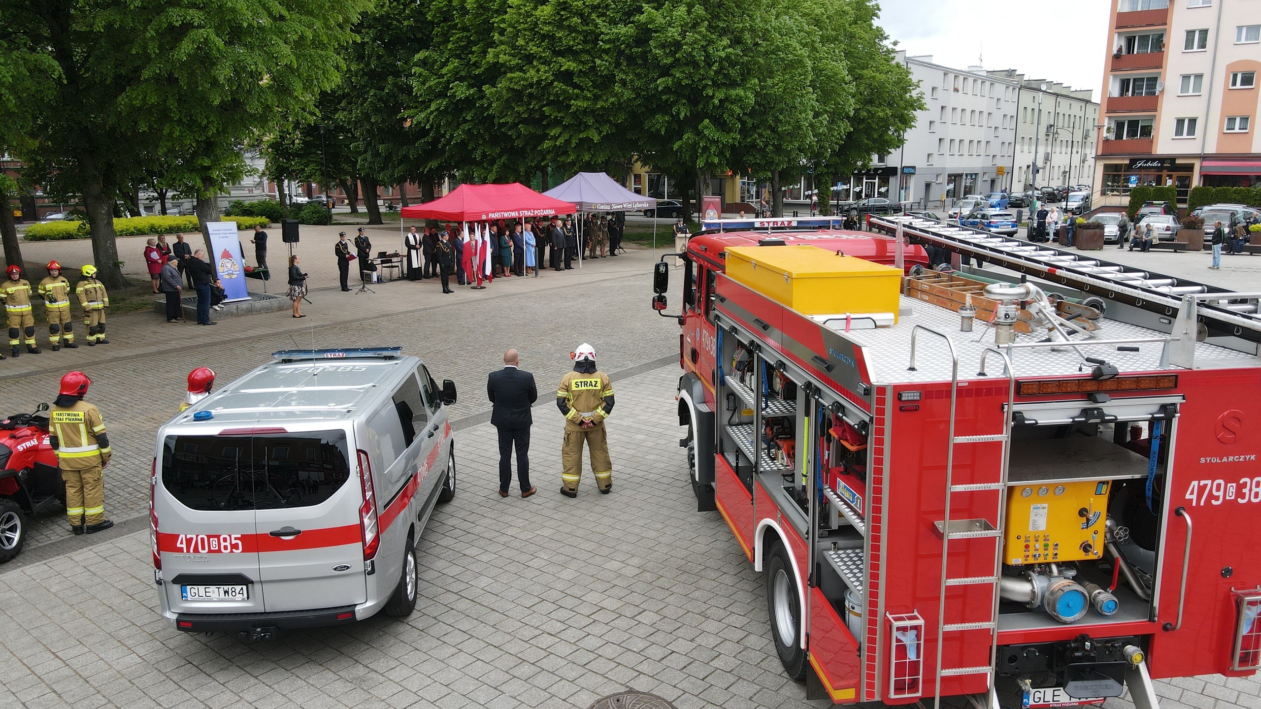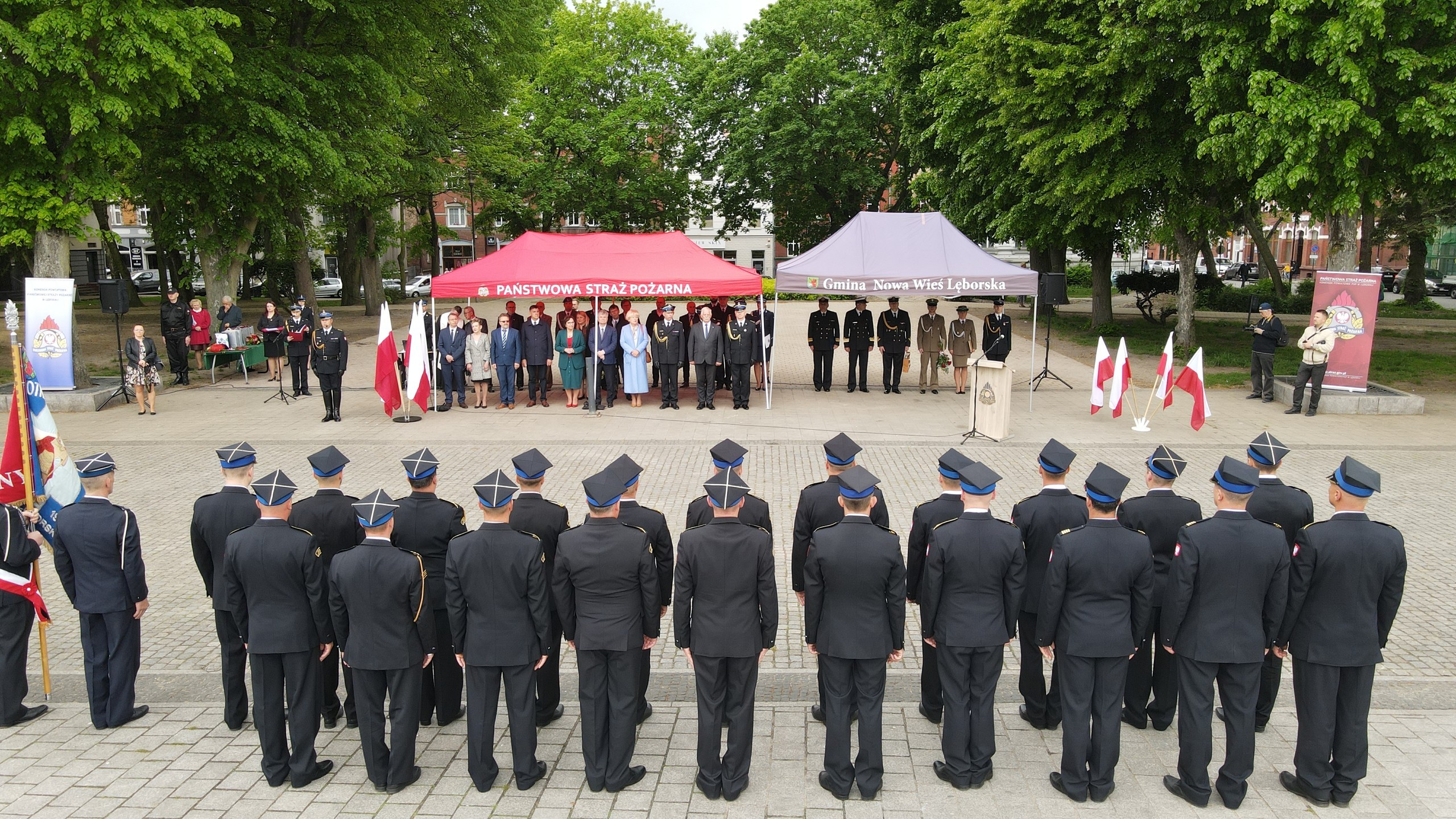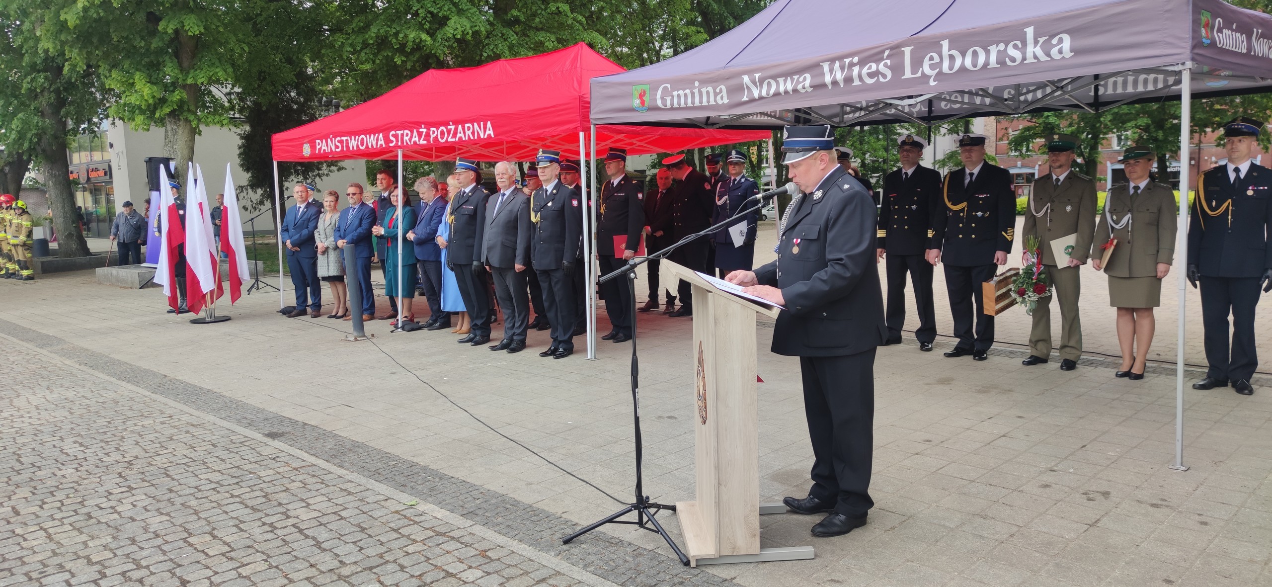 Na Placu Pokoju w Lęborku odbyły się powiatowe obchody Dnia Strażaka połączone z jubileuszem 30-lecia Państwowej Straży Pożarnej. Podczas wydarzenia strażakom wręczono odznaczenia i nadano wyższe stopnie służbowe. Wójt Gminy z rąk Wicewojewody Pomorskiego otrzymał kluczyki do nowego pojazdu ratowniczo-gaśniczego dla Ochotniczej Straży Pożarnej w Nowej Wsi Lęborskiej.