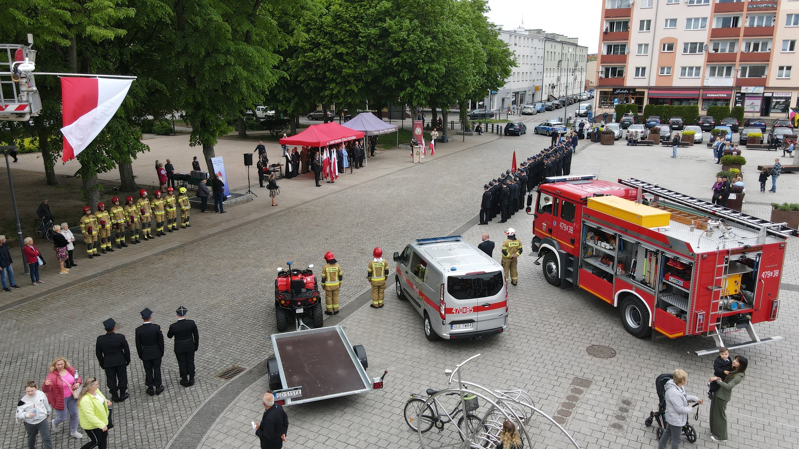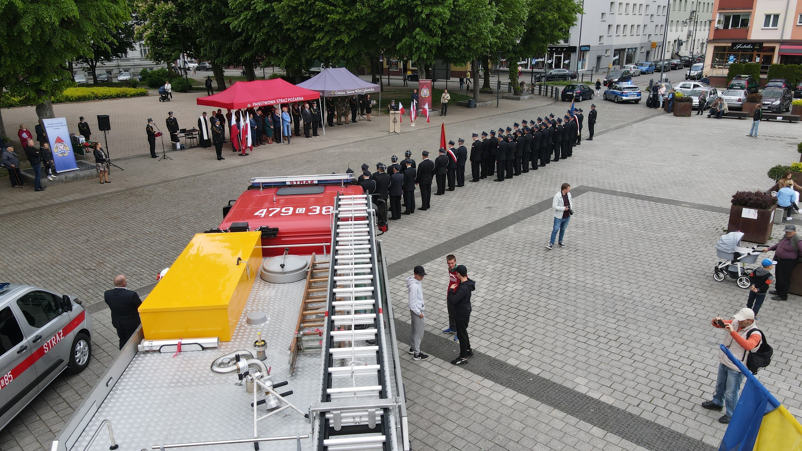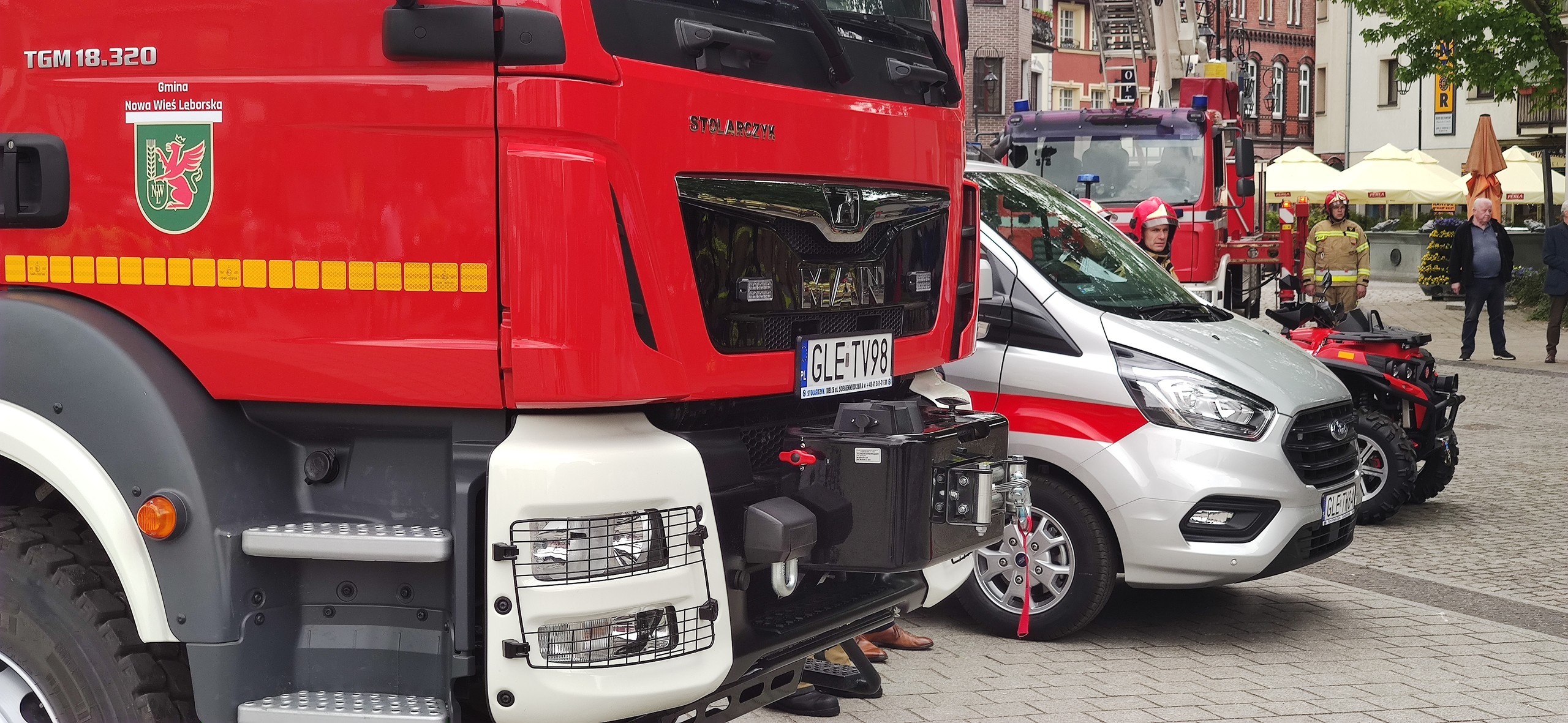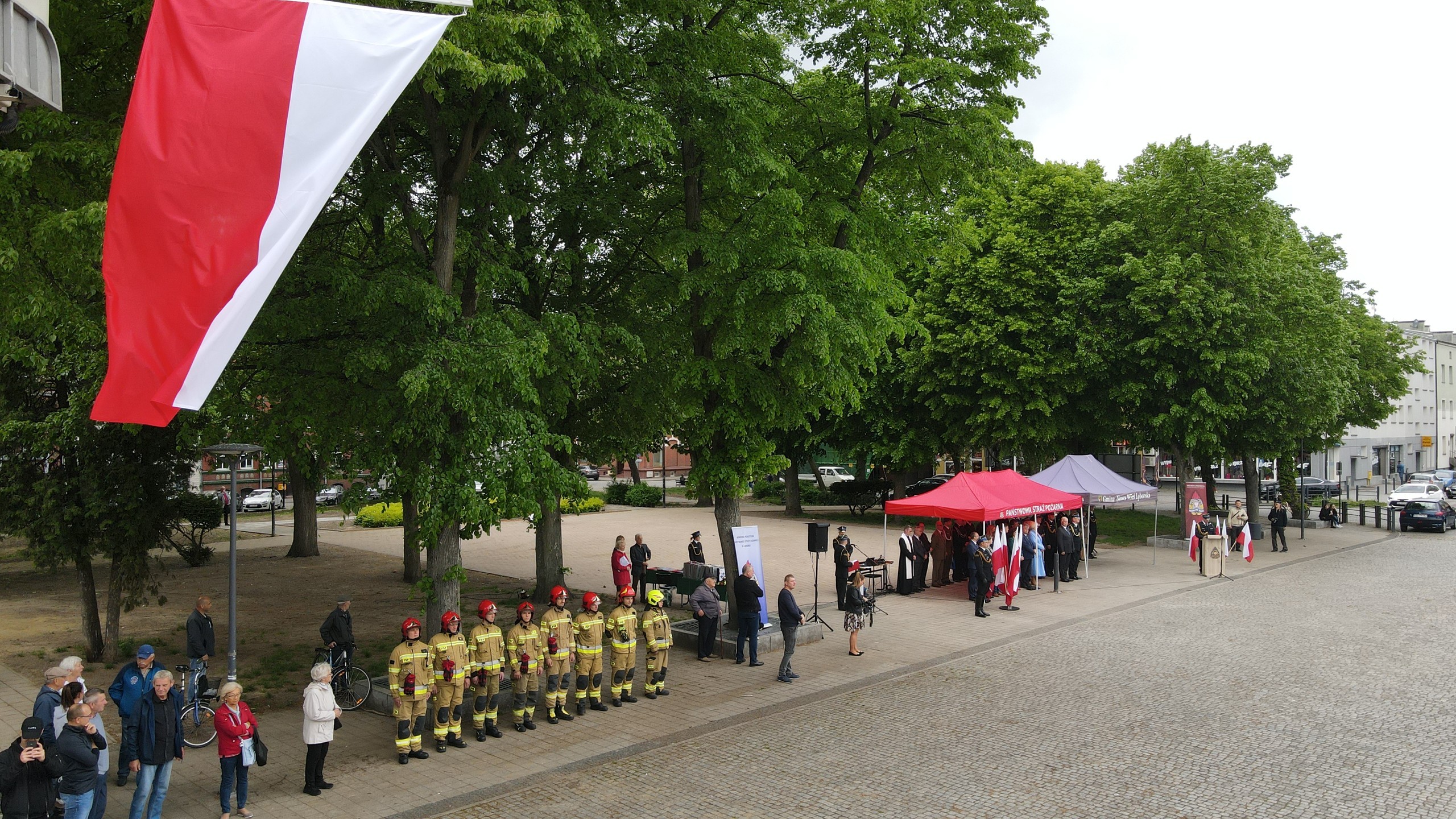 Na Placu Pokoju w Lęborku odbyły się powiatowe obchody Dnia Strażaka połączone z jubileuszem 30-lecia Państwowej Straży Pożarnej. Podczas wydarzenia strażakom wręczono odznaczenia i nadano wyższe stopnie służbowe. Wójt Gminy z rąk Wicewojewody Pomorskiego otrzymał kluczyki do nowego pojazdu ratowniczo-gaśniczego dla Ochotniczej Straży Pożarnej w Nowej Wsi Lęborskiej.