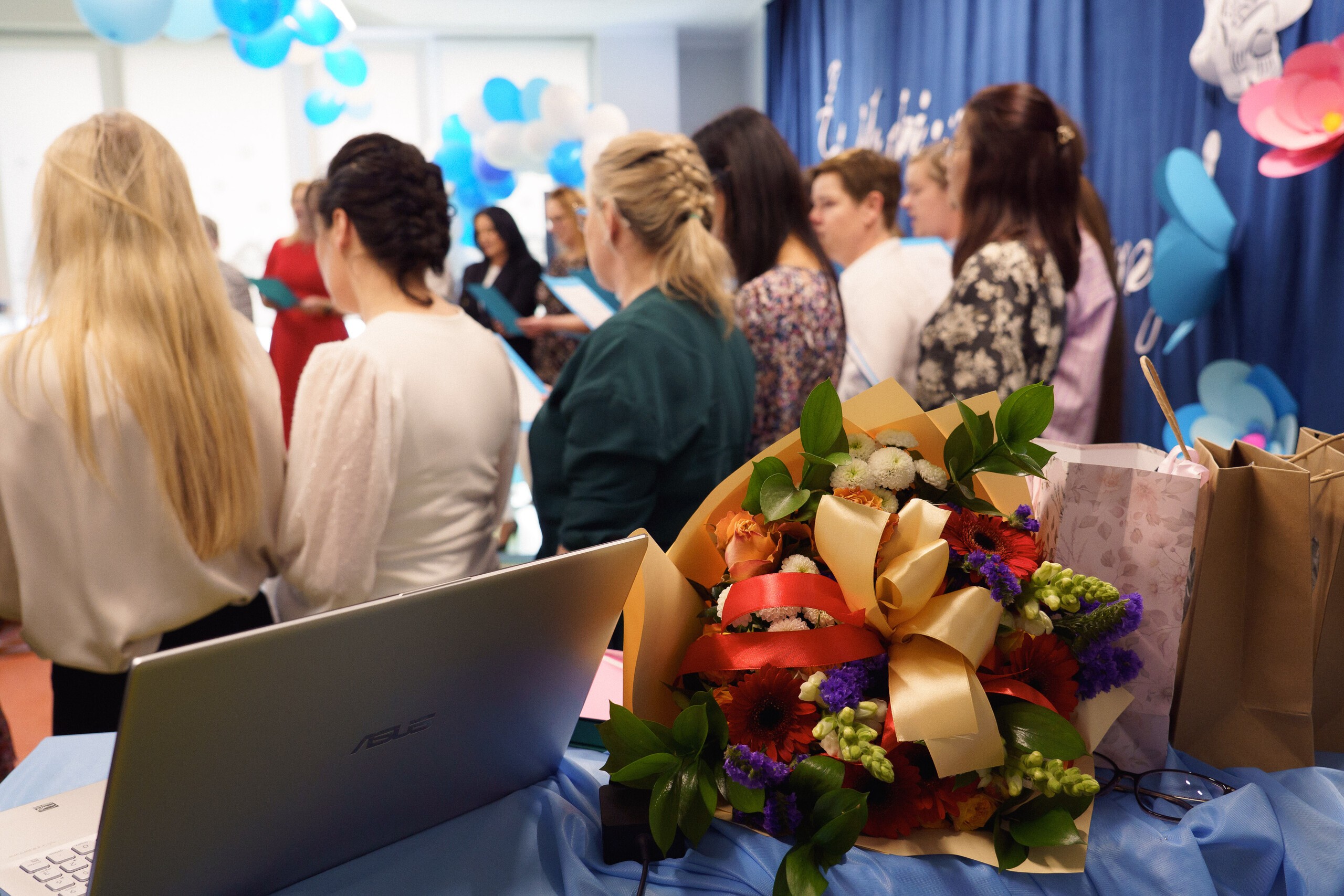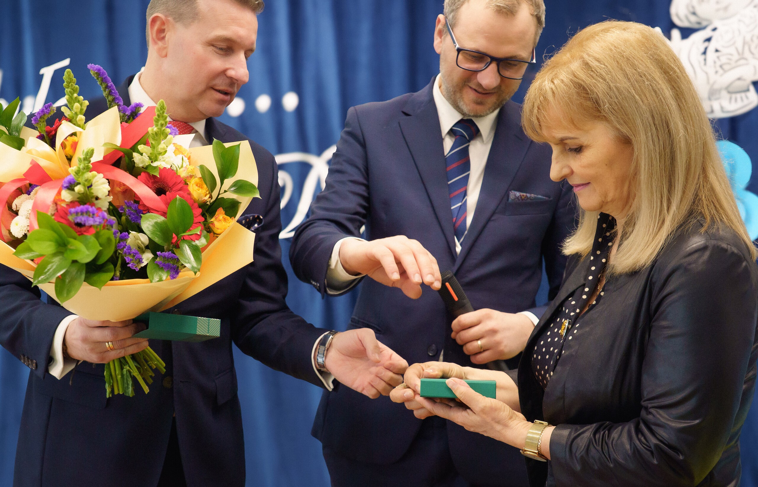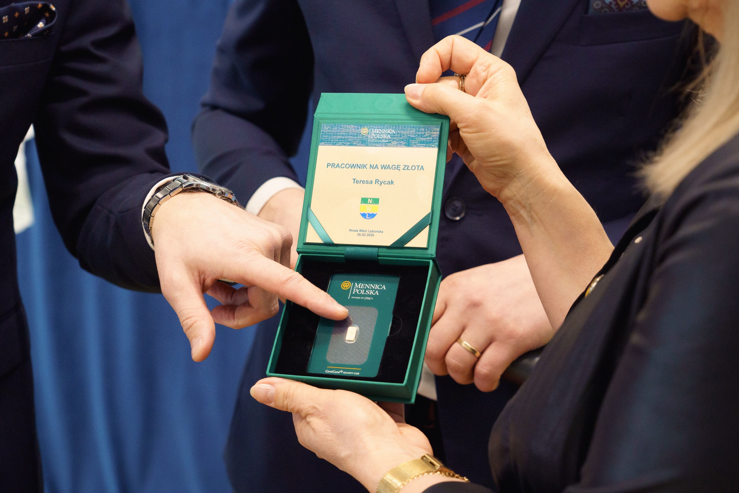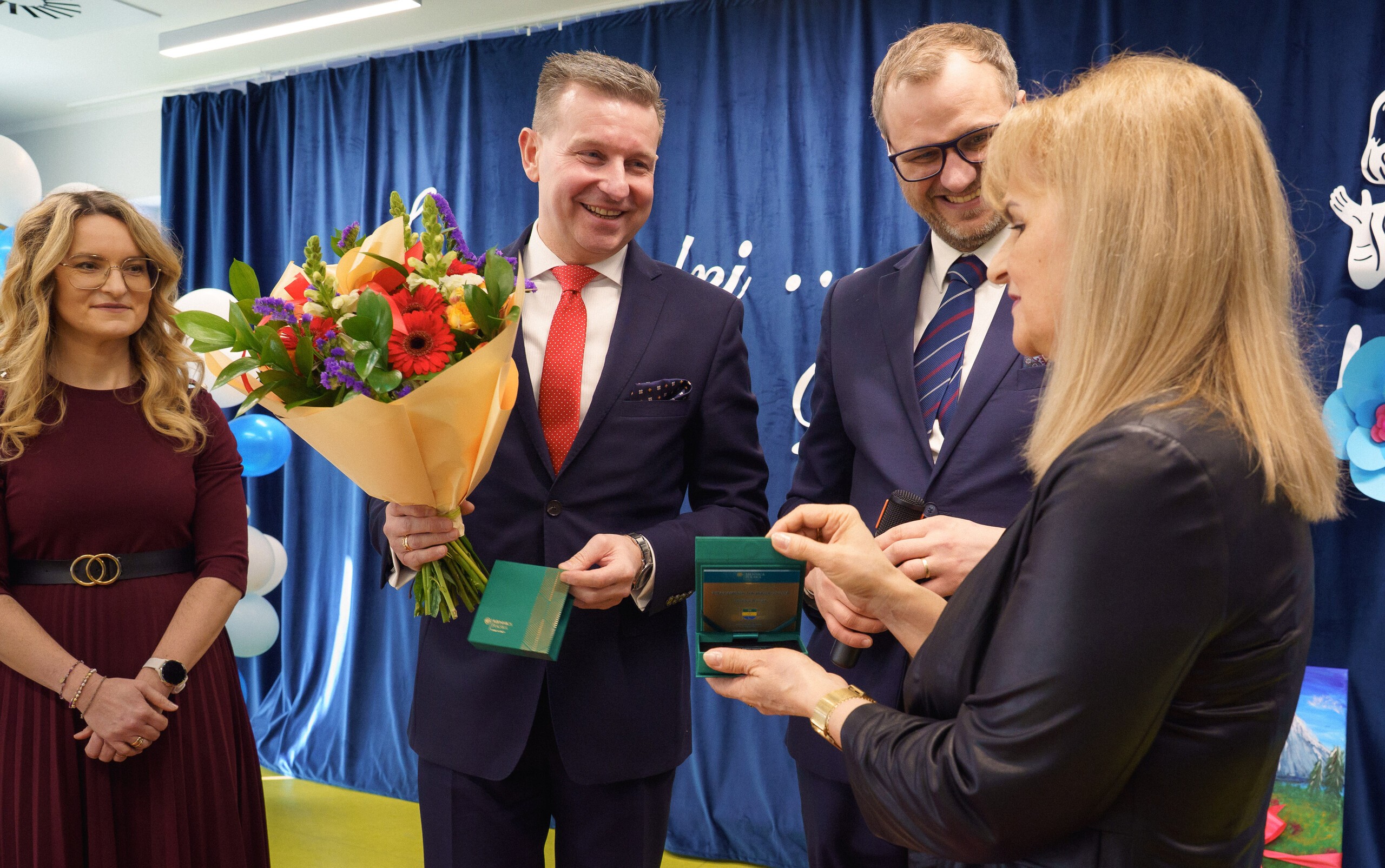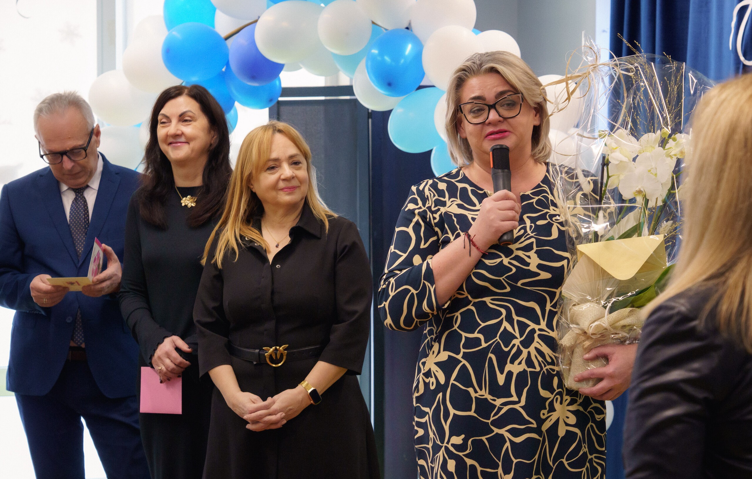 Podziękowania za lata pasji i ogromnego zaangażowania złożyli przedstawiciele władz gminy: Wójt Szymon Medalion oraz Zastępca Wójta Marian Kurzydło. Wójt, doceniając profesjonalizm i serce włożone w rozwój edukacji, wręczył odchodzącej dyrektor symboliczny upominek - sztabkę złota. W wydarzeniu uczestniczyli również: Roman Downar-Zapolski (Przewodniczący Rady Gminy), Wojciech Kublik (Przewodniczący Komisji Oświaty), dyrektorzy placówek oświatowych, przedstawiciele GOPS, Rady Rodziców oraz kadra pedagogiczna.