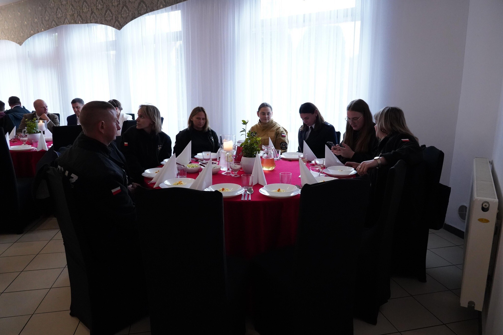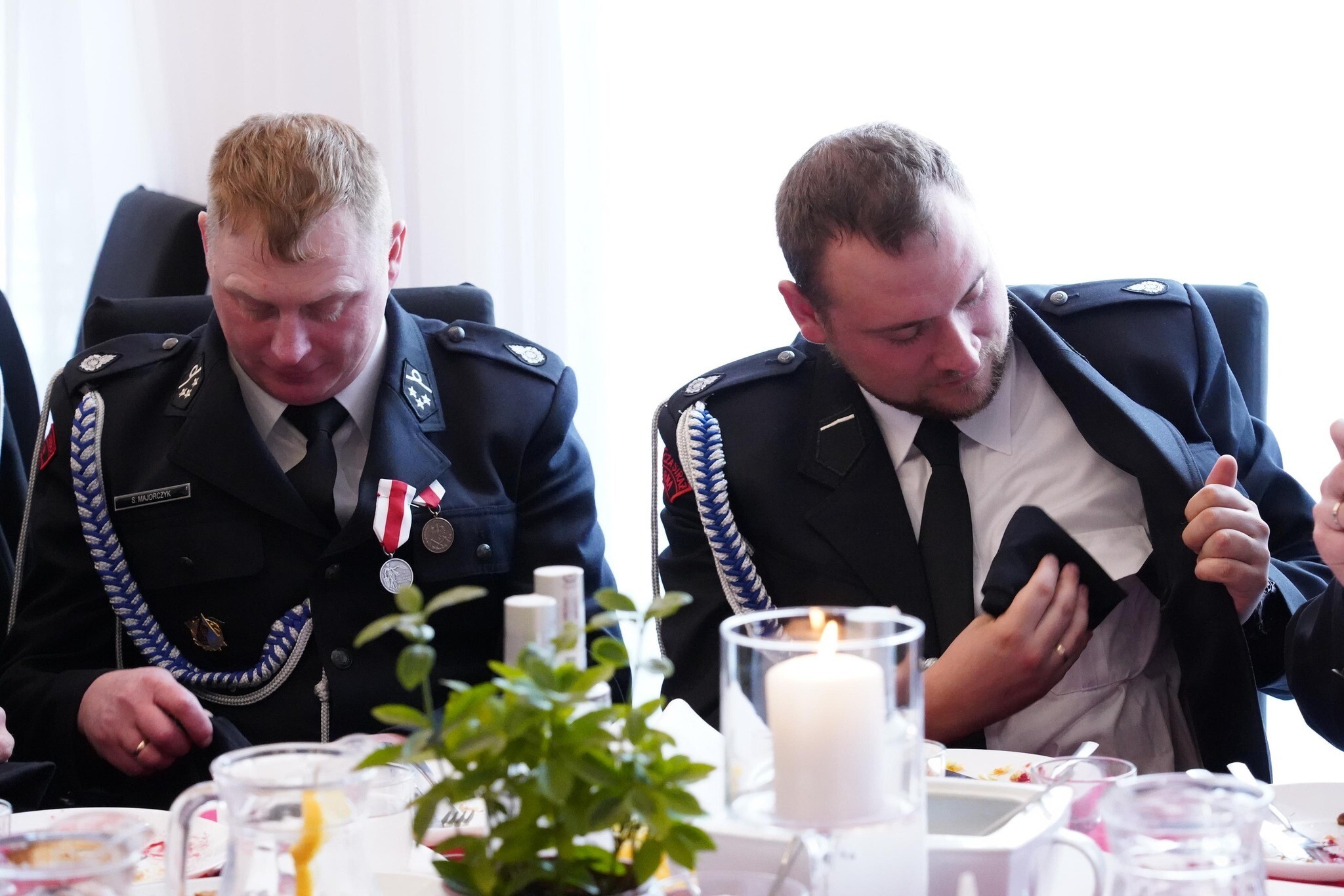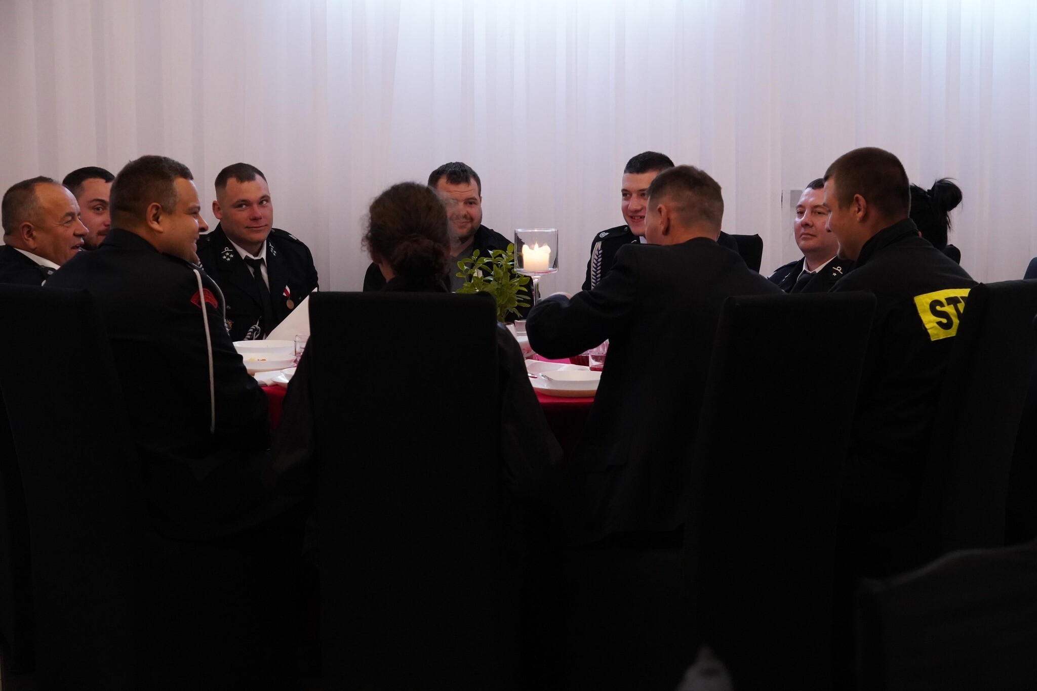 Po części oficjalnej uczestnicy obchodów zostali zaproszeni na uroczysty obiad. Gmina Nowa Wieś Lęborska przygotowała dla druhów drobne upominki – kominy ochronne z logo gminy – jako symboliczne podziękowanie za trud, zaangażowanie i gotowość do działania w każdej sytuacji.