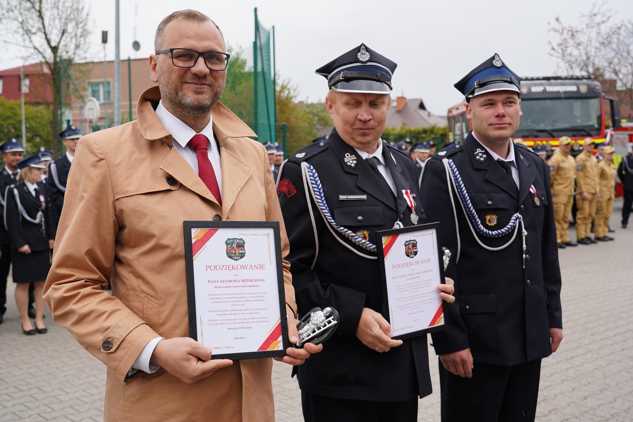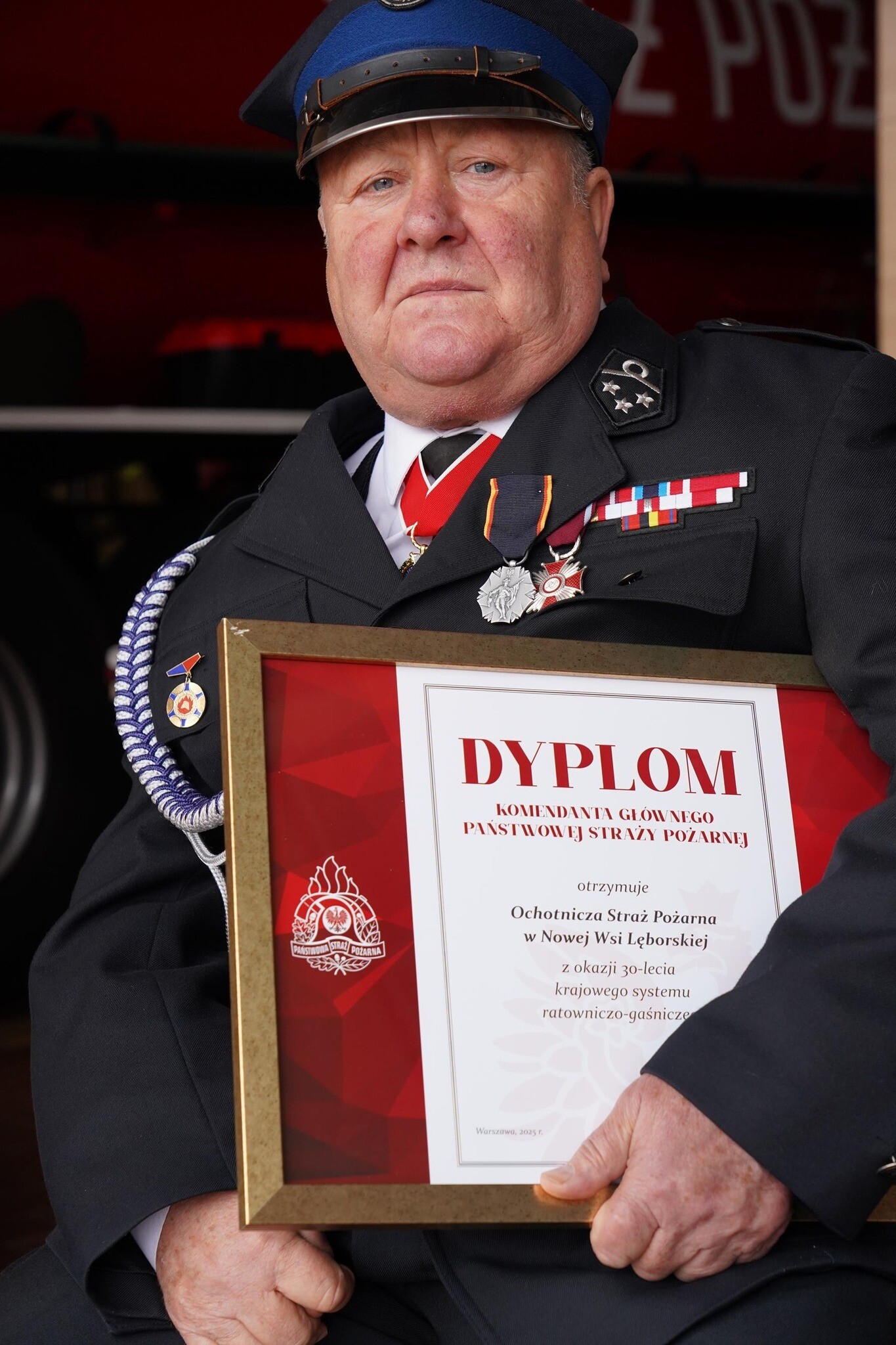 Uroczystość była także okazją do wręczenia licznych odznaczeń dla druhów i druhen z jednostek OSP oraz funkcjonariuszy PSP. Wśród uhonorowanych znaleźli się m.in. druh Mirosław Elwart z OSP Nowa Wieś Lęborska – odznaczony kilka dni wcześniej podczas Centralnych Obchodów Dnia Strażaka w Warszawie Krzyżem św. Floriana przez Prezydenta RP, Wojciech Kublik – radny Gminy Nowa Wieś Lęborska i strażak Komendy Powiatowej PSP w Lęborku, Roman Downar-Zapolski – przewodniczący Rady Gminy, prezes Zarządu Oddziału Powiatowego ZOSP RP i członek Zarządu Oddziału Wojewódzkiego ZOSP RP, oraz druh Błażej Makurat – Komendant Gminny Ochrony Przeciwpożarowej i wiceprezes Zarządu Oddziału Powiatowego ZOSP RP w Lęborku.