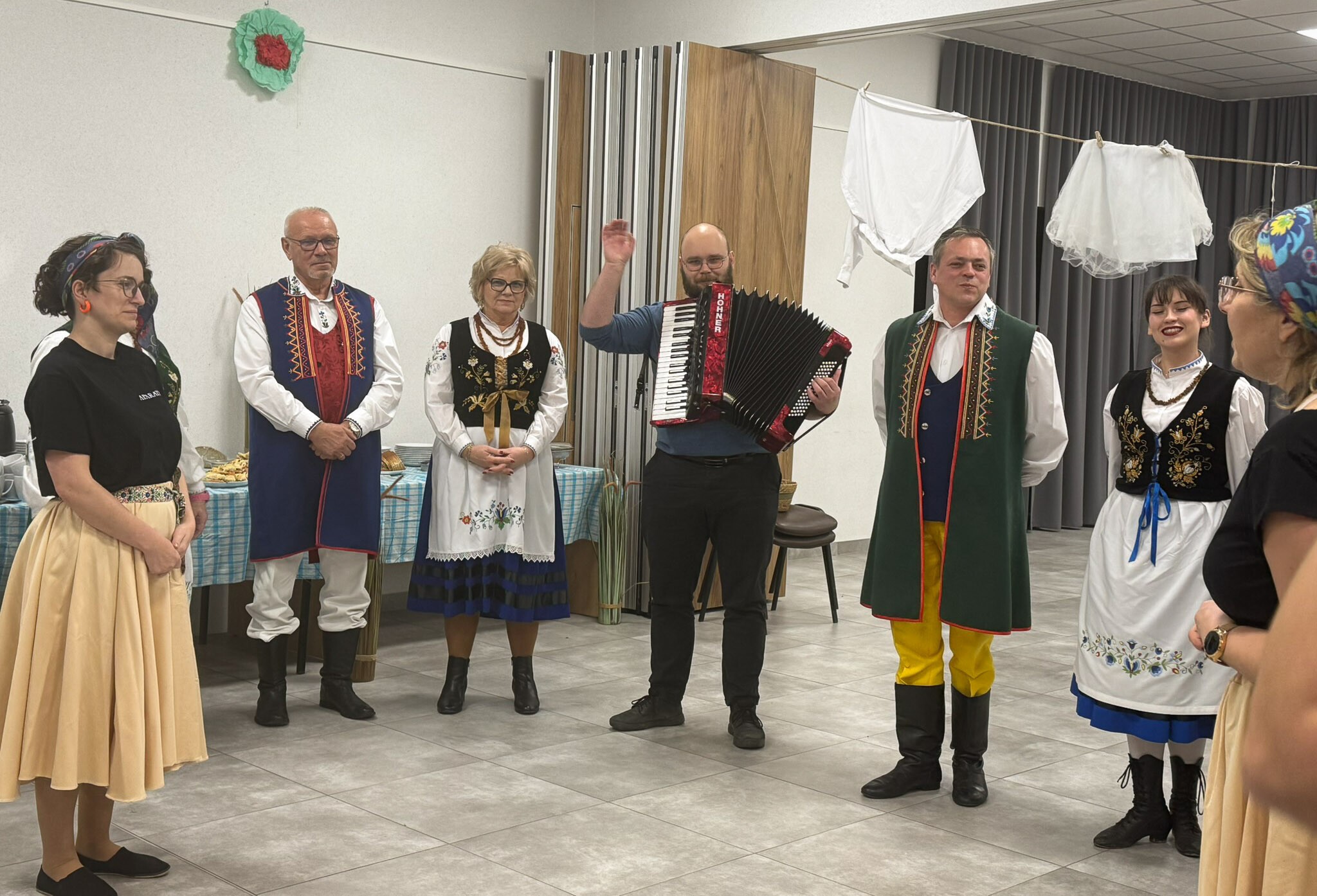 Wyjątkowego klimatu wydarzeniu dodali członkowie Lęborskiego Zespołu Pieśni i Tańca, którzy zaprezentowali się w staropolskich strojach, podkreślając regionalny i narodowy charakter spotkania. O część kulinarną zadbało Koło Gospodyń Wiejskich w Czarnówku, serwując m.in. polski żur, domowy chleb ze smalcem i ogórkiem, co stało się dodatkową okazją do przypomnienia tradycyjnych smaków kuchni.