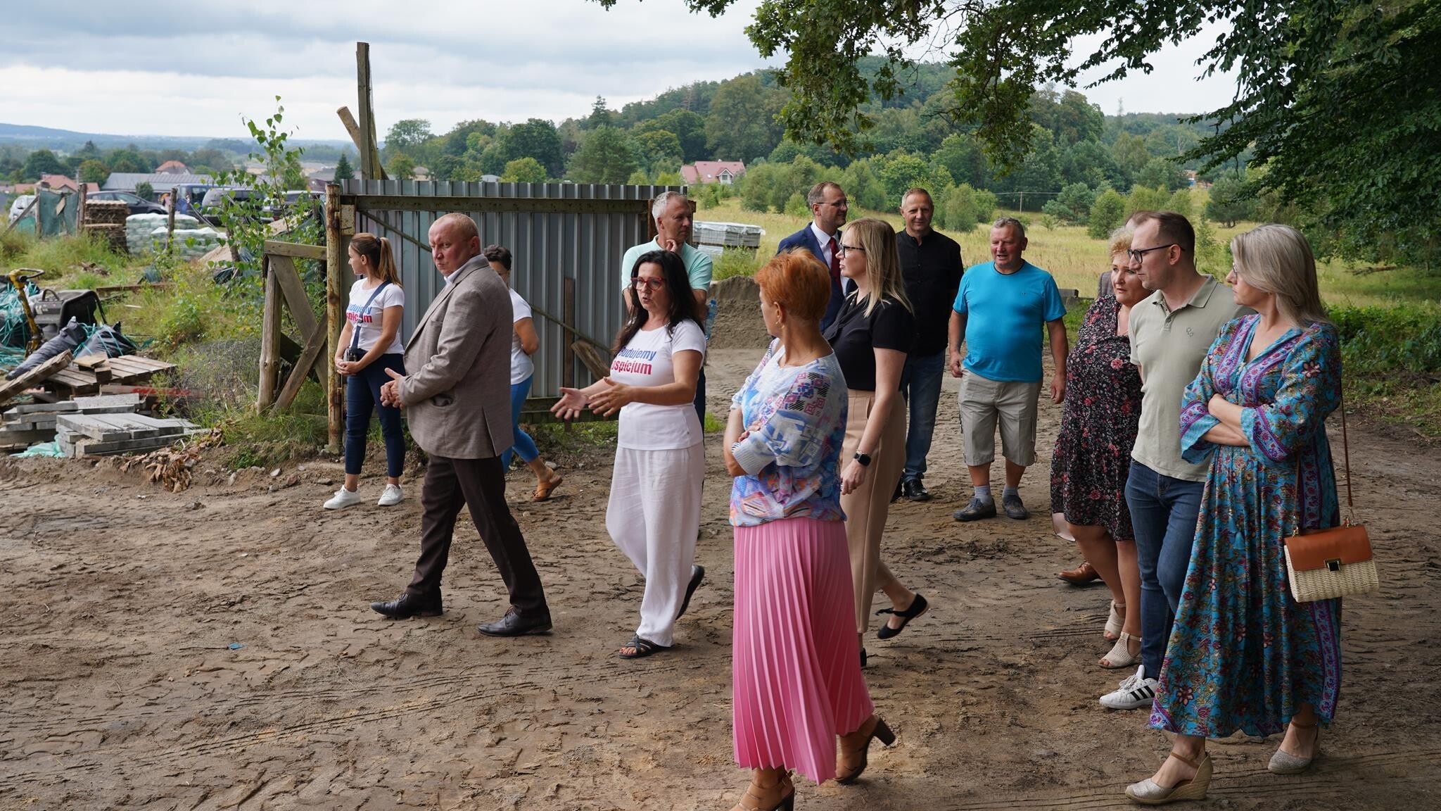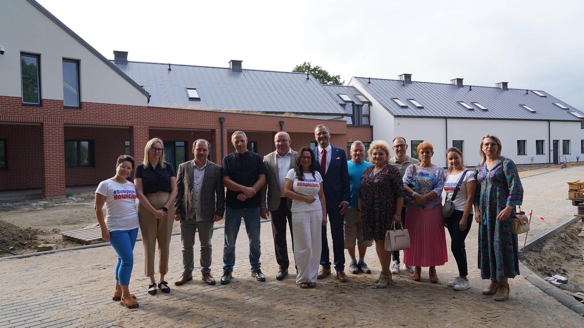 Radni Gminy Nowa Wieś Lęborska, wraz z Wójtem Szymonem Medalionem i Edytą Kreftą, reprezentującą Urząd Gminy odwiedzili budowę hospicjum stacjonarnego w Pogorzelicach. Podczas wizyty delegacja na ręce Pani Agaty Kozyr, prezes Fundacji Lęborskie Hospicjum Stacjonarne, przekazała prezent – zestaw narzędzi ogrodowych.