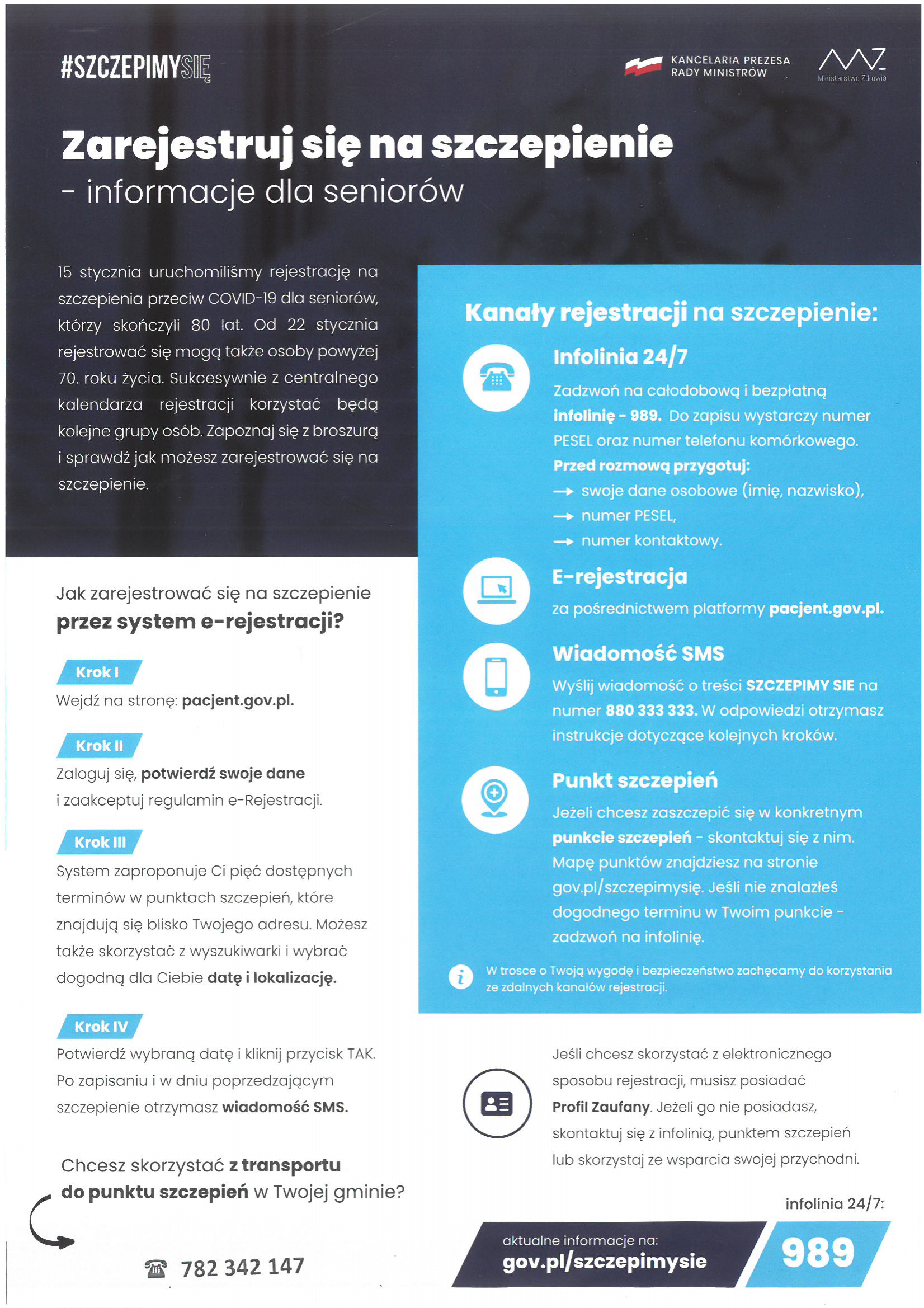 Kontakt dla osób, które chcą skorzystać z transportu do punktu szczepień w naszej gminie - 782-342-147
