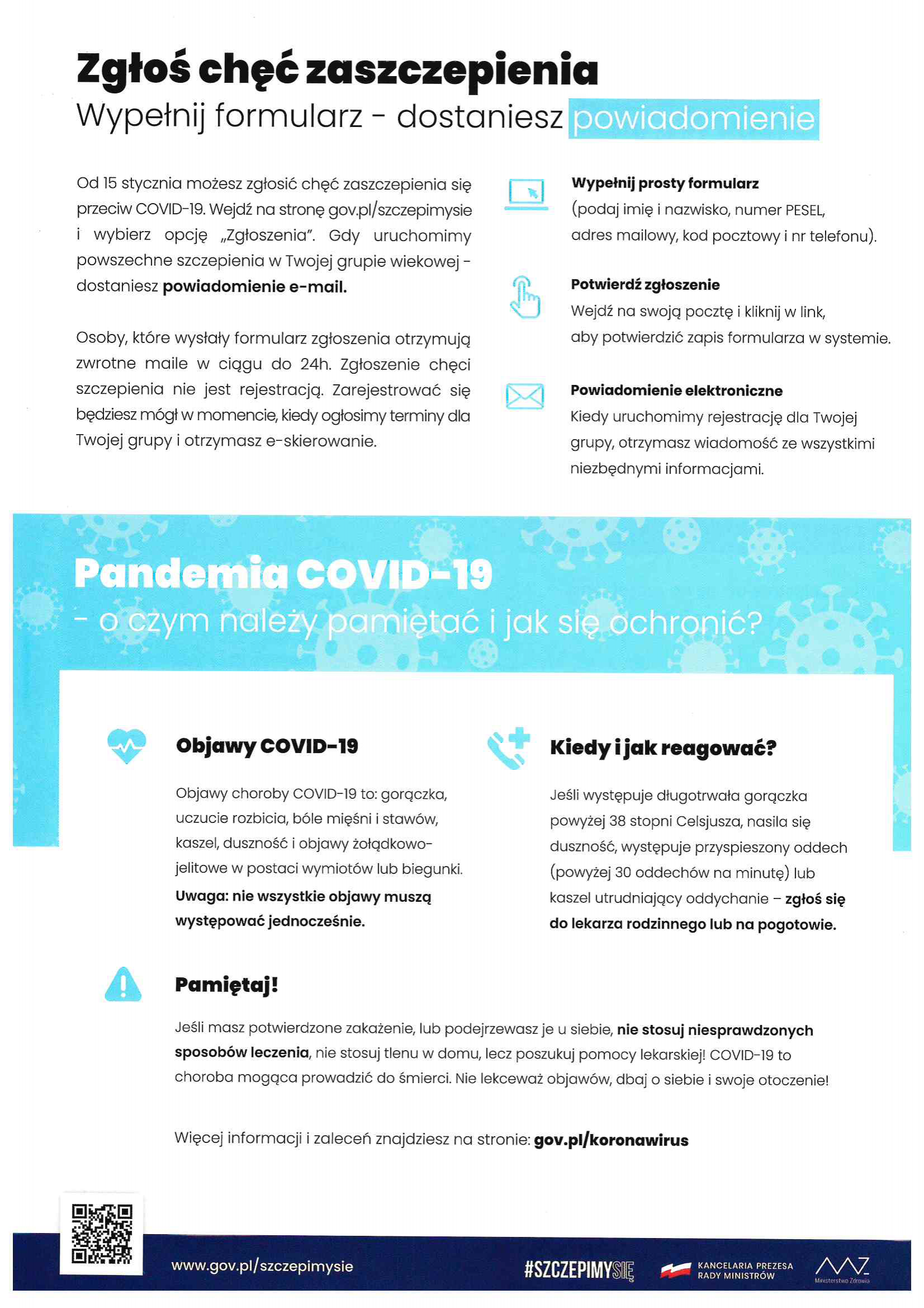 - o objawach Covid-19,