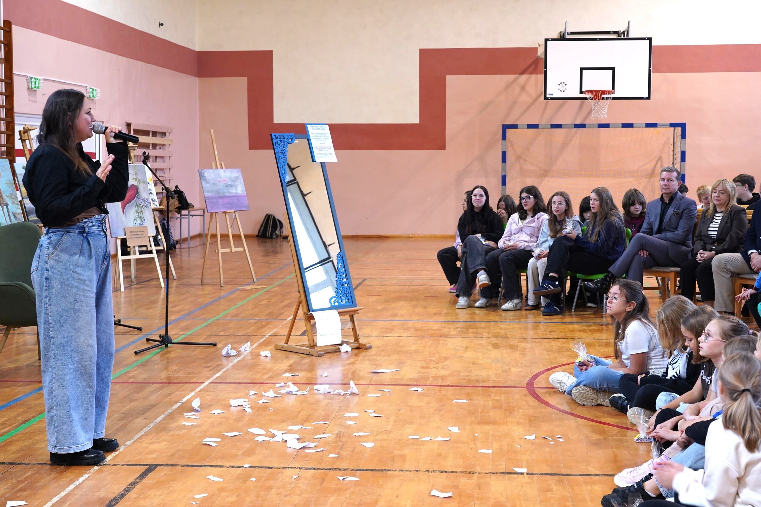 Wydarzenie wzbogaciły występy artystyczne – uczniowie zaprezentowali znane utwory z wartościowym przekazem, a w programie gościnnie wystąpiła pani Agata Jasińska, dzieląc się swoim repertuarem i muzyczną wrażliwością.