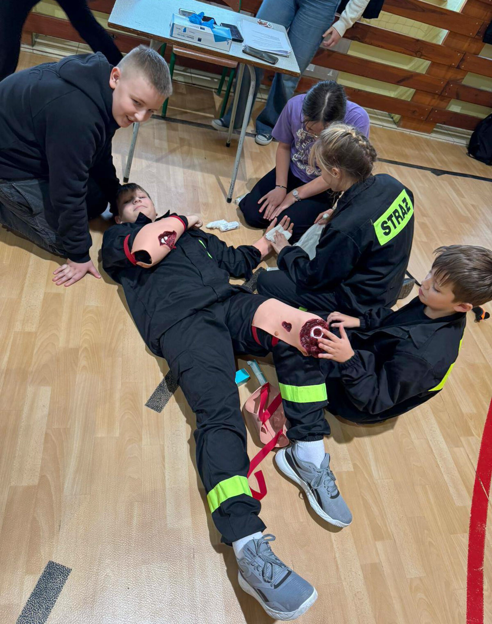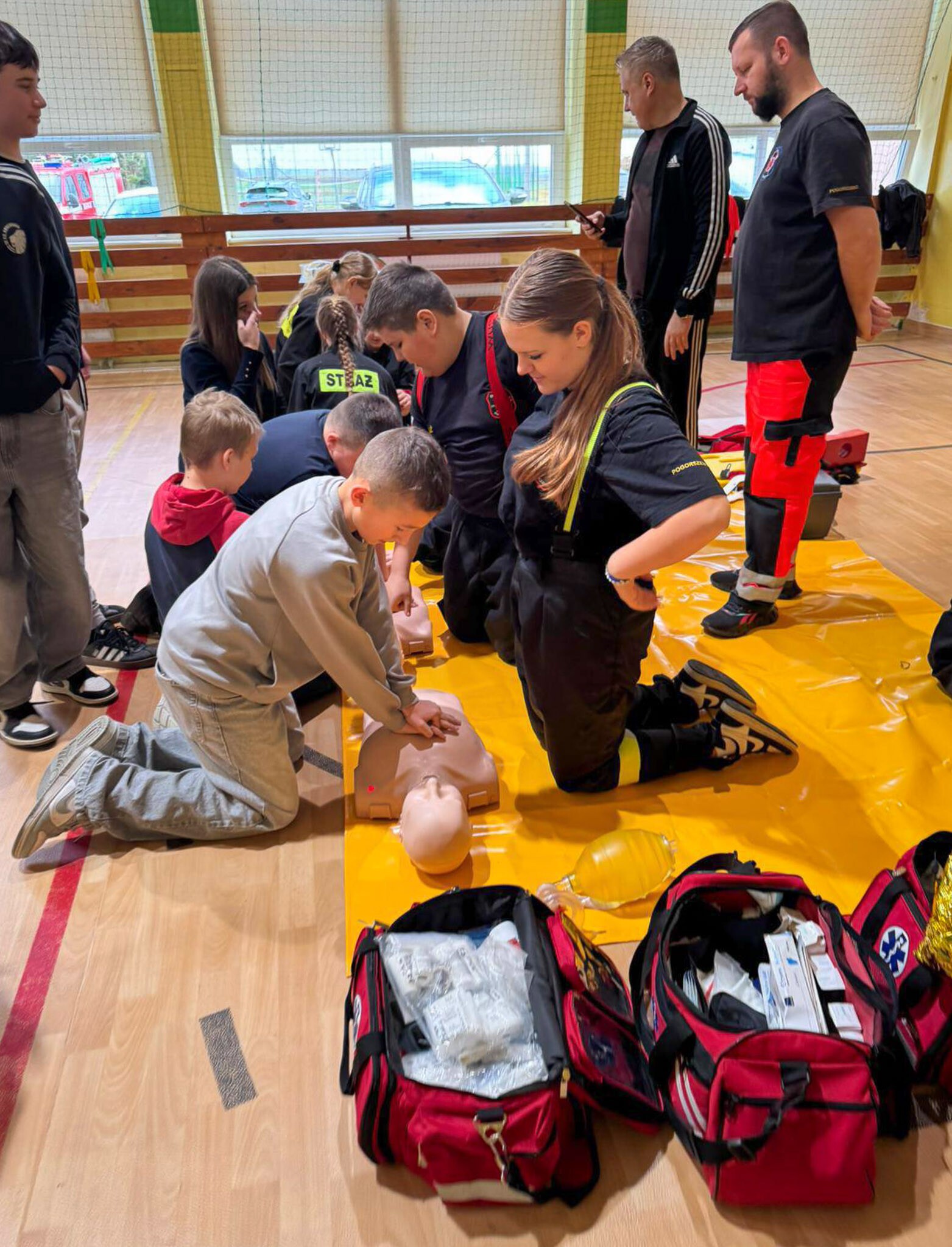 Podczas spotkań uczniowie poznali podstawowe zasady udzielania pierwszej pomocy, w tym sposób reagowania w sytuacji zakrztuszeń oraz prawidłowe ułożenie osoby nieprzytomnej w pozycji bezpiecznej. Szczególną uwagę poświęcono również obsłudze AED, czyli automatycznego defibrylatora zewnętrznego, który coraz częściej dostępny jest w przestrzeni publicznej.