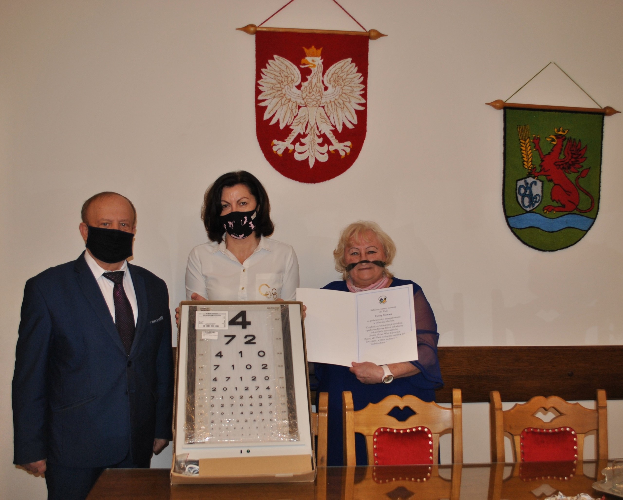 W dniu 25 stycznia br. Wójt Gminy Ryszard Wittke przekazał do gabinetu lekarskiego przy Szkole Podstawowej w Nowej Wsi Lęborskiej podświetlaną tablicę optometryczną. Tablicę odebrały Pani Grażyna Wójcik Dyrektor Szkoły i Pani Iwona Stawarz Pielęgniarka szkolna. Panie nie kryły zadowolenia, gdyż nowe urządzenie znacząco pomoże w diagnostyce wad wzroku u dzieci.