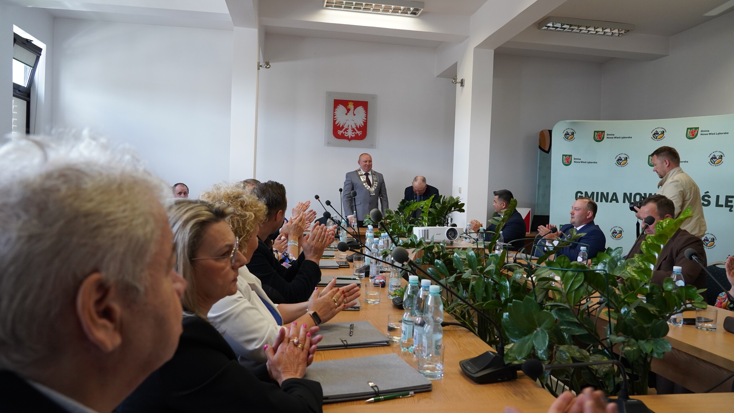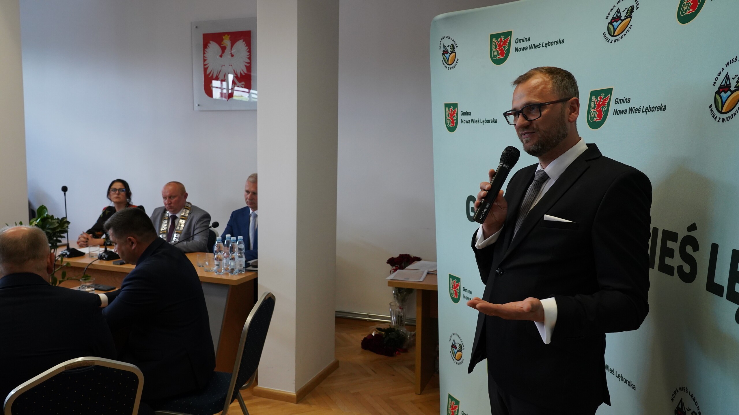 W obecności wielu mieszkańców gminy, w tym sołtysów i przedstawicieli jednostek podległych nowy Wójt Gminy Nowa Wieś Lęborska podziękował zgromadzonym za liczne przybycie i podkreślił, że duży nacisk kładzie na dialog i współpracę wszystkich środowisk.