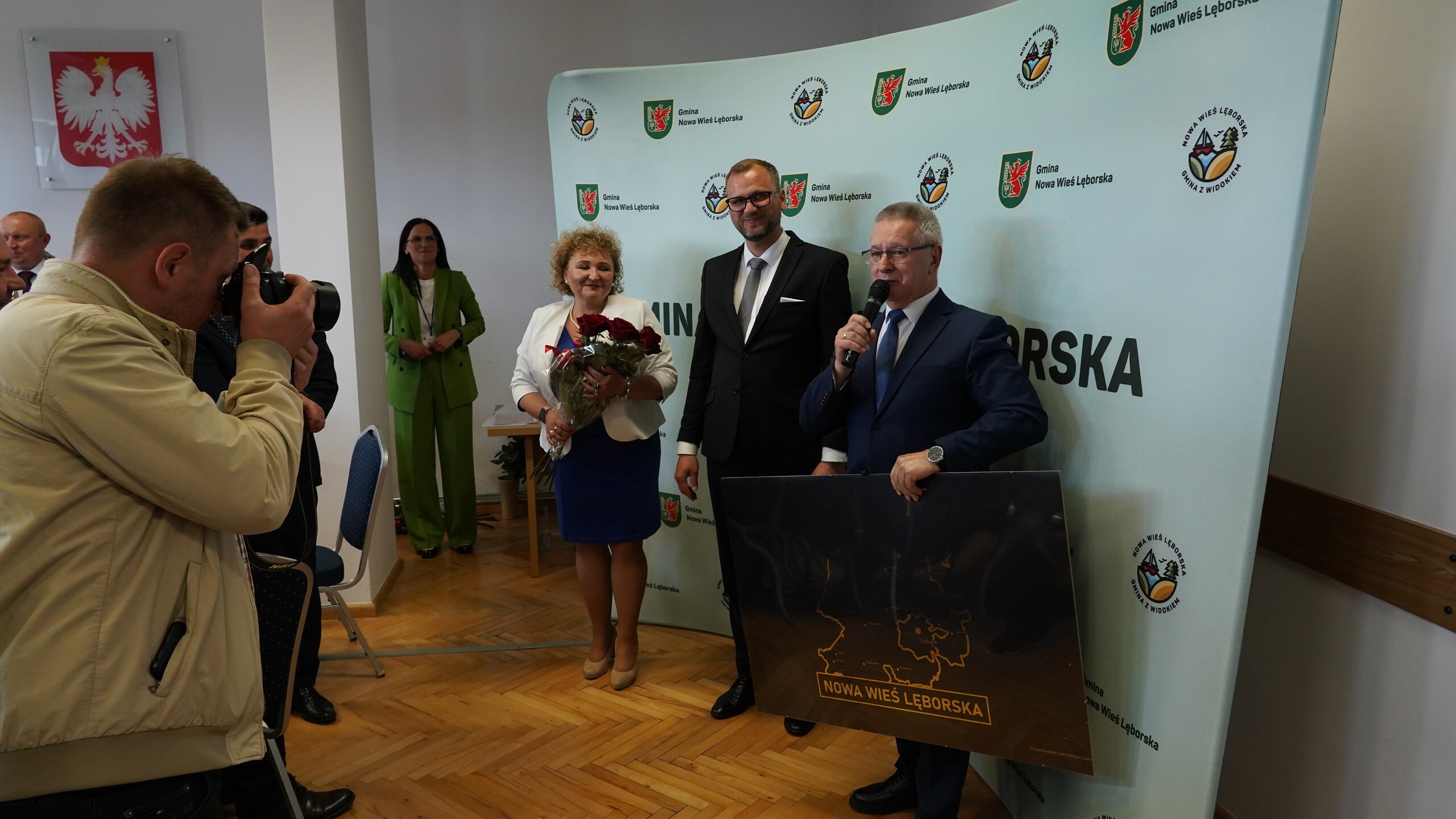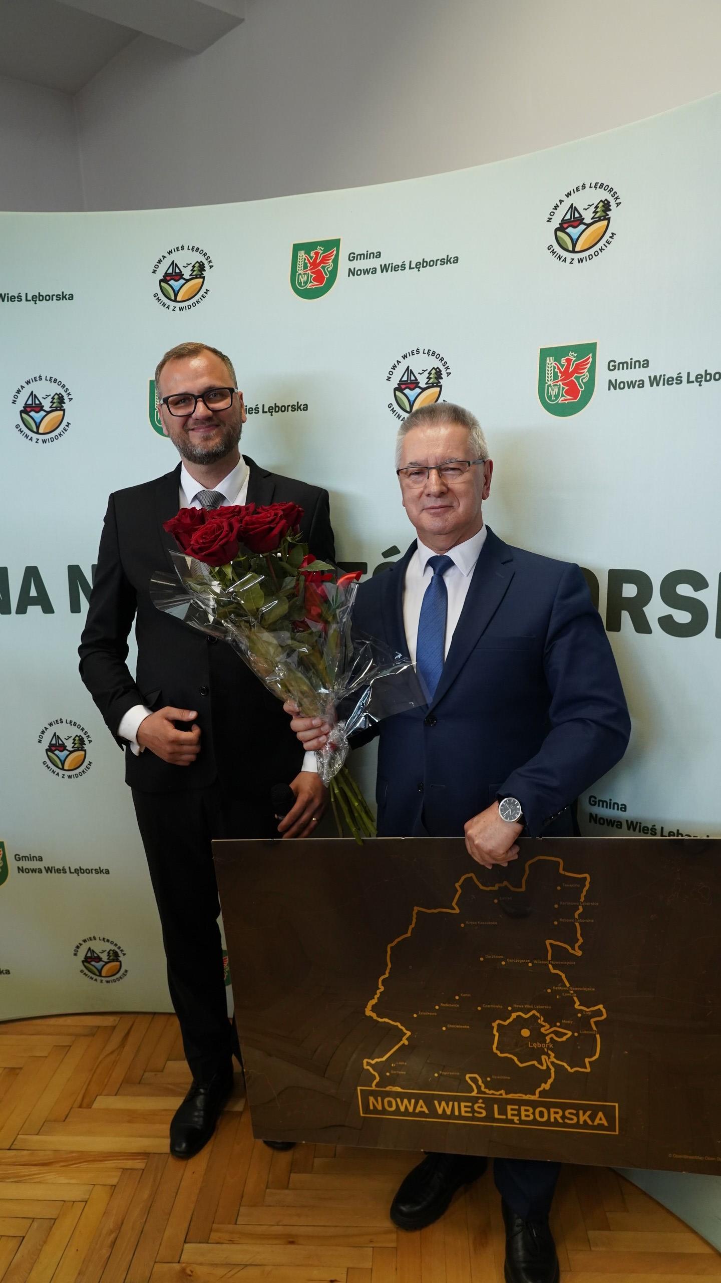 Sesja była także okazją do podziękowania odchodzącemu Wójtowi - Zdzisławowi Chojnackiemu, który najpierw podsumował minioną kadencję. Nowy Wójt Szymon Medalion, uhonorował go upominkiem – mapą Gminy Nowa Wieś Lęborska.