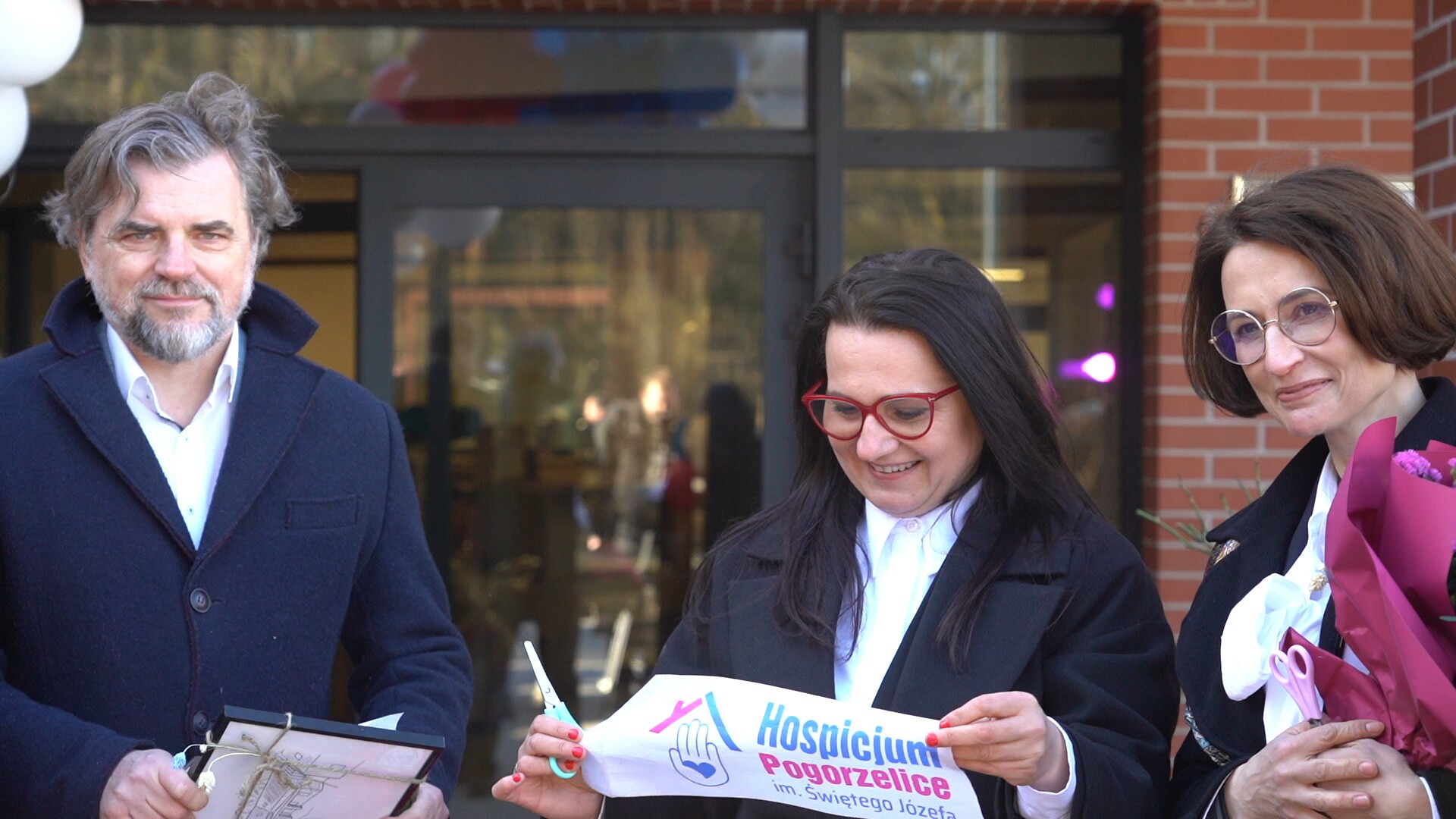 Podczas uroczystości zaprezentowano również zespół medyczny, który będzie nieść codzienną pomoc pacjentom. Ważnym momentem było podpisanie aktu otwarcia hospicjum – dokumentu, który przypieczętował lata wspólnych starań o powstanie tego miejsca. Po poświęceniu budynku przez Księdza Biskupa nastąpił kulminacyjny punkt wydarzenia – symboliczne przecięcie ponad 100-metrowej wstęgi. Wzięli w nim udział wszyscy obecni darczyńcy i wolontariusze, podkreślając wspólny wysiłek w realizacji tej inicjatywy.