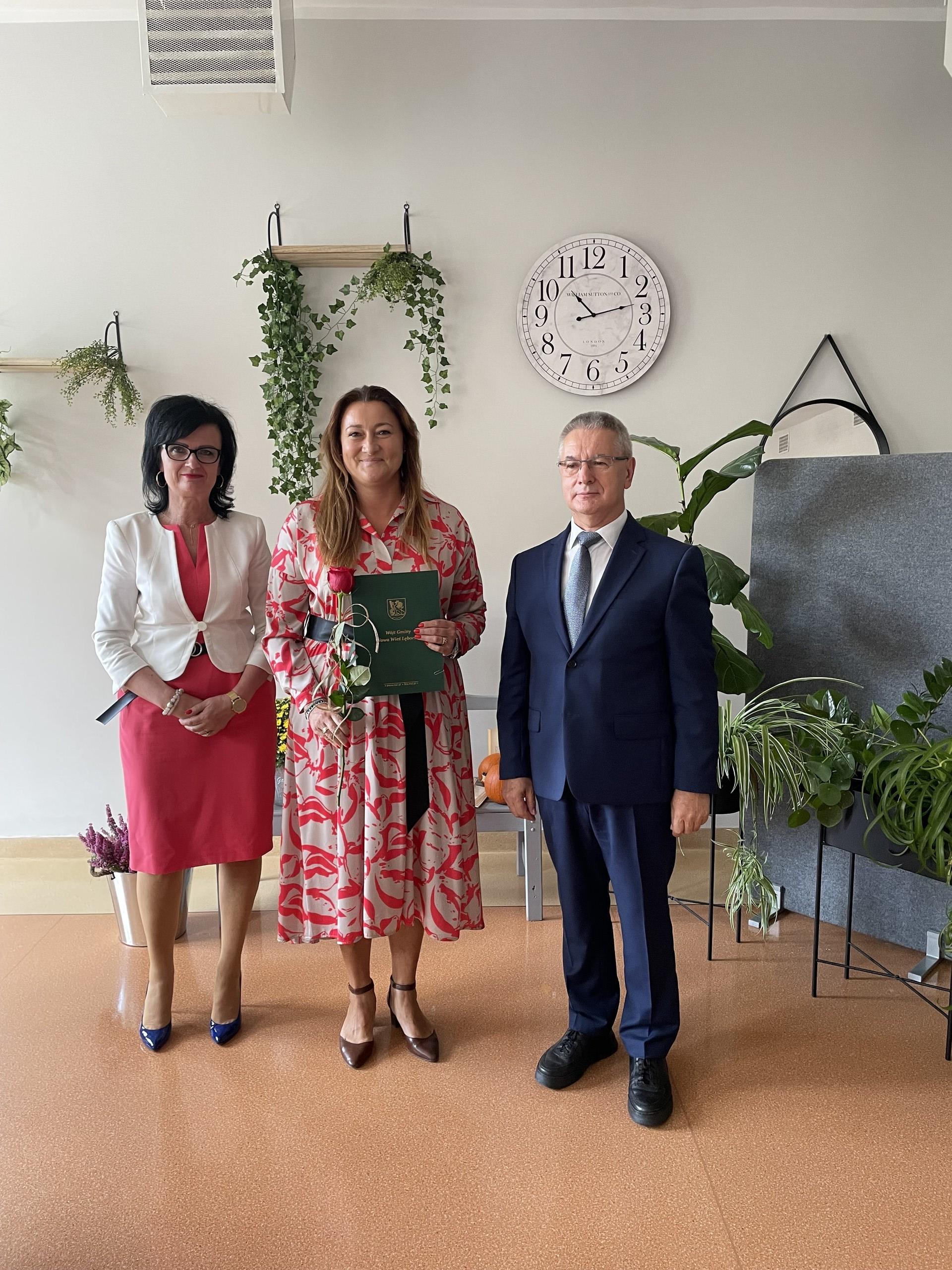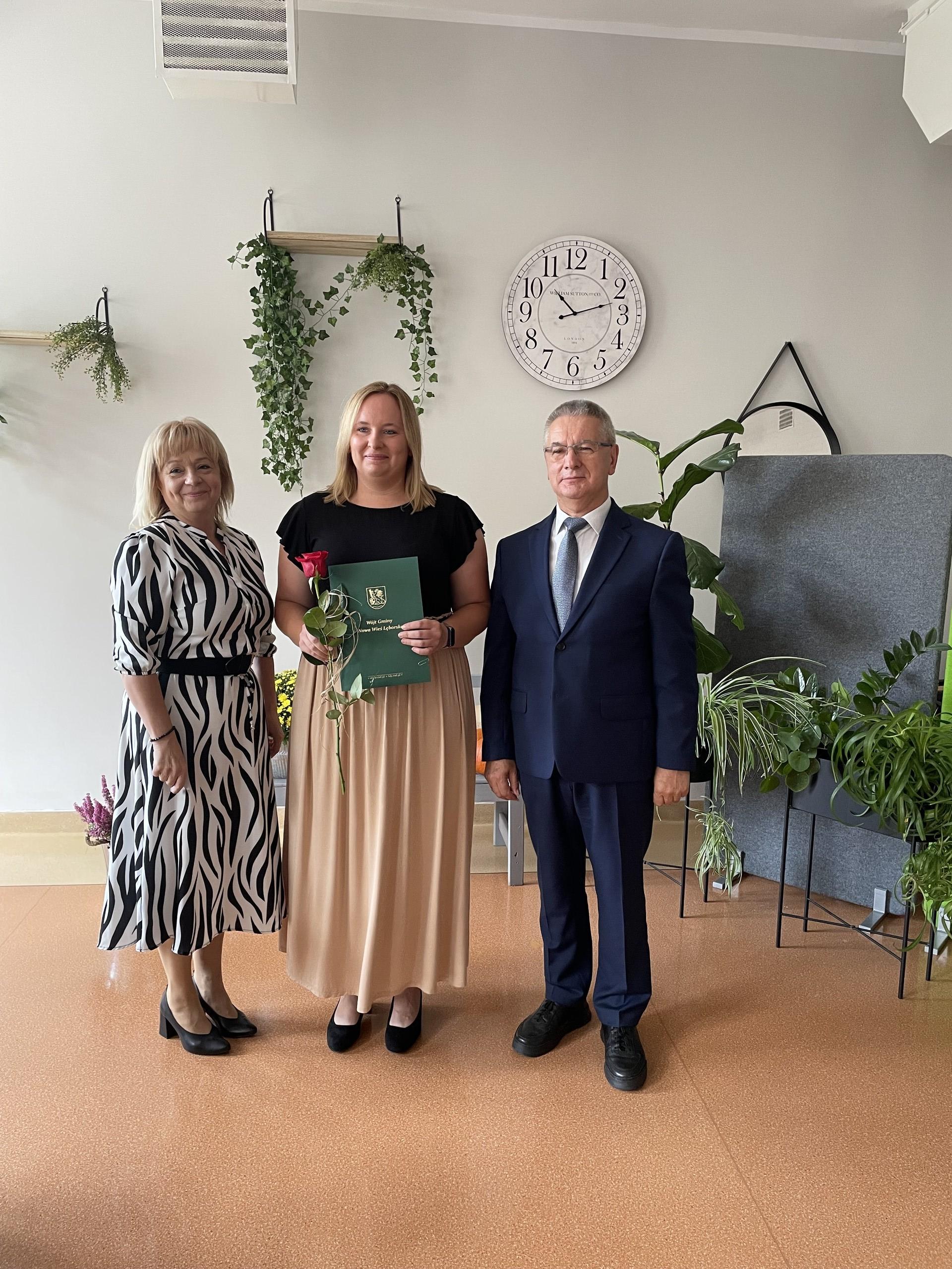 Podczas uroczystości powierzenie stanowiska Dyrektora Szkoły Podstawowej im. Strażaków Polskich w Nowej Wsi Lęborskiej na okres od 1 września 2023 roku do 31 sierpnia 2028 roku otrzymała Pani Grażyna Wójcik.