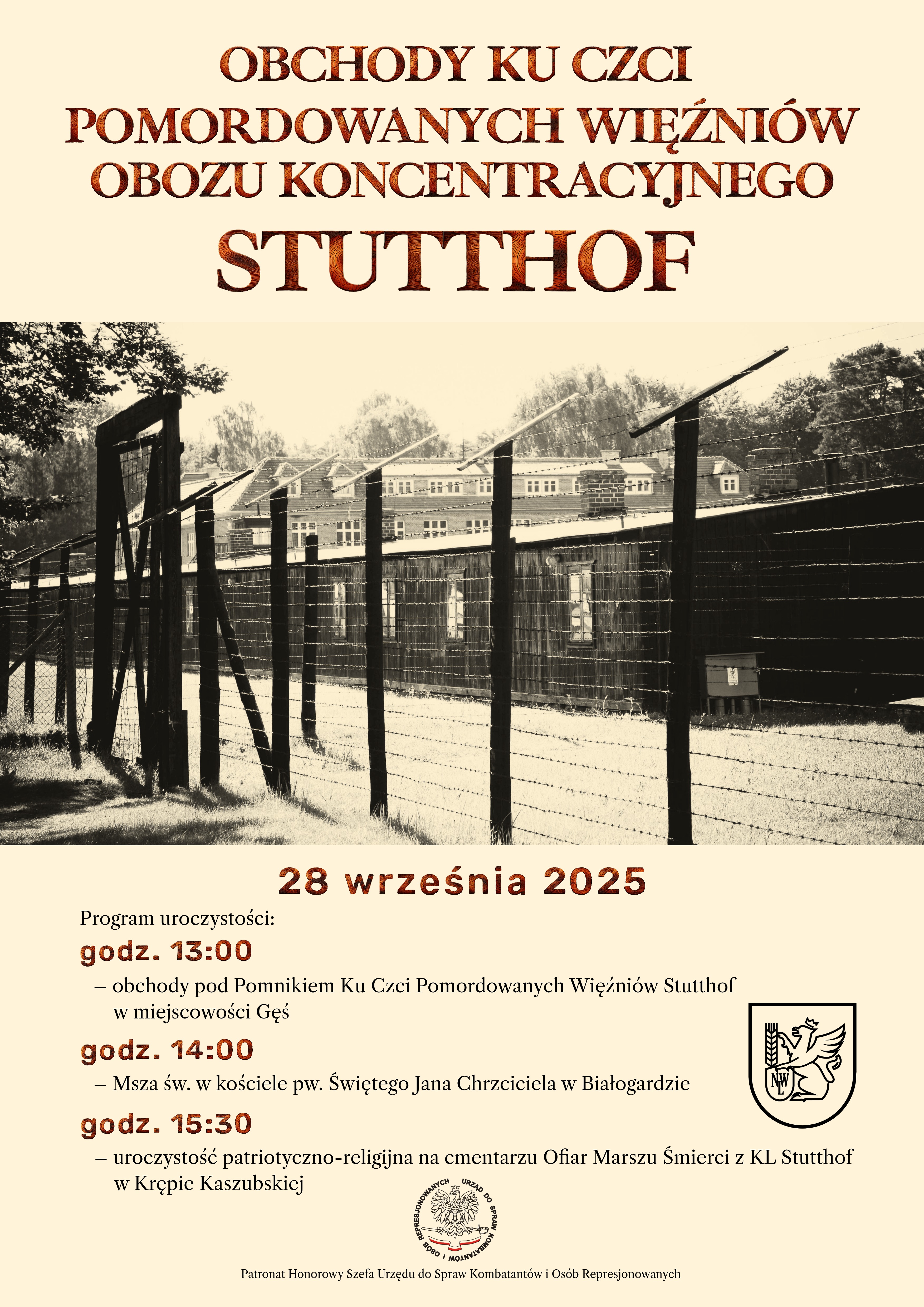 - 15:30 – uroczystość patriotyczno-religijna na cmentarzu Ofiar Marszu Śmierci z KL Stutthof w Krępie Kaszubskiej