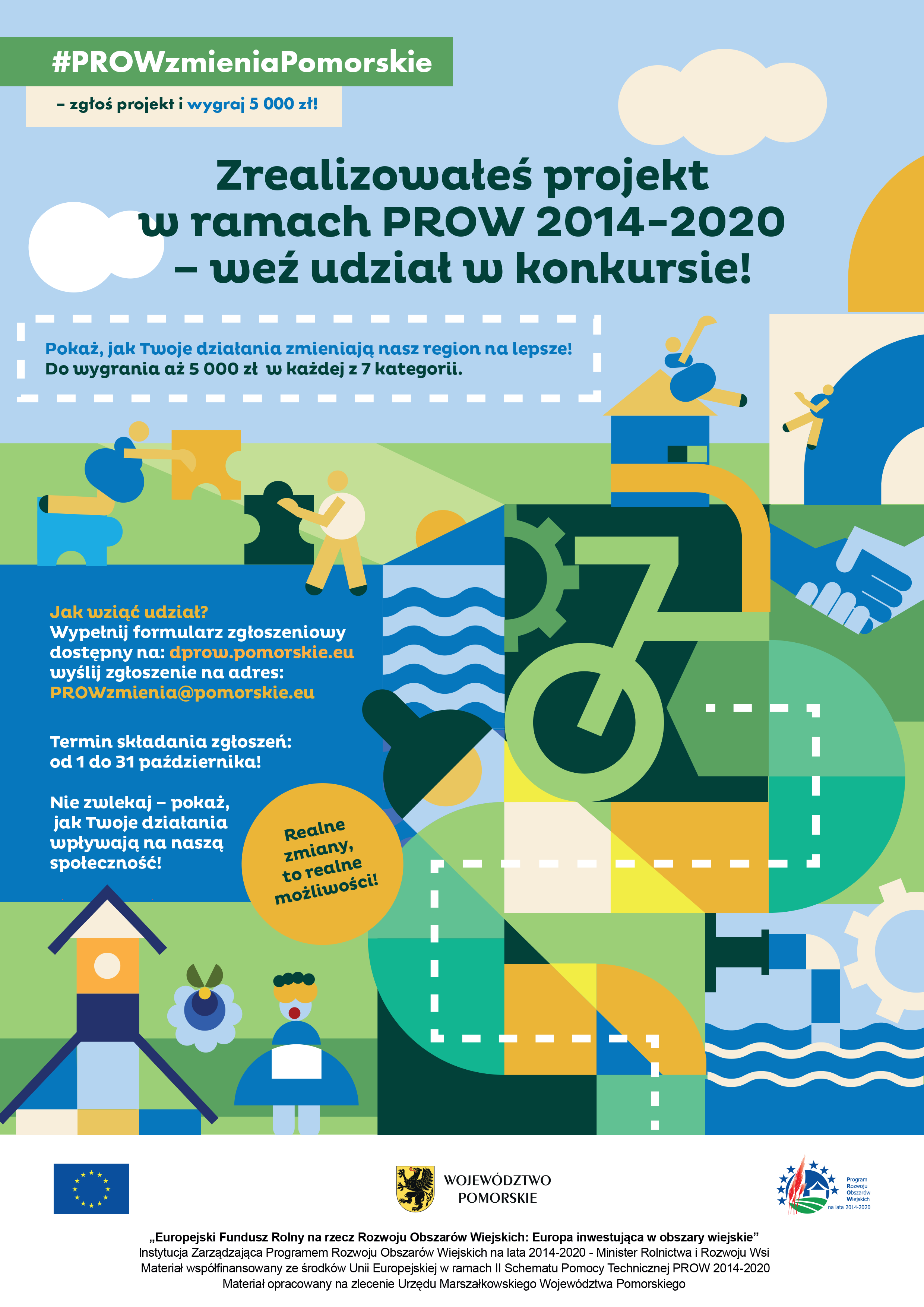 Zarząd Województwa Pomorskiego ogłosił konkurs „PROW zmienia Pomorskie”, który promuje efekty realizacji Programu Rozwoju Obszarów Wiejskich na lata 2014-2020. To doskonała okazja, aby pokazać, jak unijne fundusze wpłynęły na rozwój naszej „małej ojczyzny”!