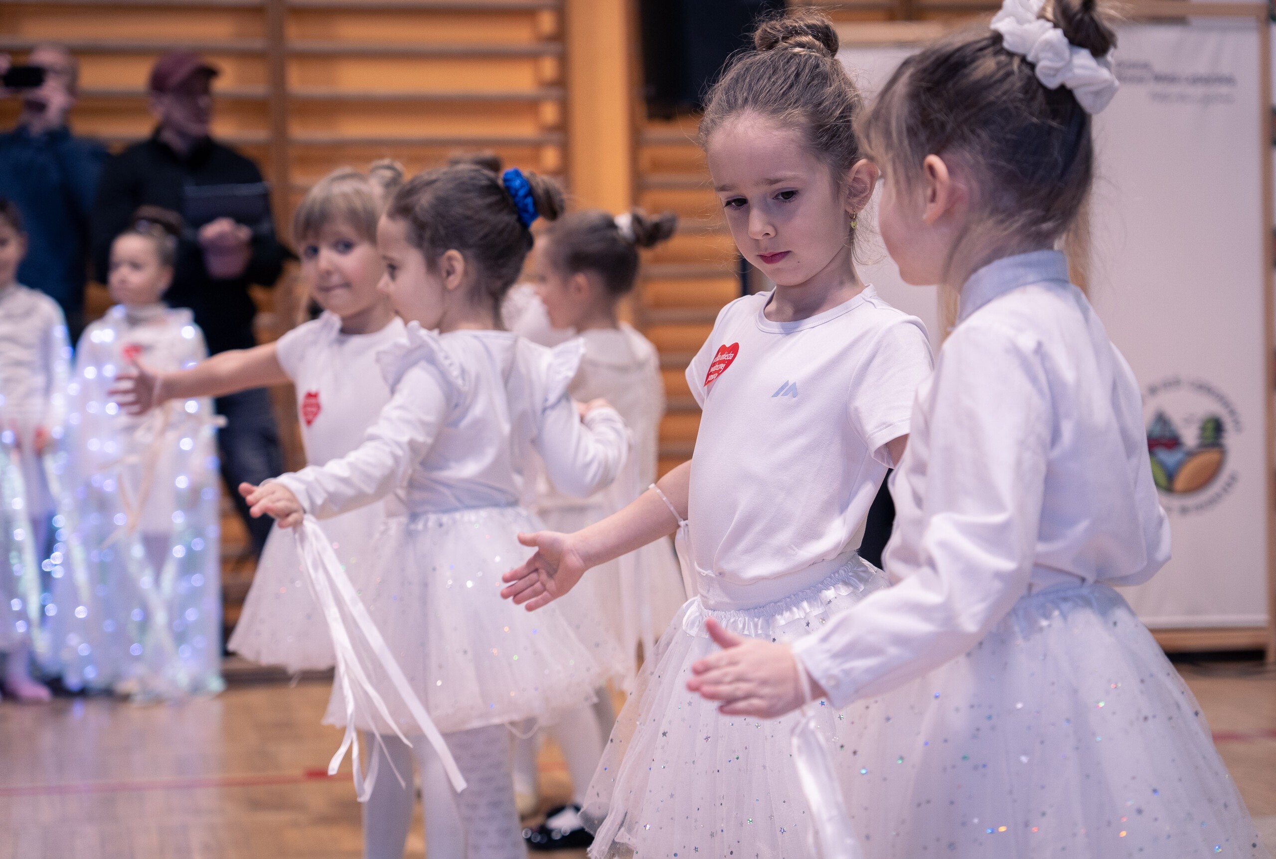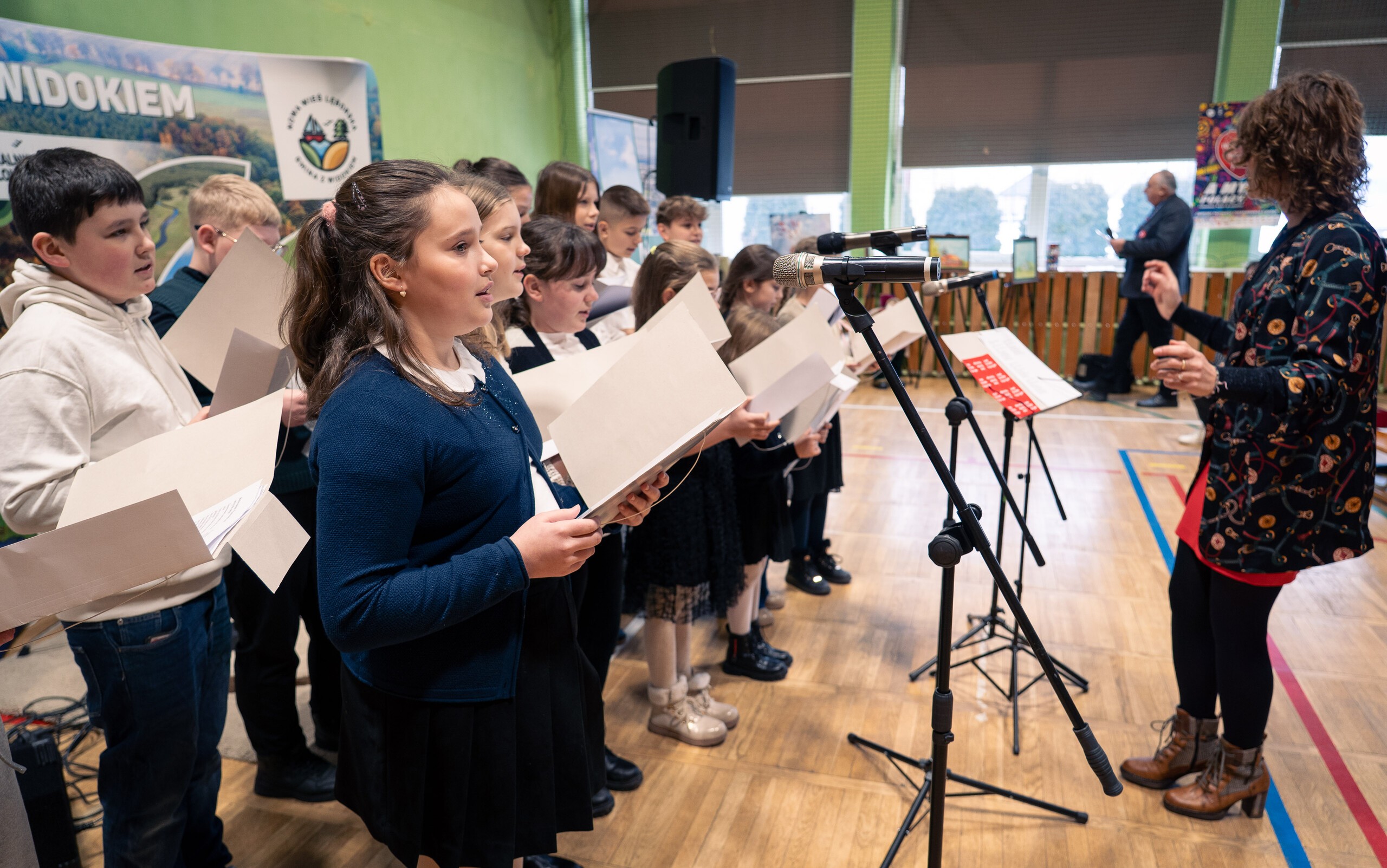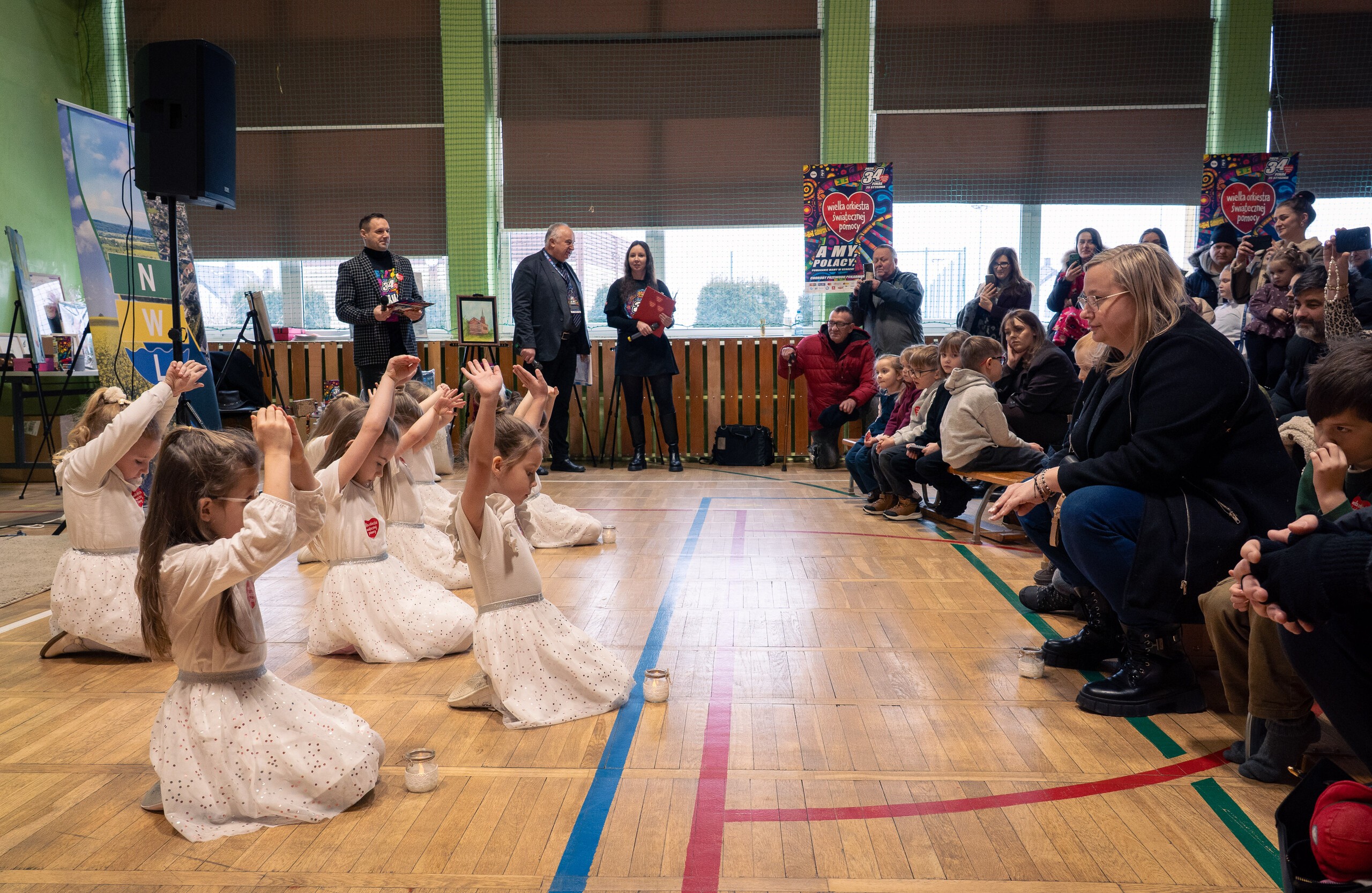 Na scenie jako pierwsze wystąpiły dzieci z Przedszkola w Nowej Wsi Lęborskiej. Grupa Biedronki zaprezentowała „Taniec Pani Zimy”, a Jeżyki - „Taniec z lampionami”. Publiczność mogła oklaskiwać także uzdolnionych uczniów ze Szkoły Podstawowej w Nowej Wsi Lęborskiej, Redkowic, Łebienia, Leśnic, Garczegorza oraz Niepublicznej Szkoły Podstawowej „Azymut” w Mostach. Występy przygotowali nauczyciele: Dorota Klawikowska, Aneta Suchta, Oliwia Stromska, Agata Makowska i Mirosława Grynkiewicz.