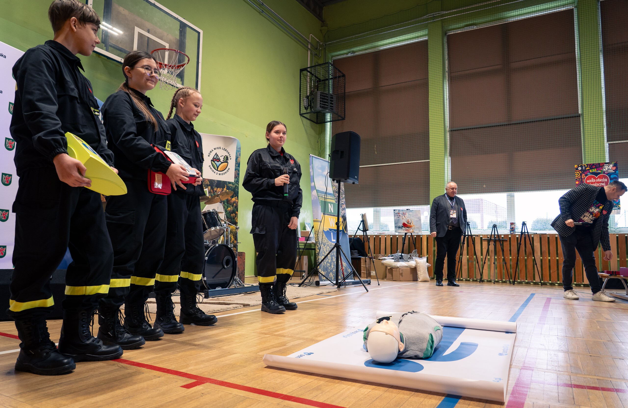 Od południa budynek Szkoły Podstawowej w Nowej Wsi Lęborskiej tętnił życiem. Działały stoiska z gadżetami WOŚP, książkami i domowymi wypiekami, a najmłodsi mogli spróbować swoich sił w grach planszowych i przy Kole Fortuny. Nie zabrakło także pokazów strażackich OSP Łebień i OSP Pogorszewo oraz gorącej grochówki przygotowanej przez druhów pod okiem Andrzeja Florczyka. Na świeżym powietrzu odbyło się także morsowanie, w którym udział wzięły grupy: Błękitne Morsy Łeba, My Ludzie z Lodu Łeba oraz MORS Team Lębork.