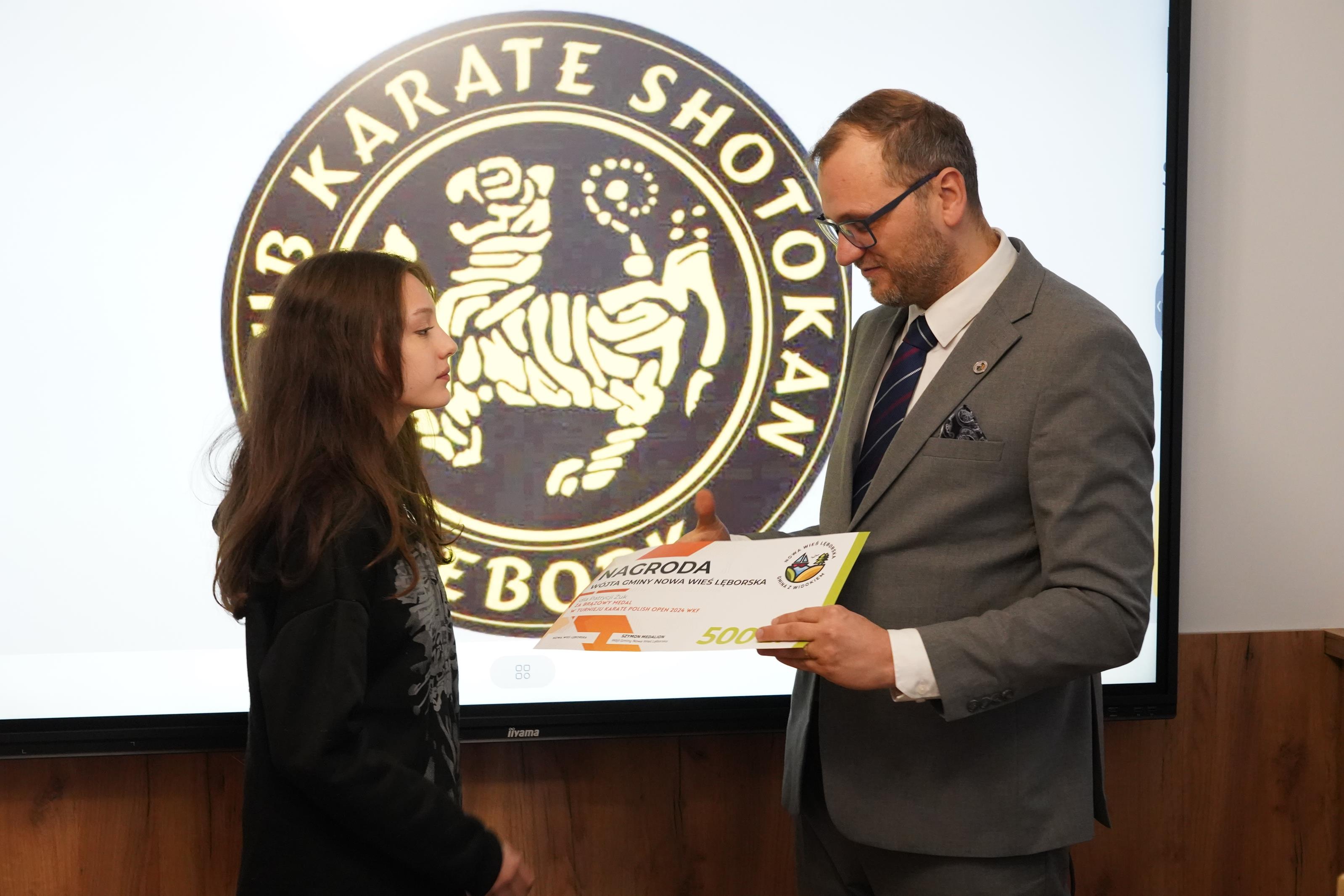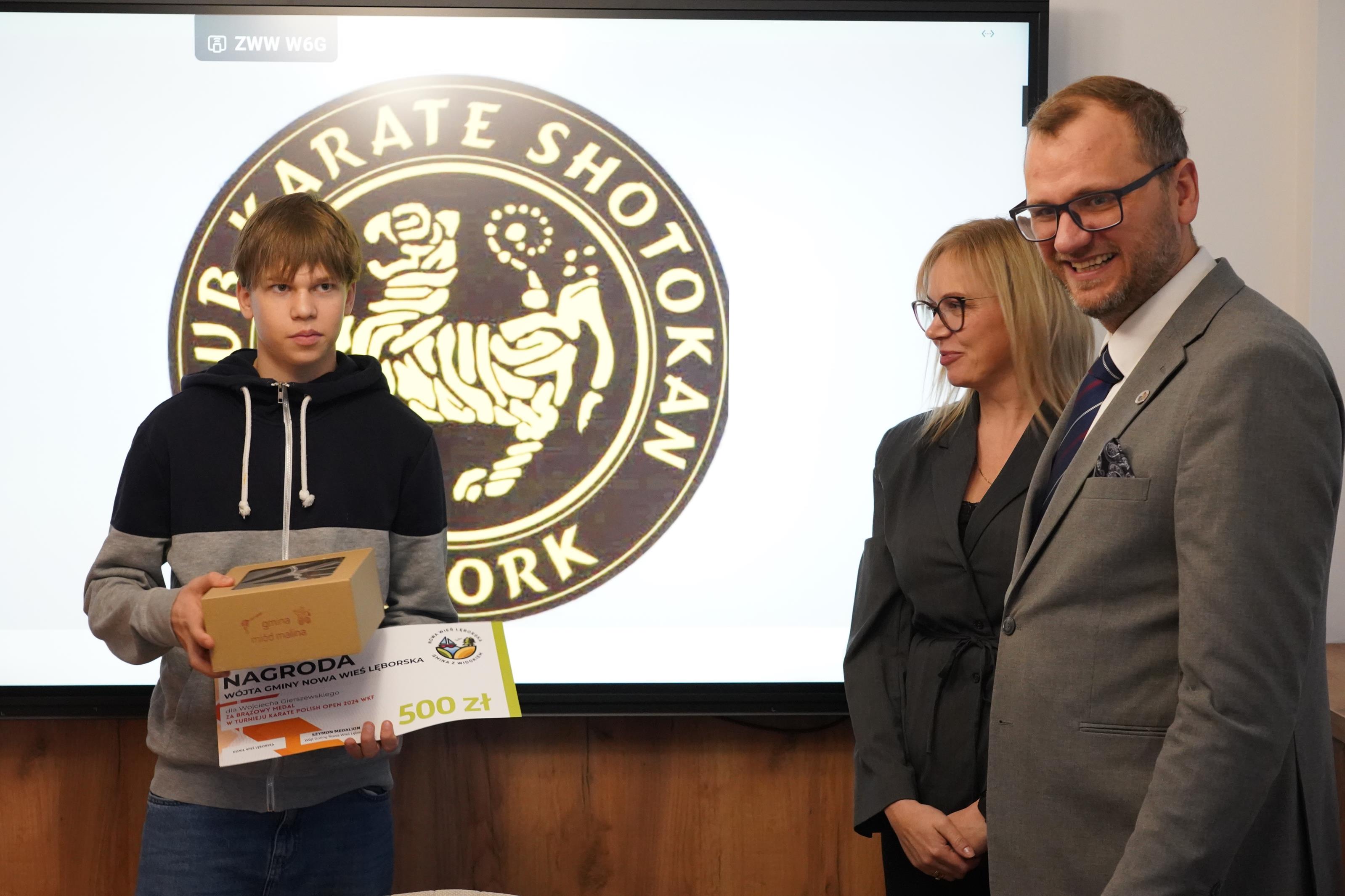 Wójt Gminy Nowa Wieś Lęborska miał przyjemność gościć utalentowanych młodych mieszkańców – Patrycję Żuk i Wojciecha Gierszewskiego, którzy zdobyli brązowe medale na prestiżowych zawodach karate Polish Open WKF. Towarzyszył im trener Piotr Pobłocki.