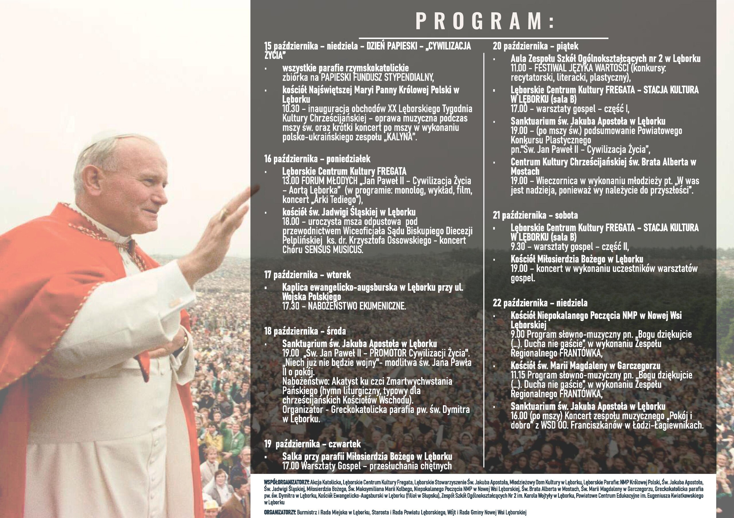 „Św. Jan Paweł II — Cywilizacja Życia”. 15 (niedziela) – 22 (niedziela) października 2023 r.