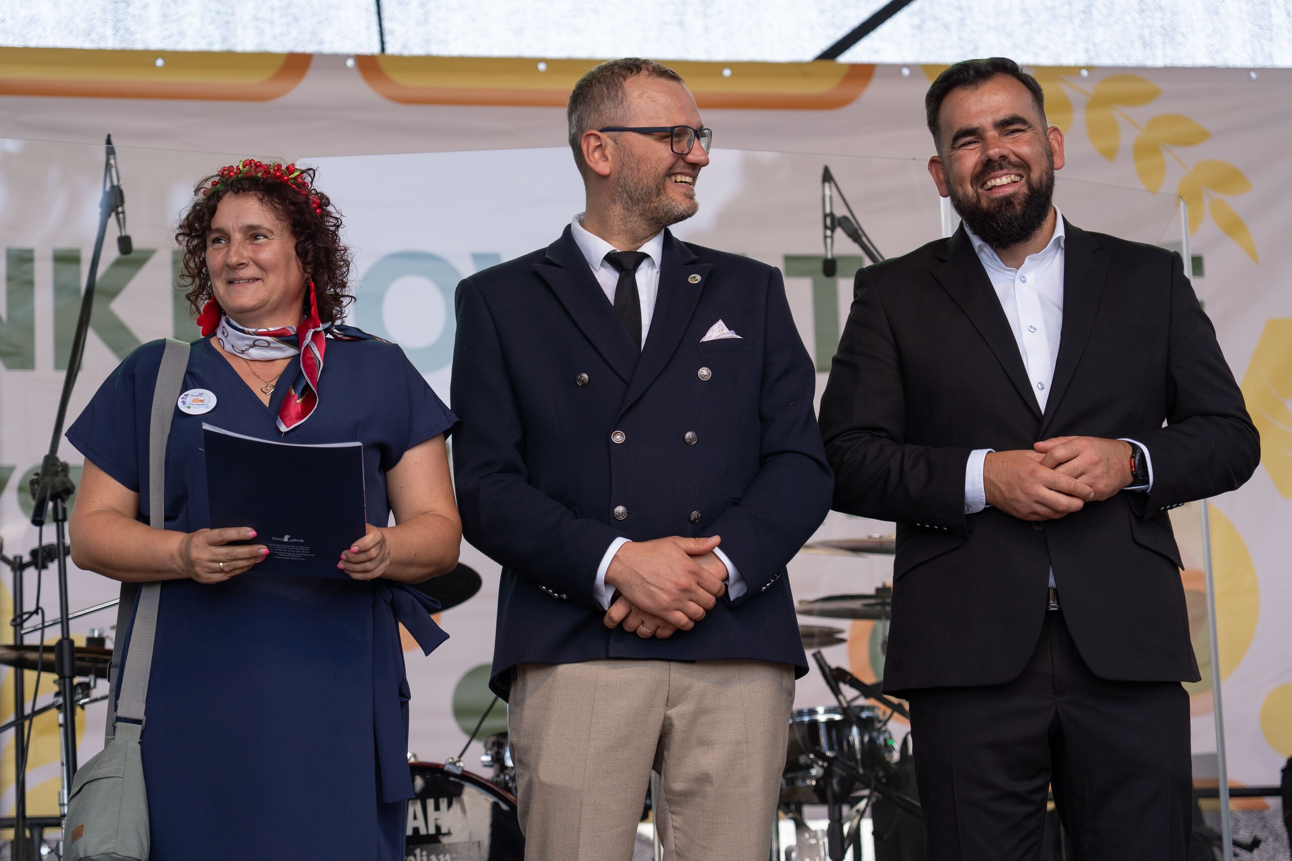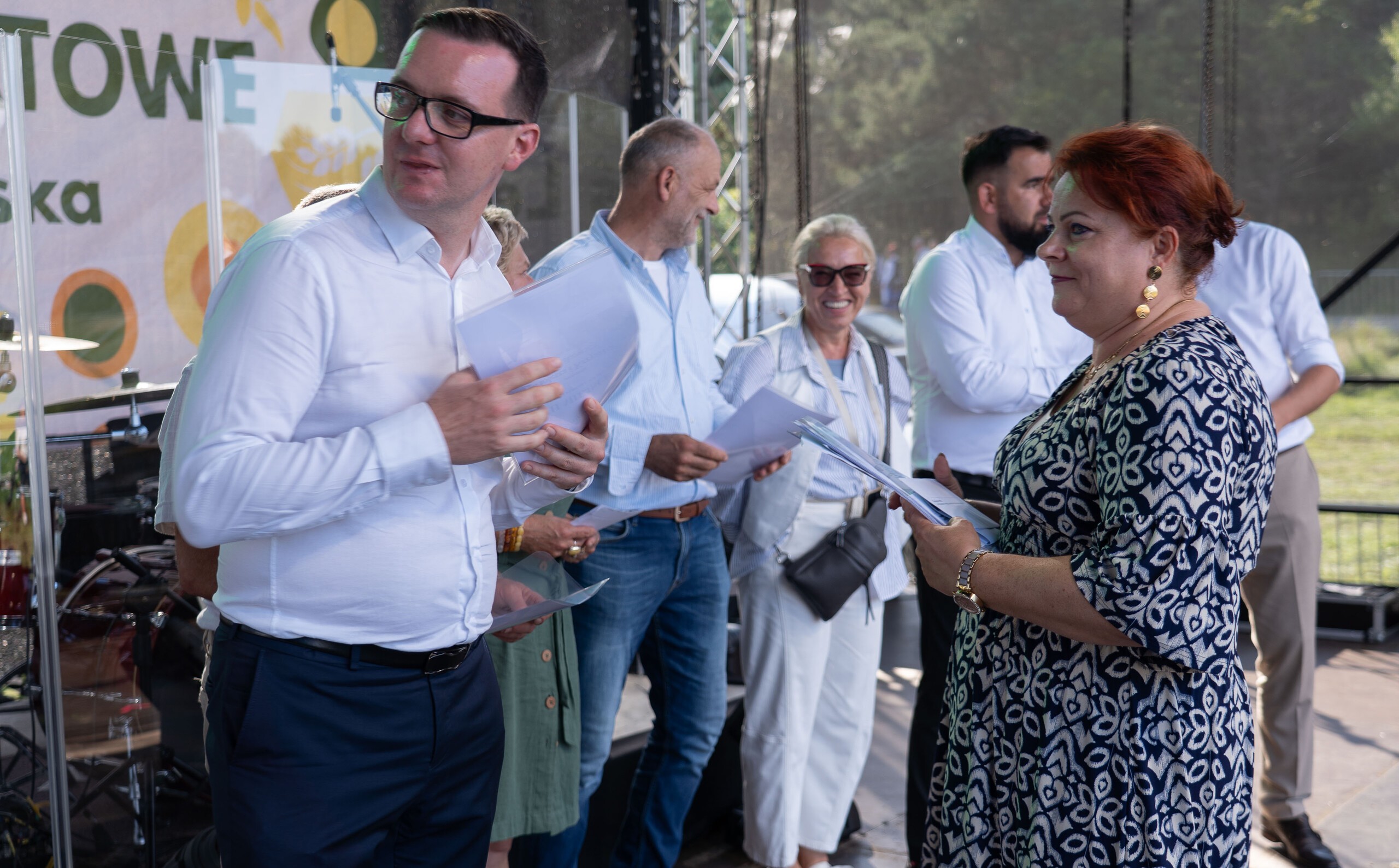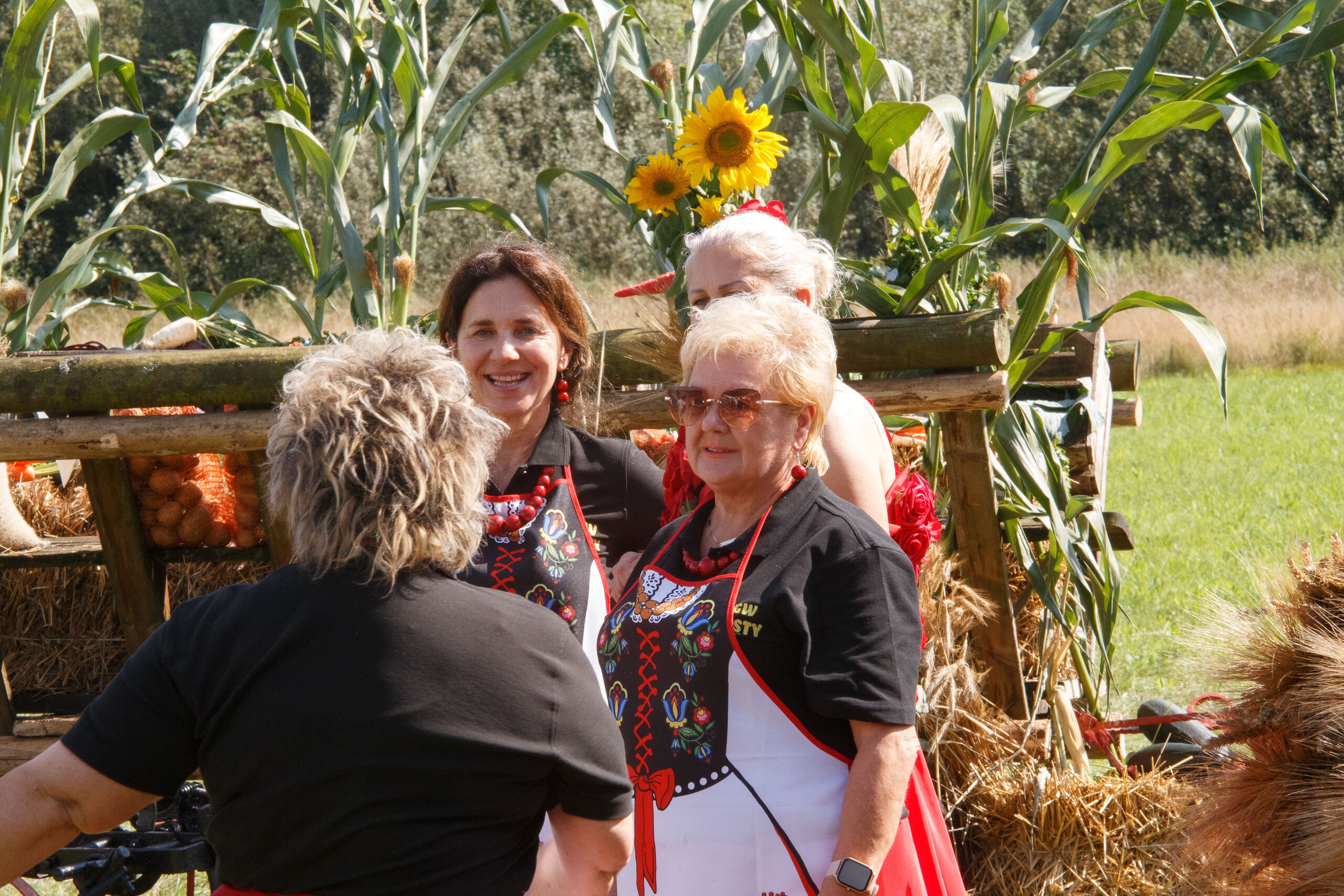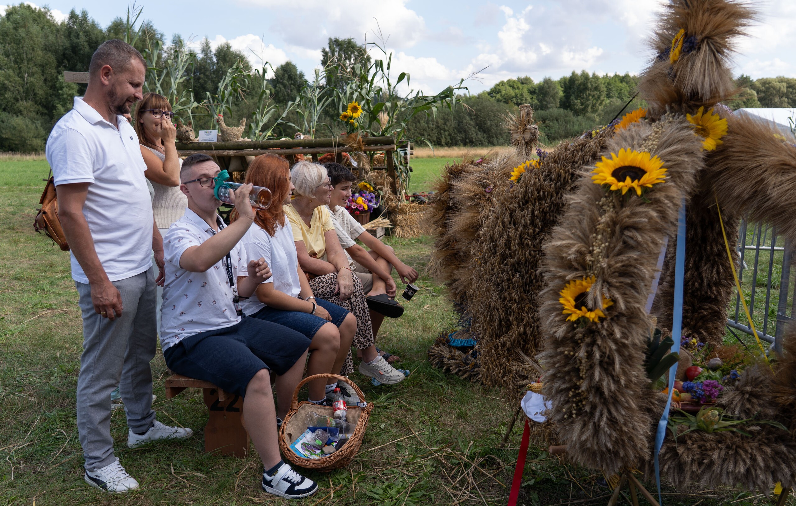 Zaraz obok rozstrzygnięto Powiatowy Konkurs „Żyjmy ładniej”, który pokazał, jak wielką wagę mieszkańcy przywiązują do dbania o piękno swoich ogrodów, podwórek i posesji, czyniąc je wizytówką całej gminy. Nie zabrakło również edukacyjnego akcentu: tabliczki z rolniczymi ciekawostkami przyciągały uwagę, pokazując, jak inspirująca jest praca na wsi – dowiedzieć się można było m.in. ile mleka daje krowa i ile bochenków chleba powstaje z plonów hektara pszenicy.
